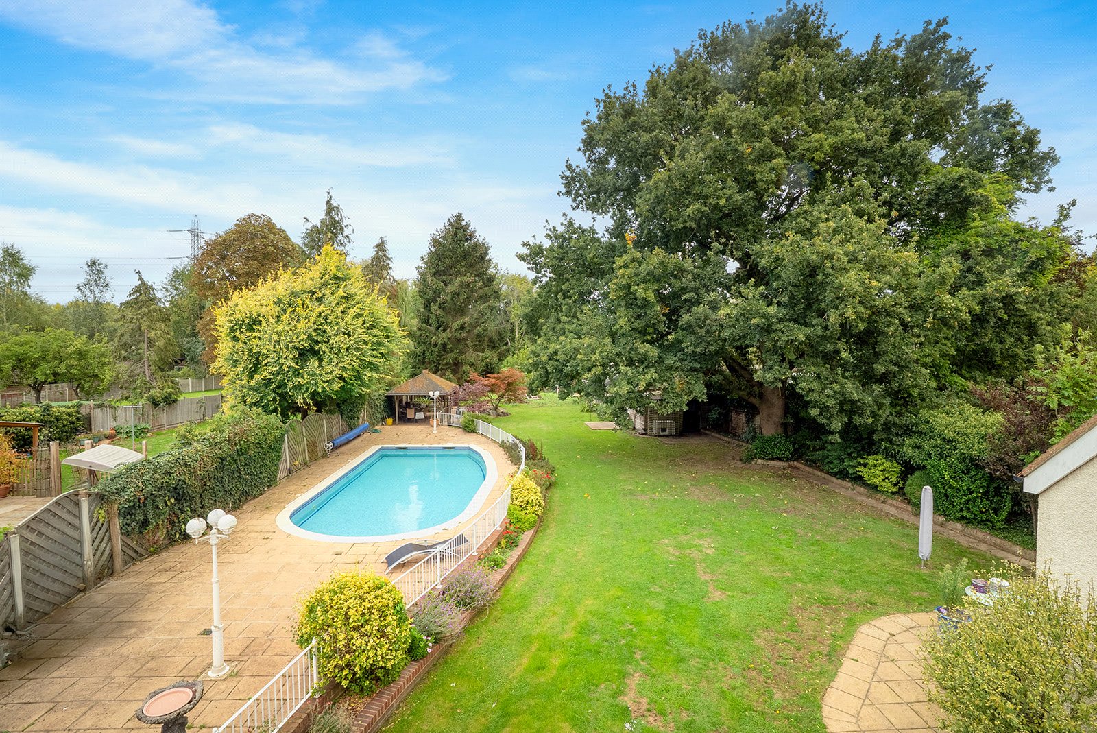 Outside, the property is approached via an impressive gated in and out driveway, offering parking for several vehicles. The rear garden is predominantly laid to lawn and framed by mature planting, with a generous patio area perfect for outdoor dining. A securely enclosed swimming pool offers a touch of luxury, while the gardens rear boundary opens directly onto the tranquil River Colne.