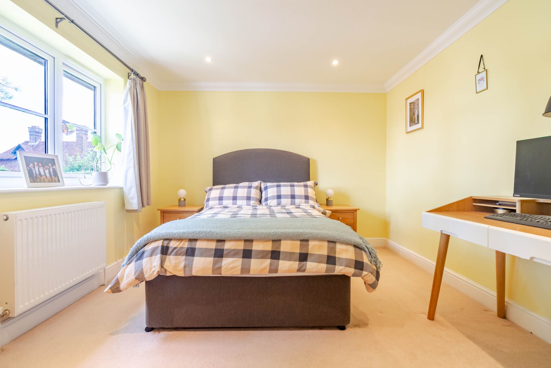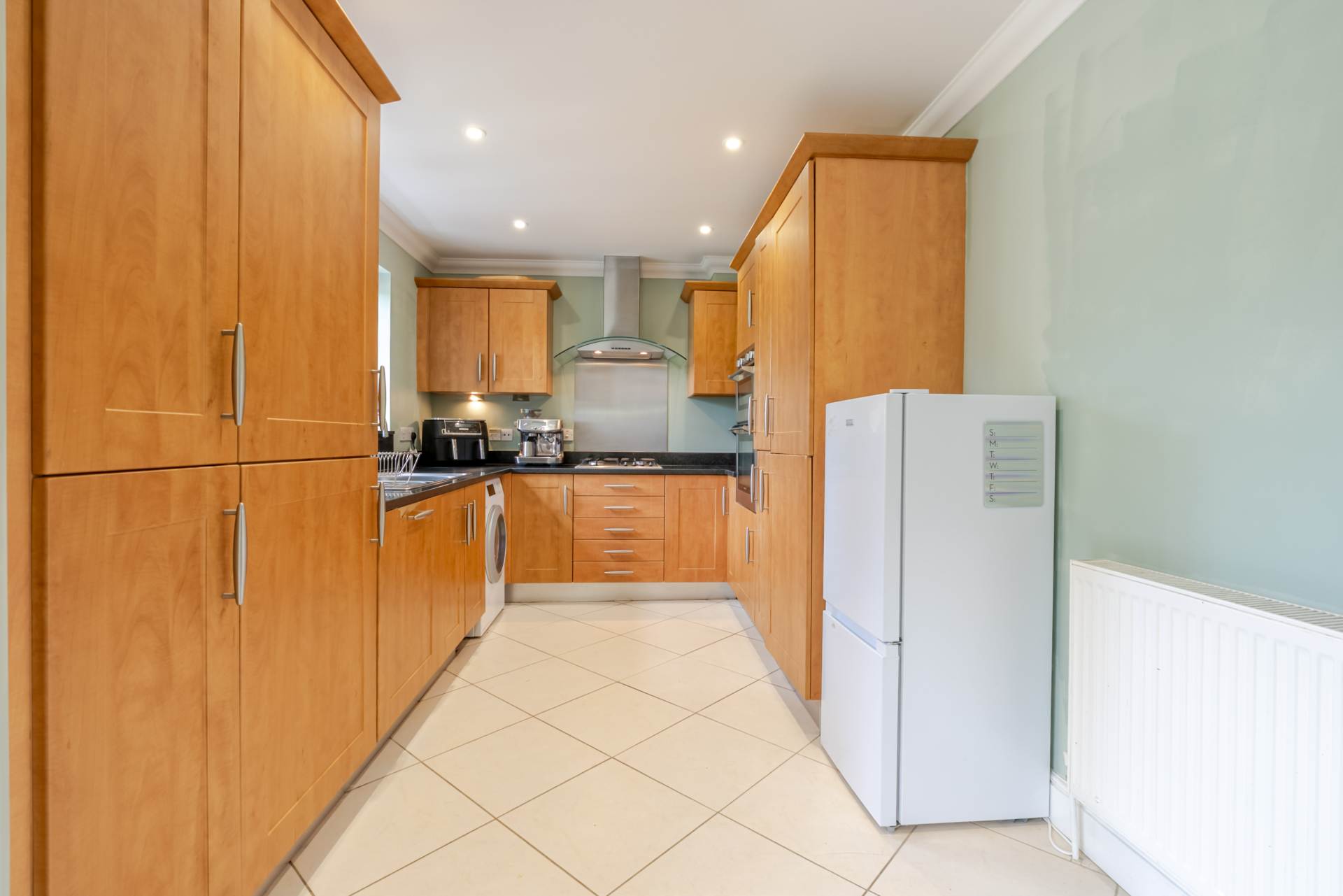 Upstairs, the principal bedroom benefits from its own en suite bathroom, while three further bedrooms share a stylish family bathroom suite, all finished to a high standard and offering ample space for family members or visiting guests.