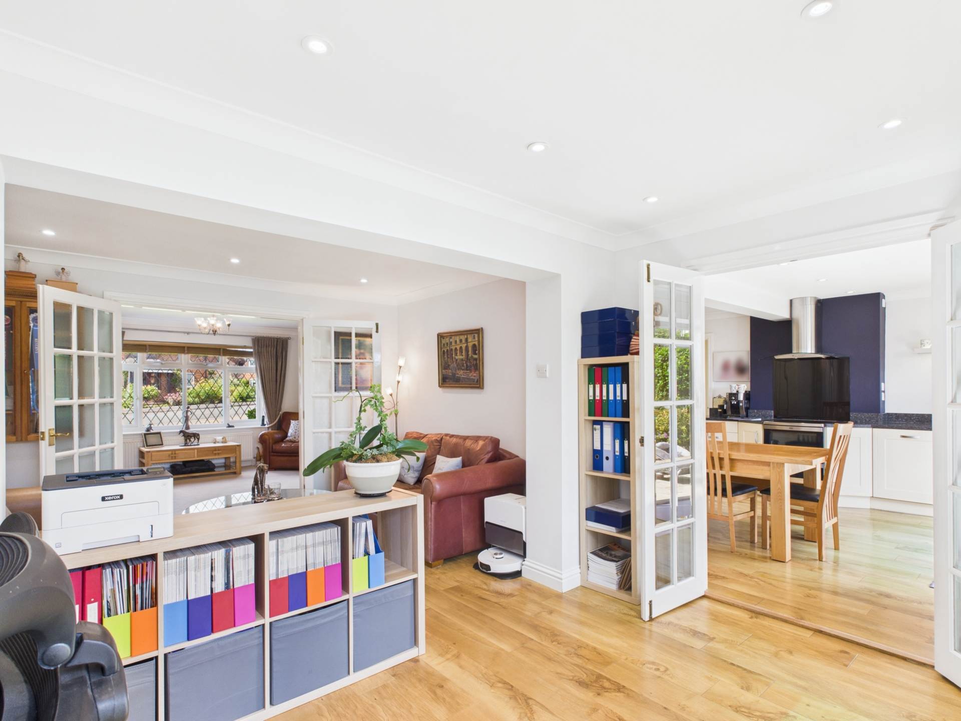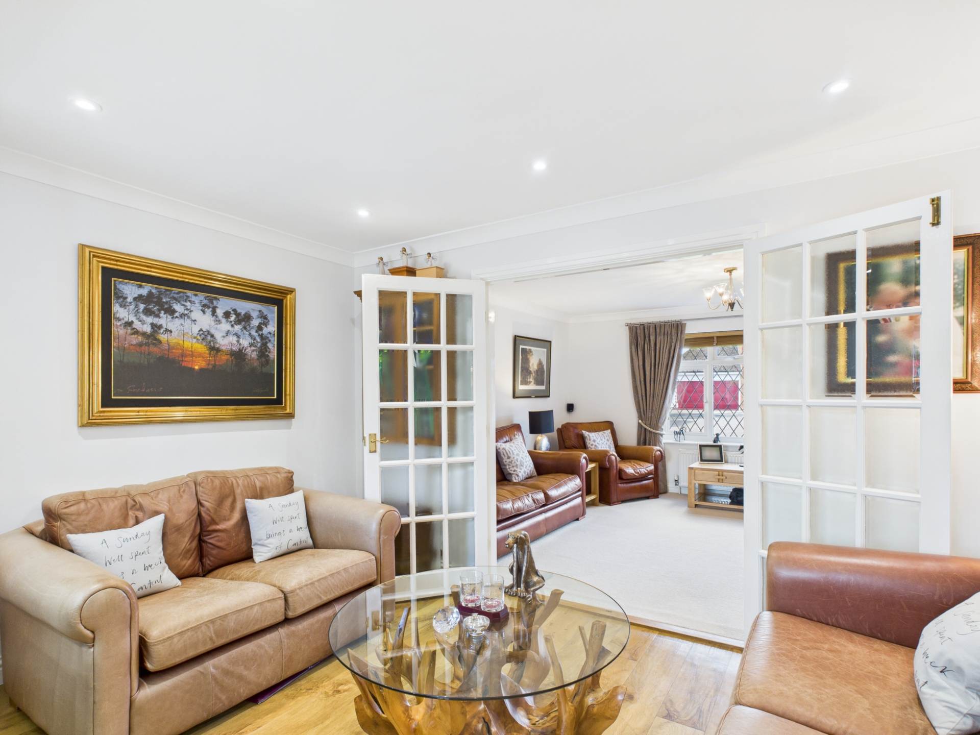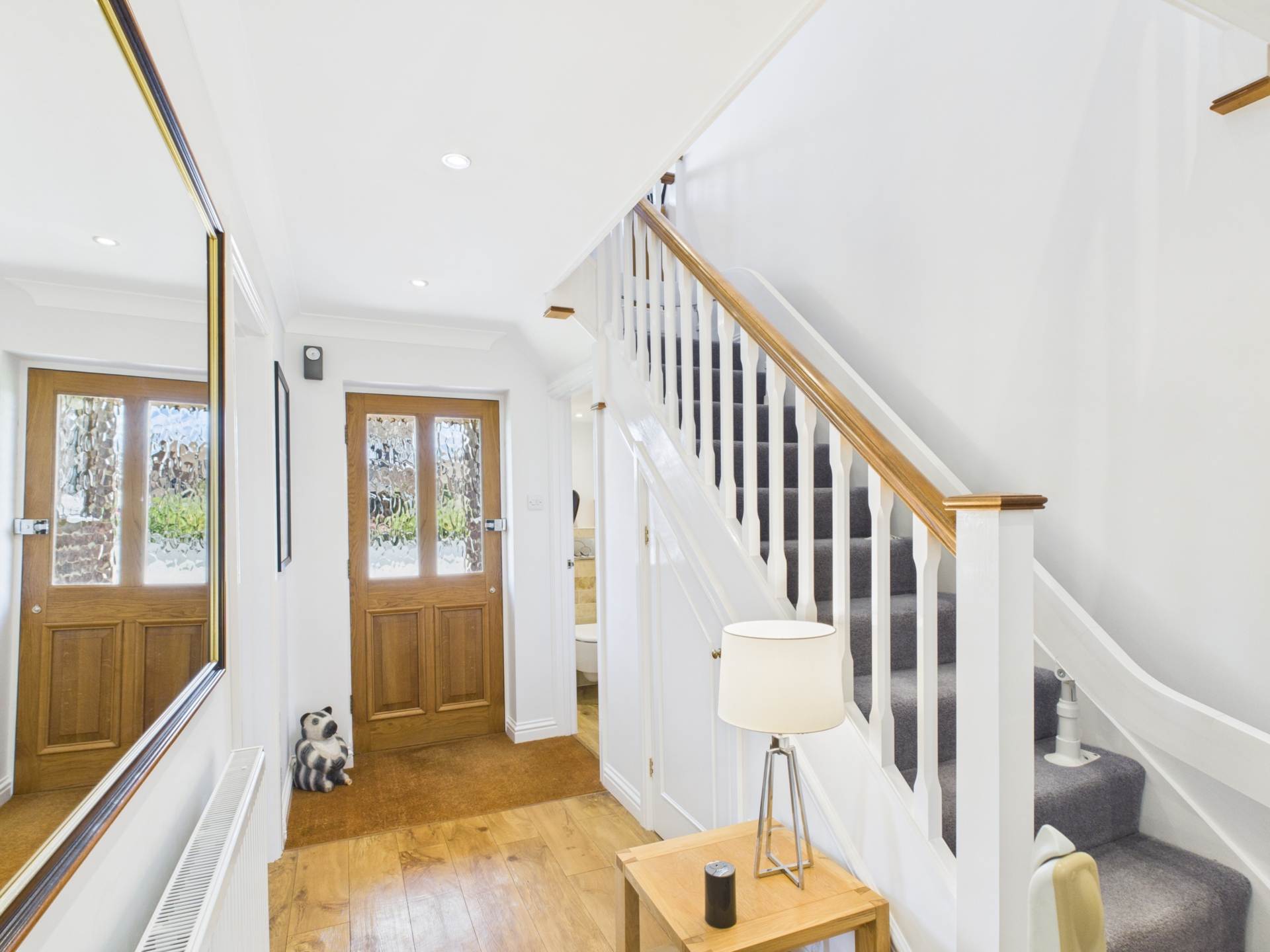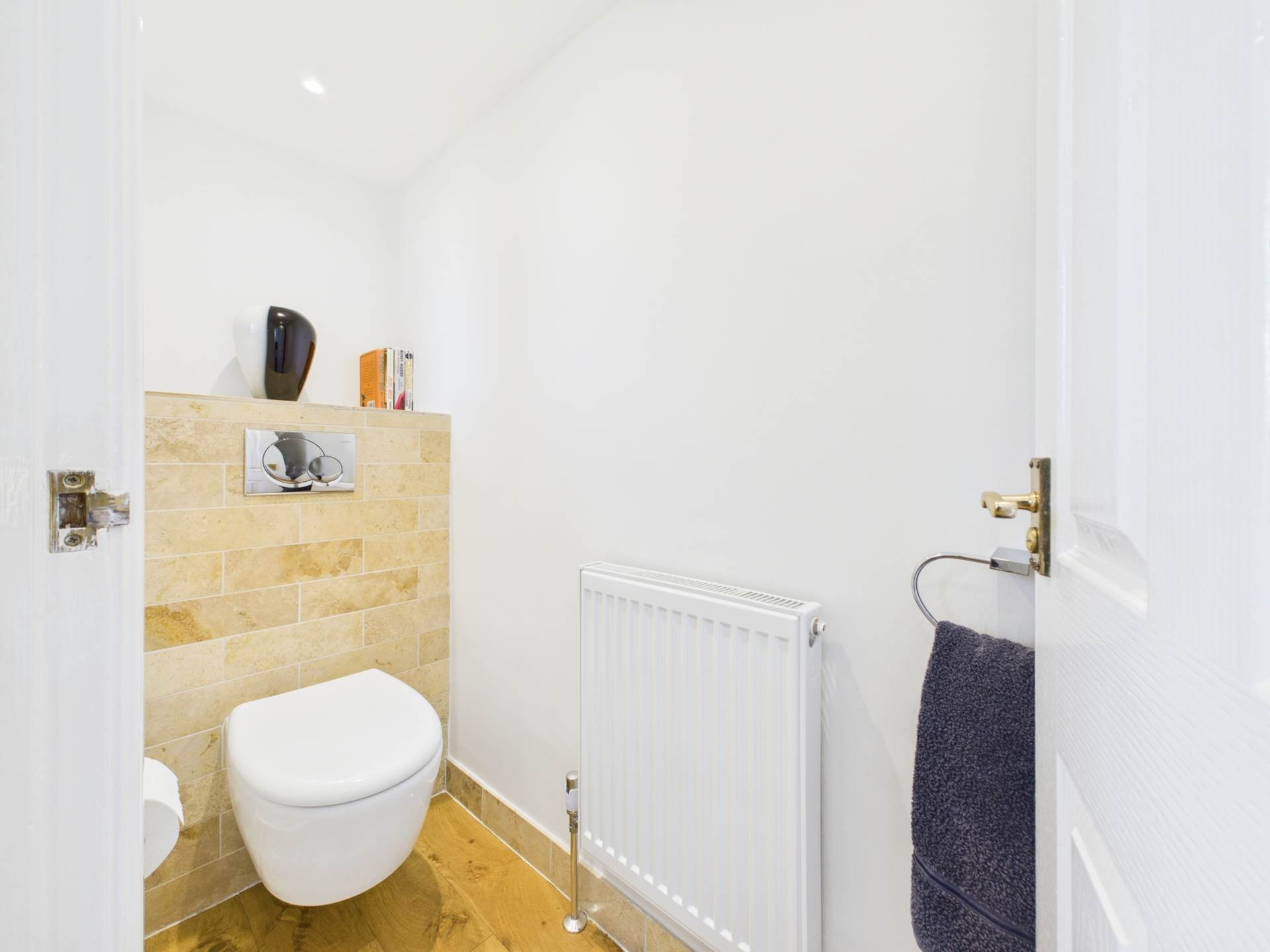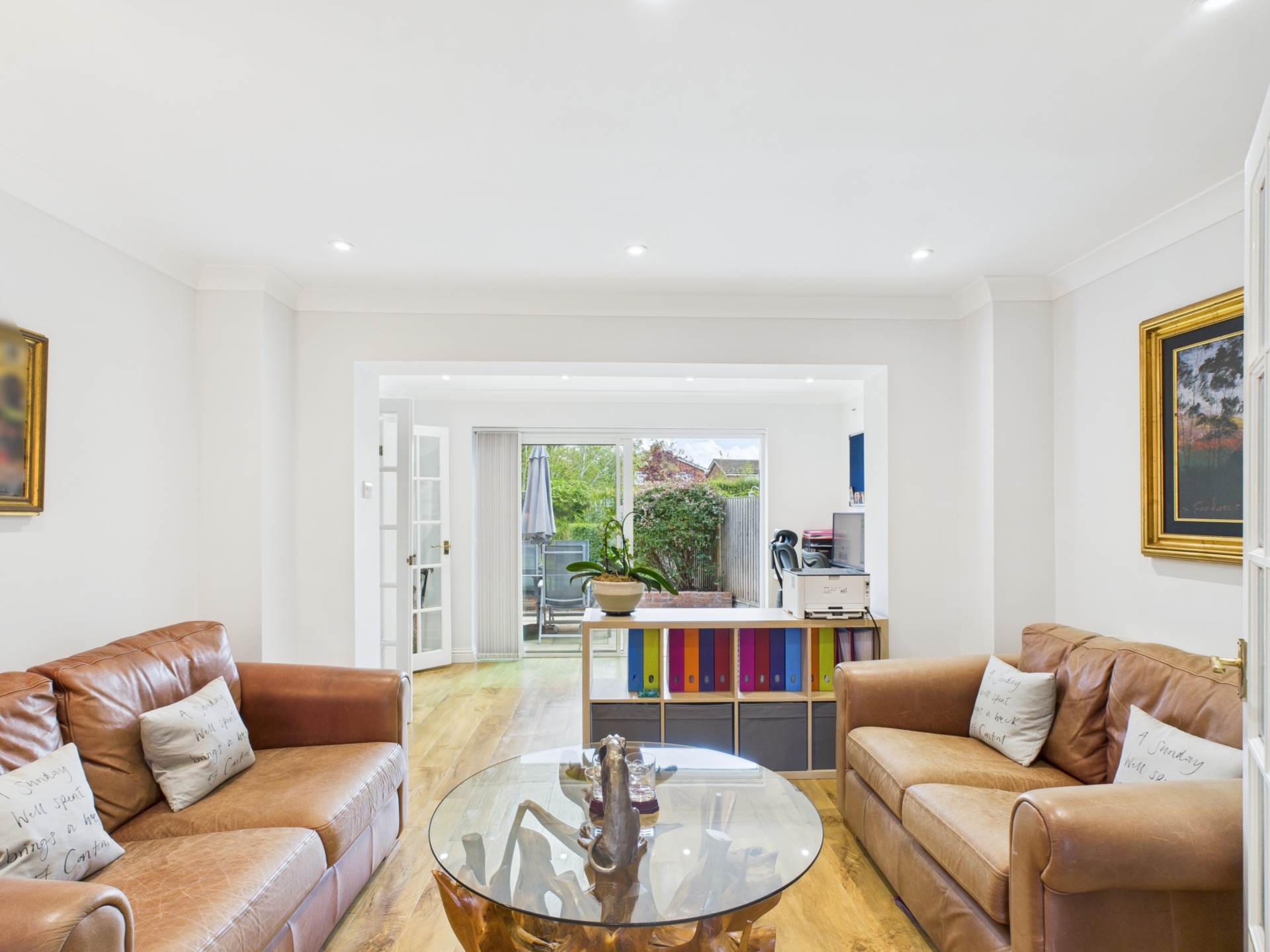 Step inside to discover two elegant reception rooms ideal for entertaining or relaxing with family. Patio doors on both sides open onto a flat, well-established garden that offers privacy and peace a true outdoor retreat. A convenient downstairs cloakroom adds to the home`s practical layout.