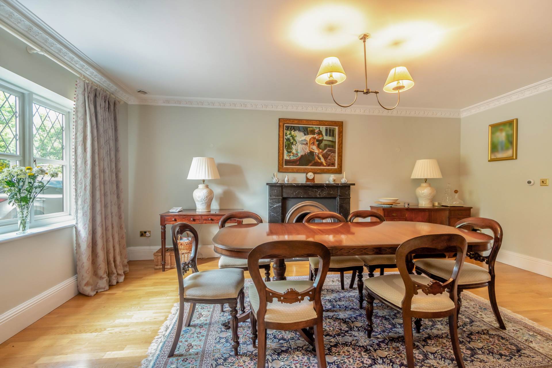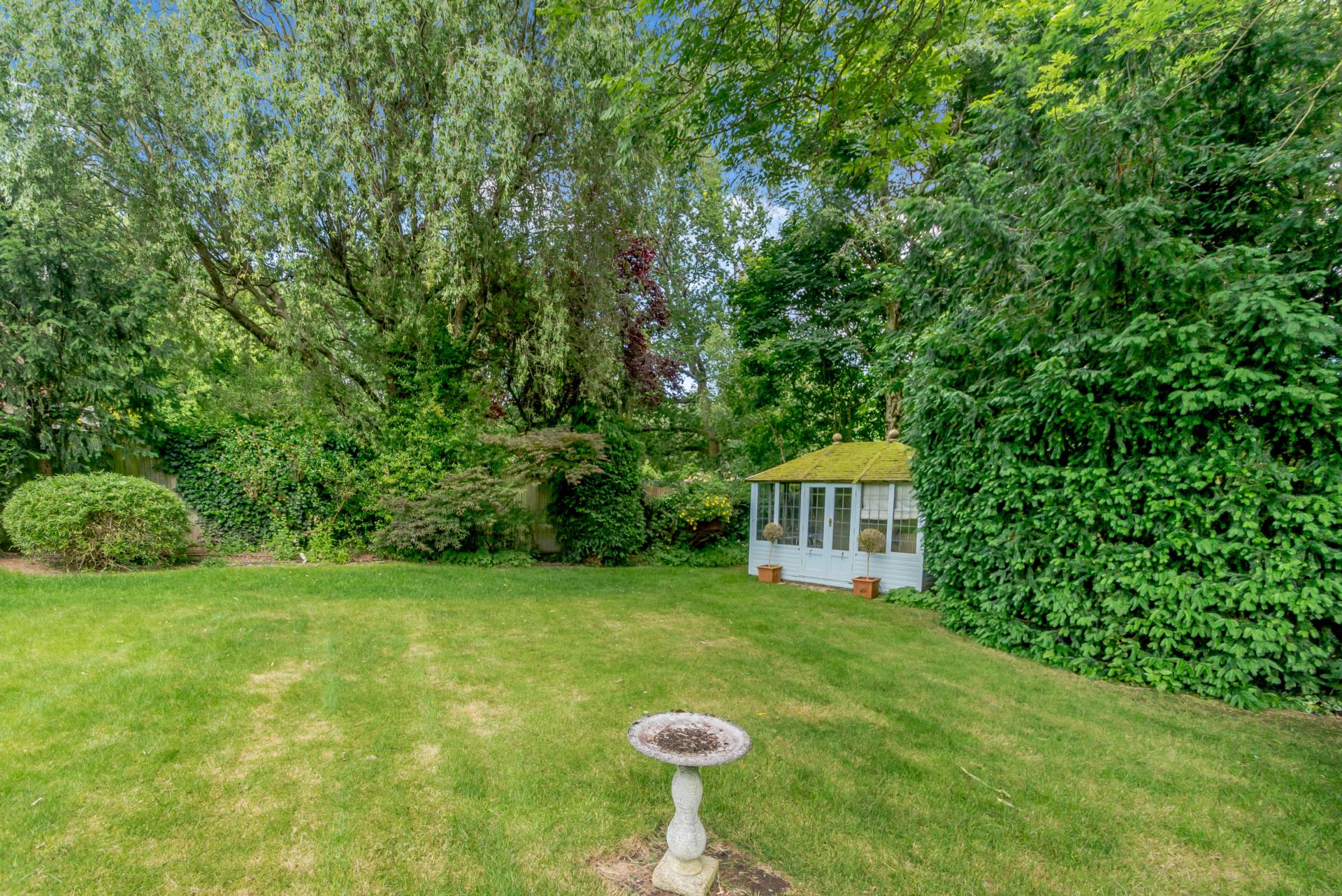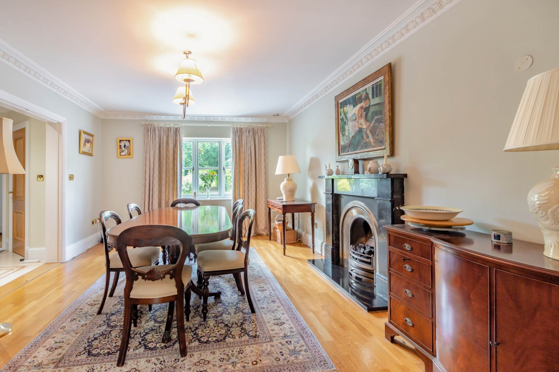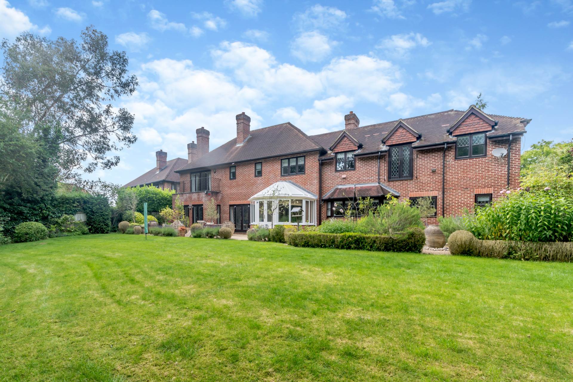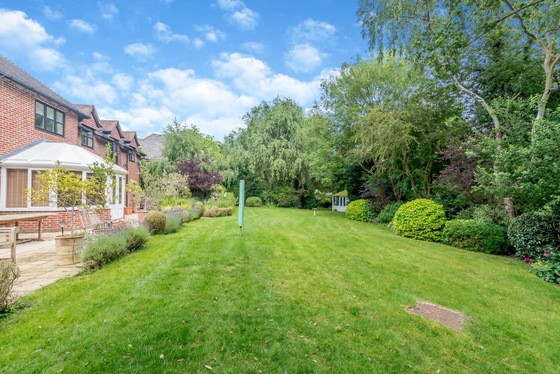 A highlight of this beautiful home is its stunning and well-established garden located to the rear of the property. Predominantly laid to lawn interspersed with borders and flower beds and featuring a backdrop of mature trees and hedging, creating total privacy. A large terrace to the rear of the house provides an ideal space for informal entertaining and enjoying the beautiful views across the garden.