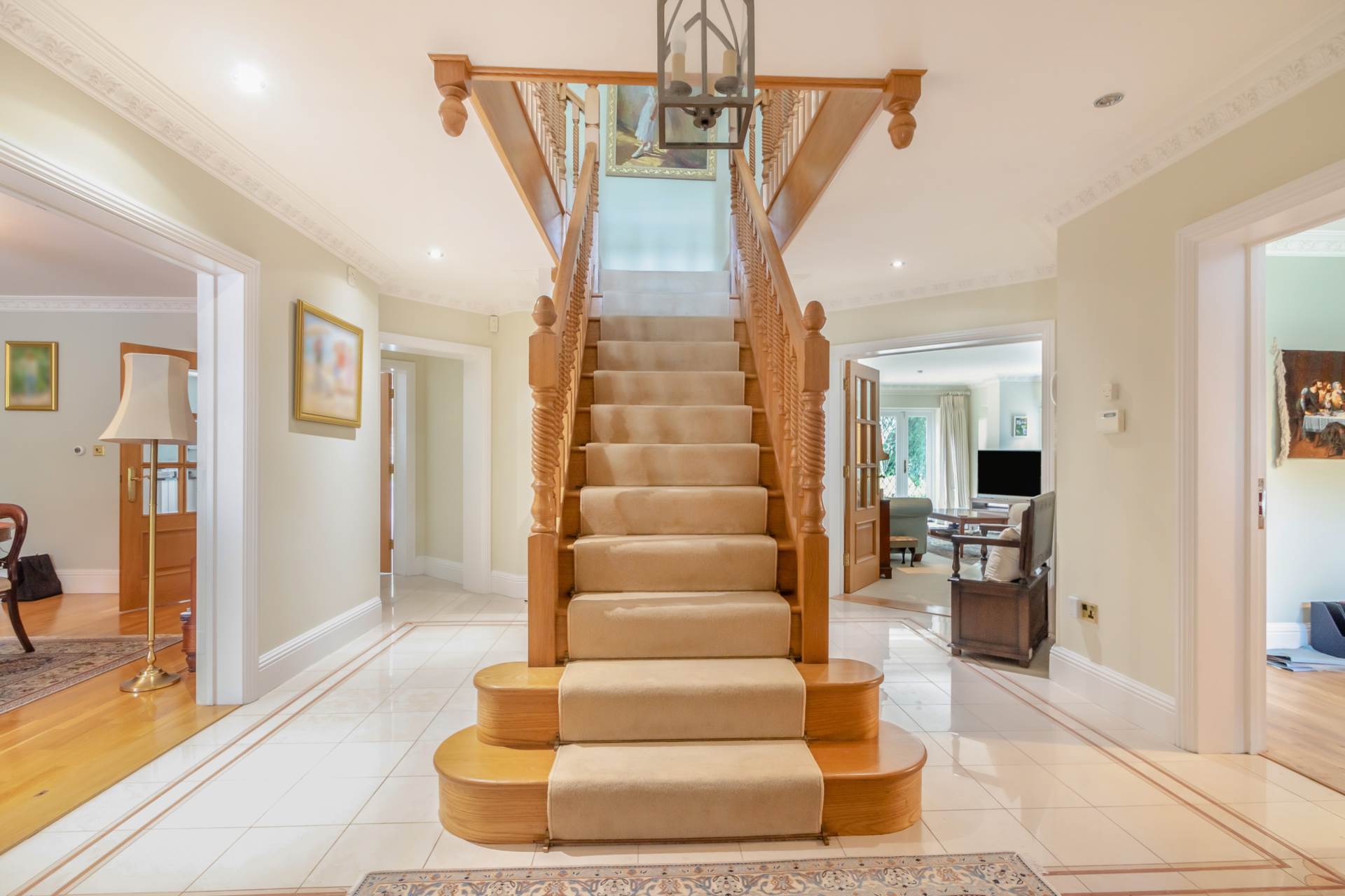 Upstairs there are five double bedrooms all accessed from a light and spacious galleried landing. Of particular note is the stunning Master Bedroom suite also with generous dressing room, sitting area and well-appointed ensuite bathroom. There is a family bathroom and a further ensuite shower room to the principal guest bedroom.