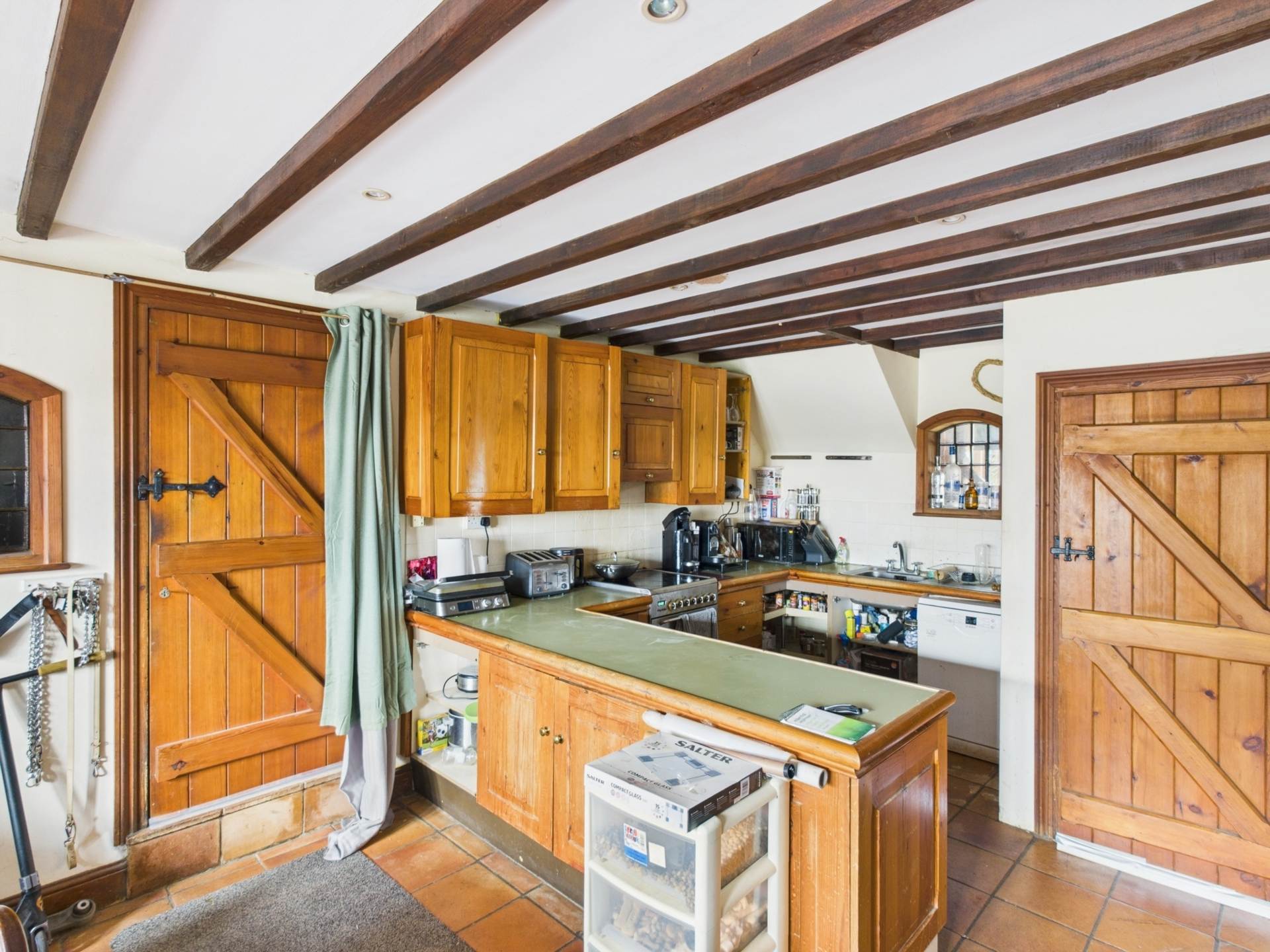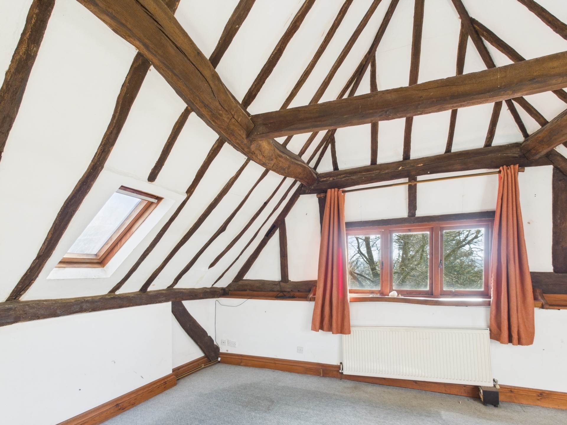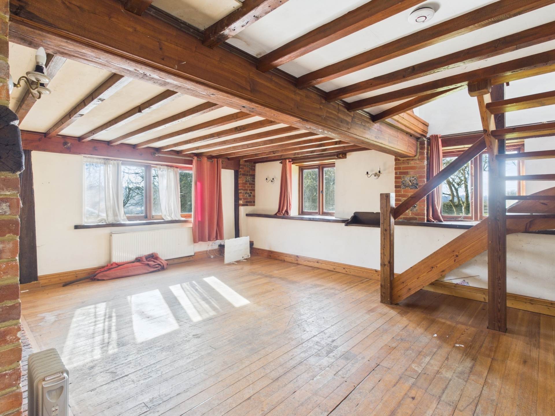Offering nearly 6,000 square feet of space (total), this property provides ample room for development or personal customisation. In 1982, part of the barn was converted, with two of its bays transformed into living space across two floors. This resulted in spacious accommodation, including four bedrooms, two bathrooms, two reception rooms, a kitchen/dining room, two cloakrooms, a utility room, and a garage/store. The remaining three bays retain their original, vaulted design, with exposed oak timbers and a large, open space. Planning permission (CH/2017/0467/FA) was granted in March 2017 to further convert the remaining part of the barn into additional living space, adding another 800 sq. ft. to the property. Additionally, the adjoining stables were converted into a spacious end-terrace cottage, featuring two reception rooms, a kitchen, utility room, two bedrooms, and a family bathroom.