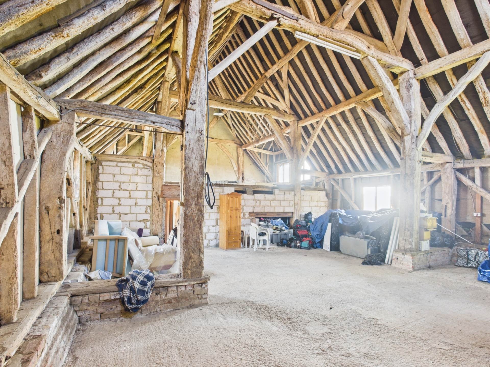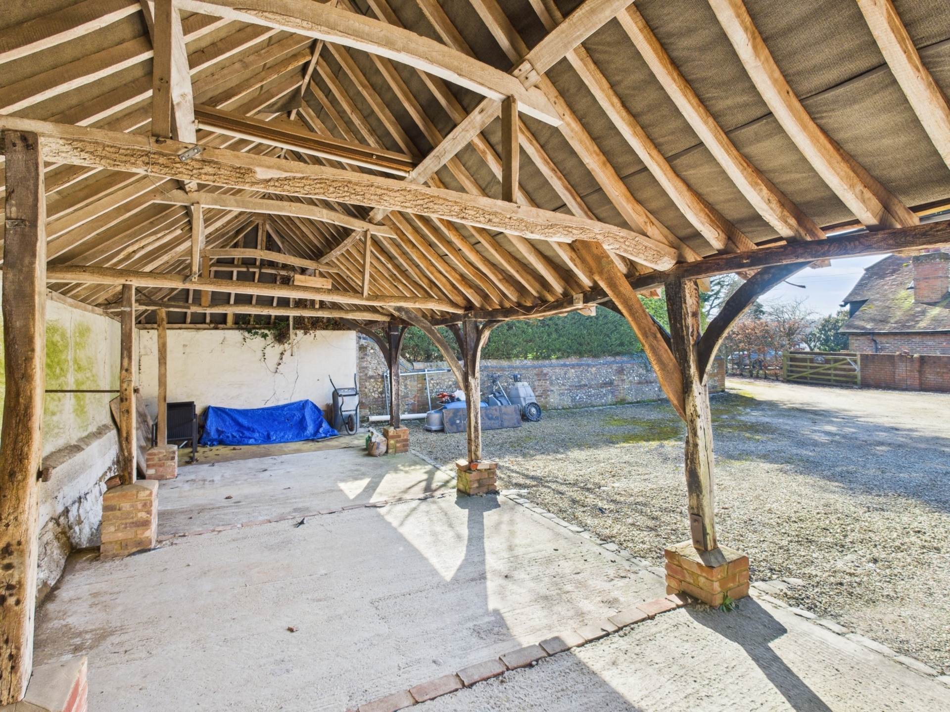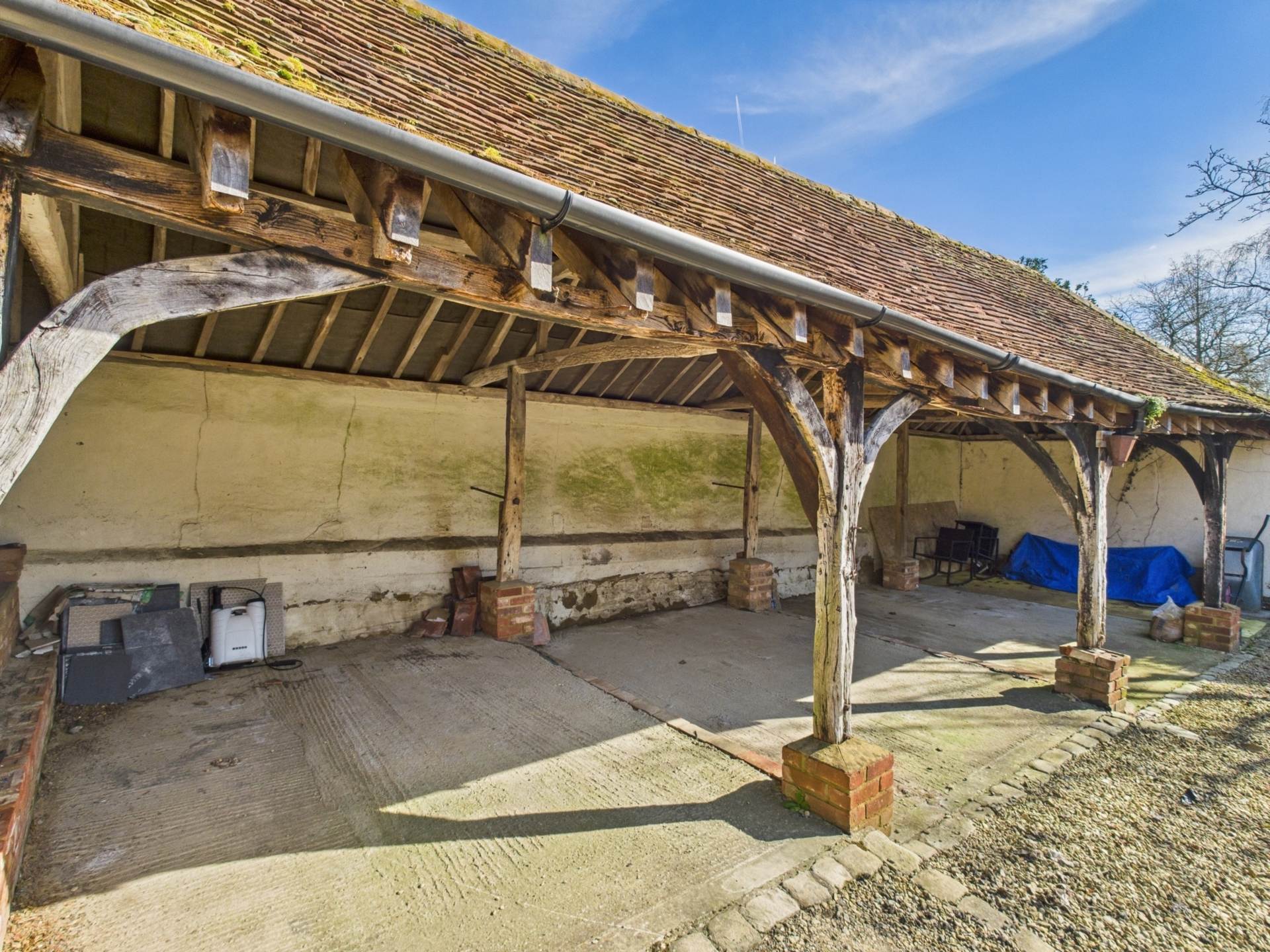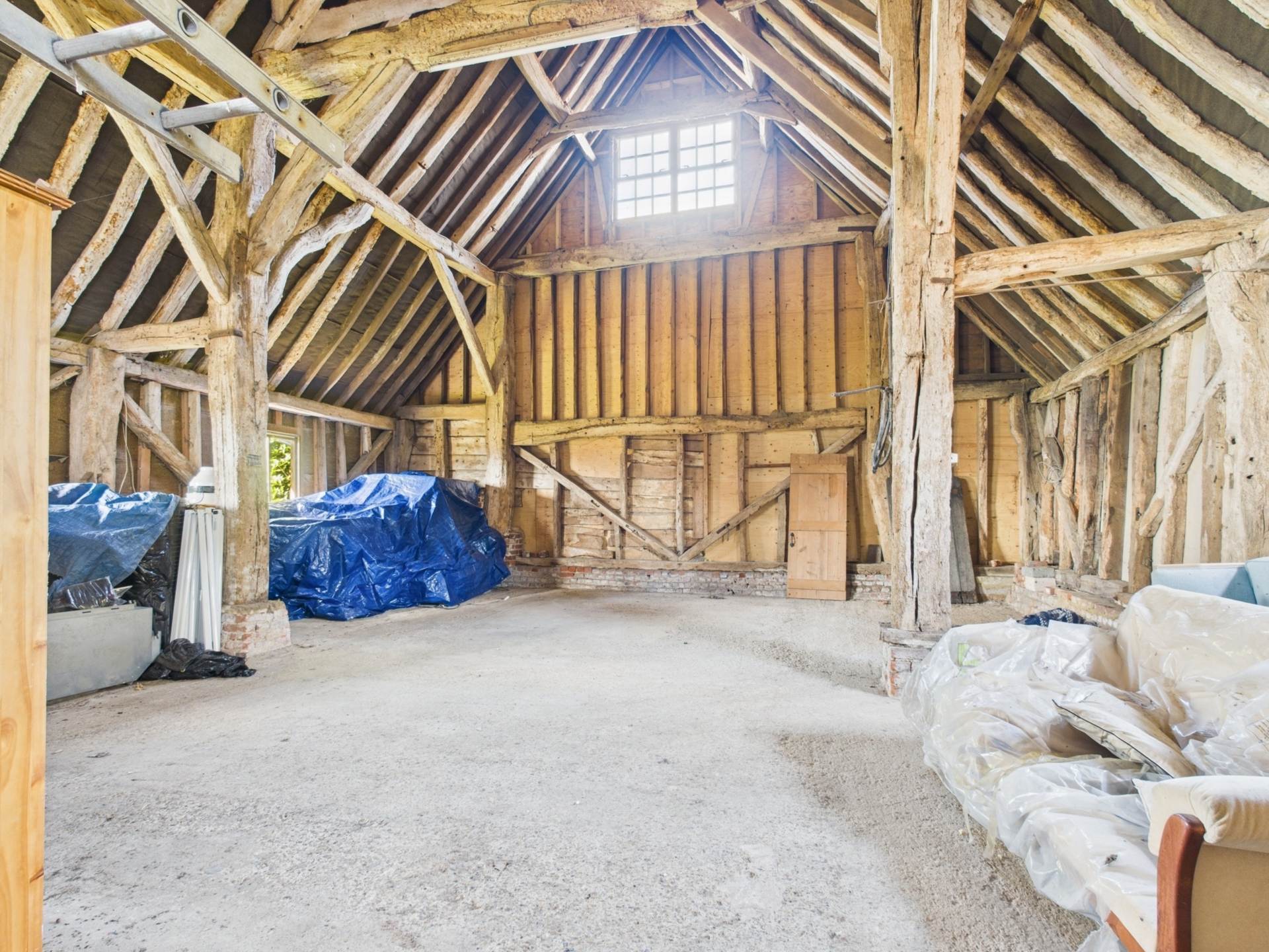 Originally part of the prestigious `Drakes Estate,` the current owners have maintained the property since 1979. The Grade II listed Aisle barn, one of the few of its kind remaining in Buckinghamshire, dates back around 450 years, though its exact age remains unknown. The barn was originally constructed with five bays, all fully aisled, and stands as a rare example of historic craftsmanship. The charming cottage, once a stable, adds character to the overall property. Nestled in the scenic hamlet of Woodrow, High Barn Farm and Shires Yard occupy a prime elevated position, offering breathtaking views of the Chiltern countryside within an Area of Outstanding Natural Beauty. The property sits on a plot of approximately 0.75 acres, with the exciting potential to purchase additional land to the front of the site.