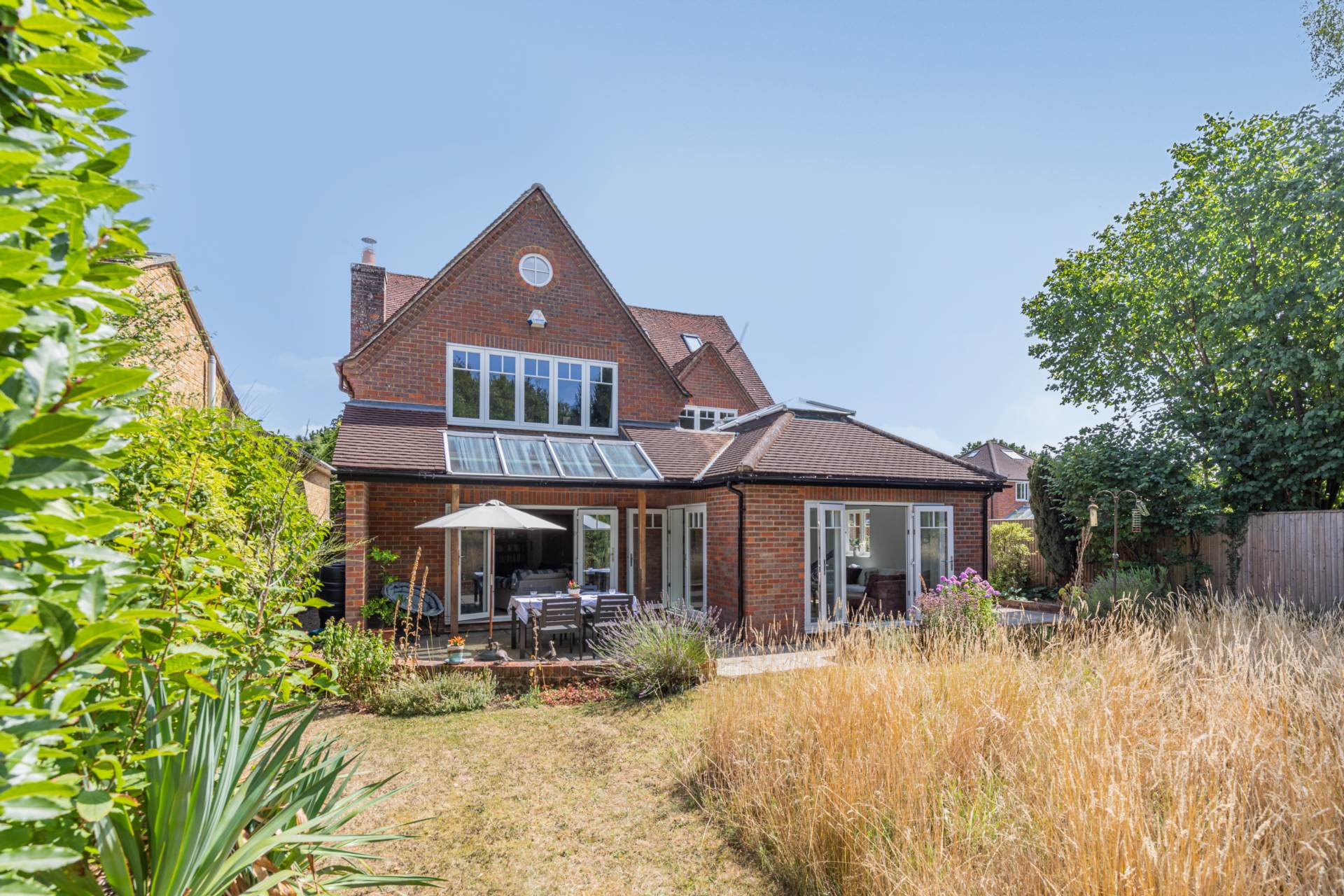 `The garden itself is a joy. We have grown our own vegetables in raised beds and a greenhouse, let the lawn go wild with wildflowers, and enjoyed fruit from our plum and pear trees. When the children were younger, it was a football pitch; now, it is a haven for birds, bees, and barbecues. Our L-shaped plot also holds a versatile outbuilding, complete with its own kitchen and bathroom. This has been everything from a teenage party space to a peaceful home office.
