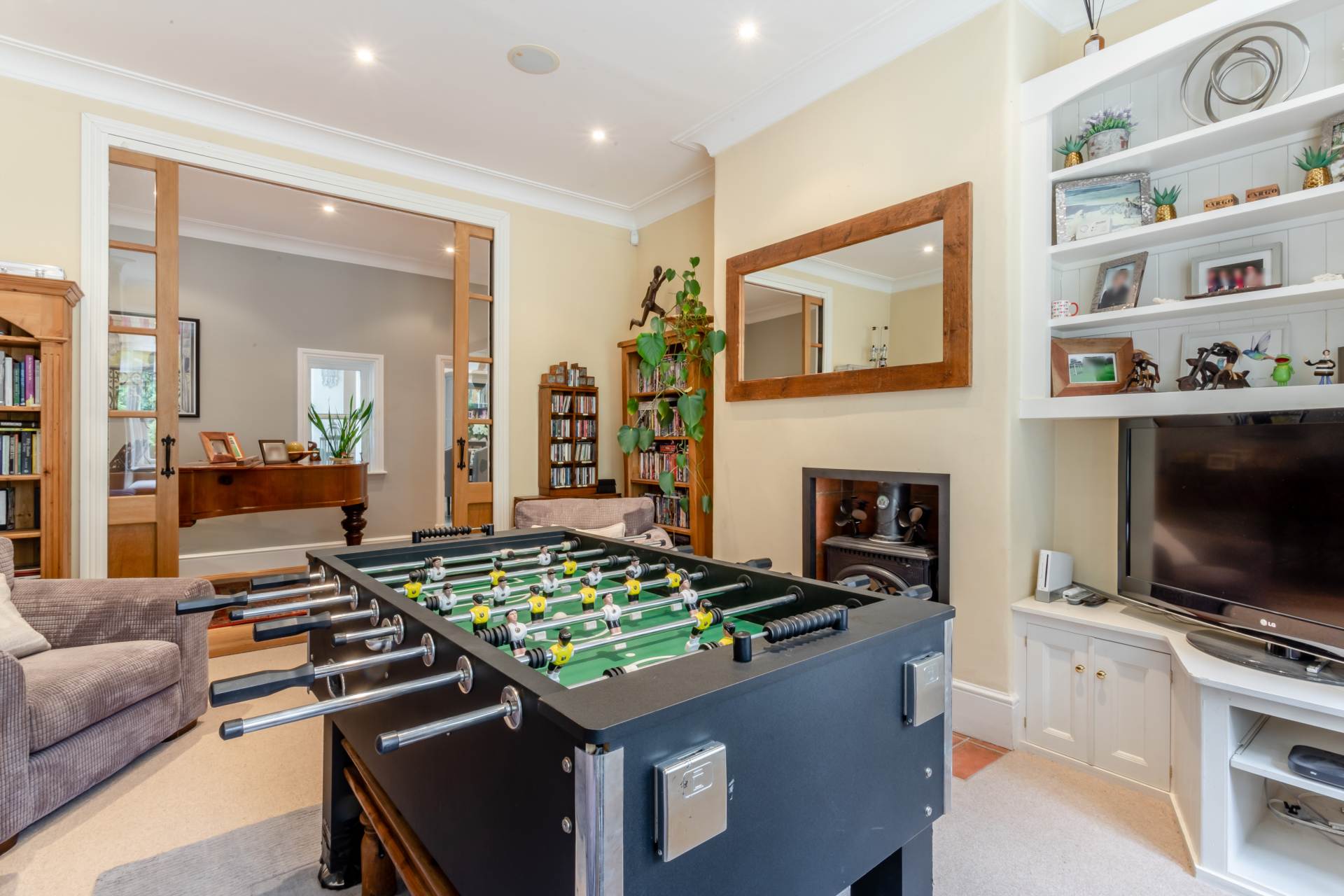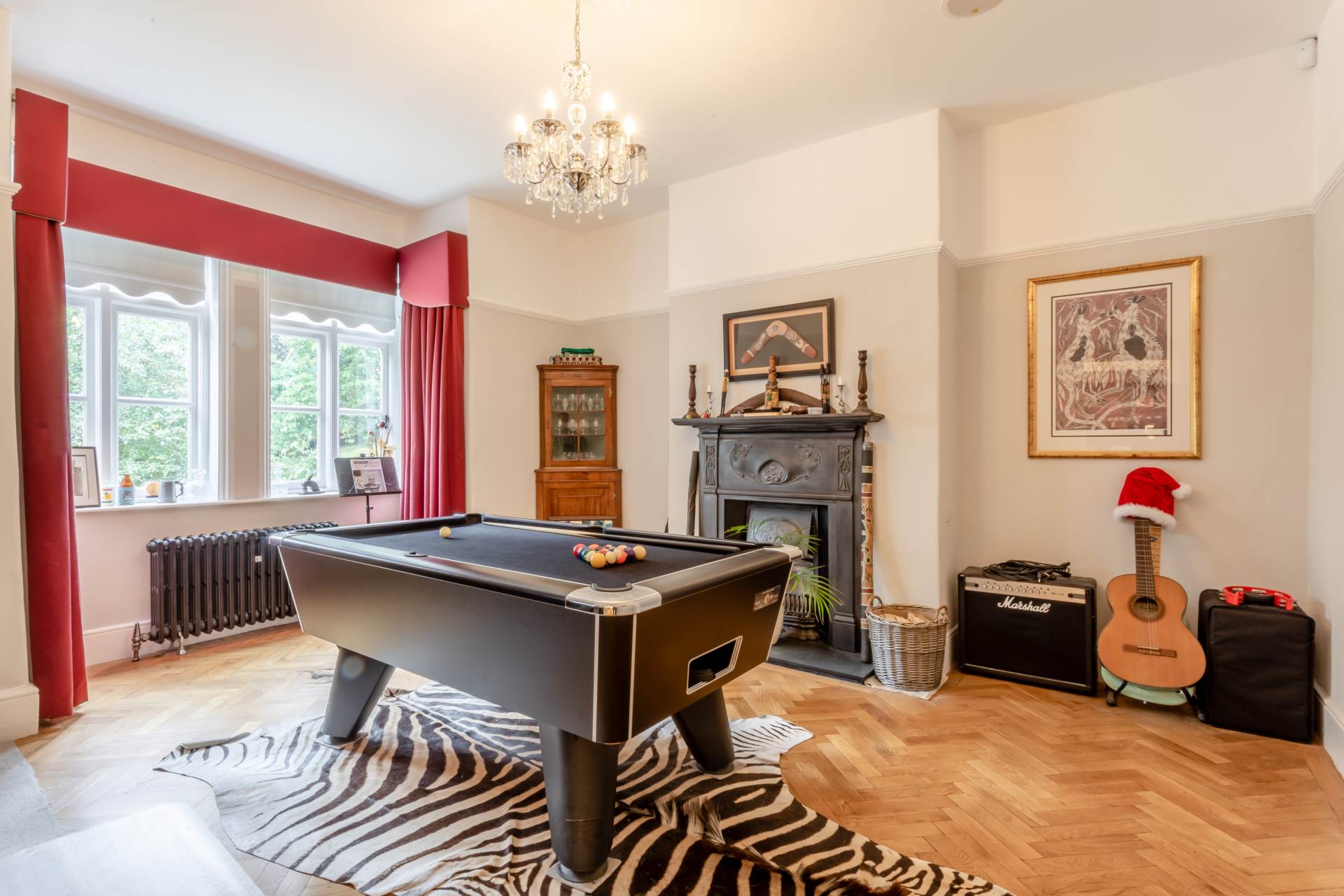 From the moment you arrive, the home exudes character. A deep entrance porch opens into a magnificent reception hall, where oak flooring and ornate plasterwork set the tone for the rest of the property. The drawing room is bathed in natural light and features a beautifully carved Edwardian-style fireplace and oak floors, creating an inviting space to relax or entertain. The dining room echoes this period charm with parquet flooring and another striking fireplace.