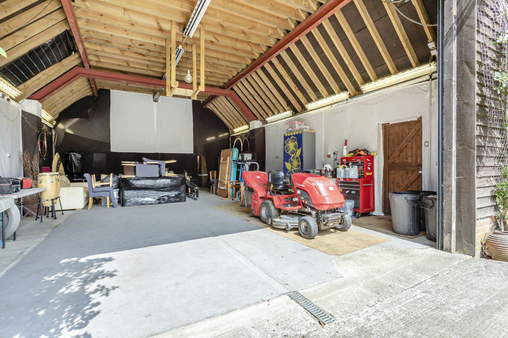 The modern barn provides extensive garaging with storage above. Notably, planning permission has been granted to convert the barn into a two-bedroom annex with a carport perfect for guests, multigenerational living, or investment potential.