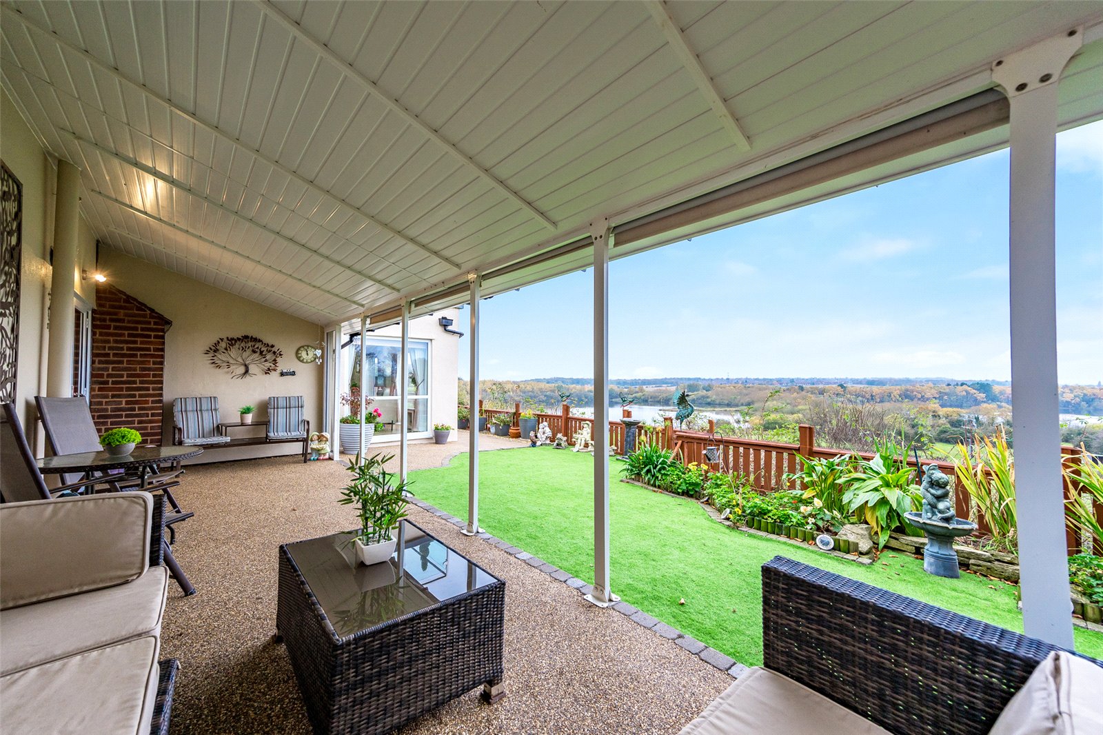 The rear garden features a summer house, ideal for relaxing or entertaining, and a spacious patio area with covered seating, perfect for enjoying alfresco dining or simply taking in the scenery, whatever the weather.
