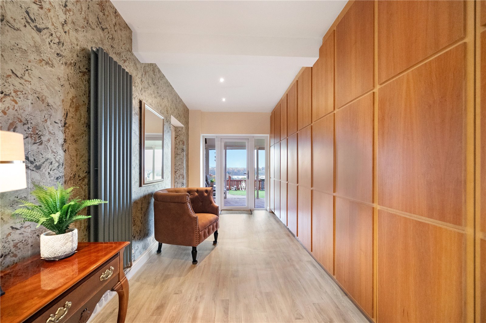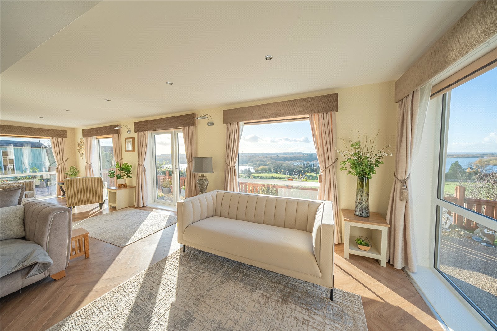 The heart of the home is the open-plan kitchen, which flows seamlessly through to the lounge and snug area. This open living space has been designed to maximize the spectacular rear views, offering a tranquil environment for relaxing, cooking, and entertaining. Large windows and glazed doors allow natural light to flood the space, enhancing the connection to the outdoors and offering access to the rear.