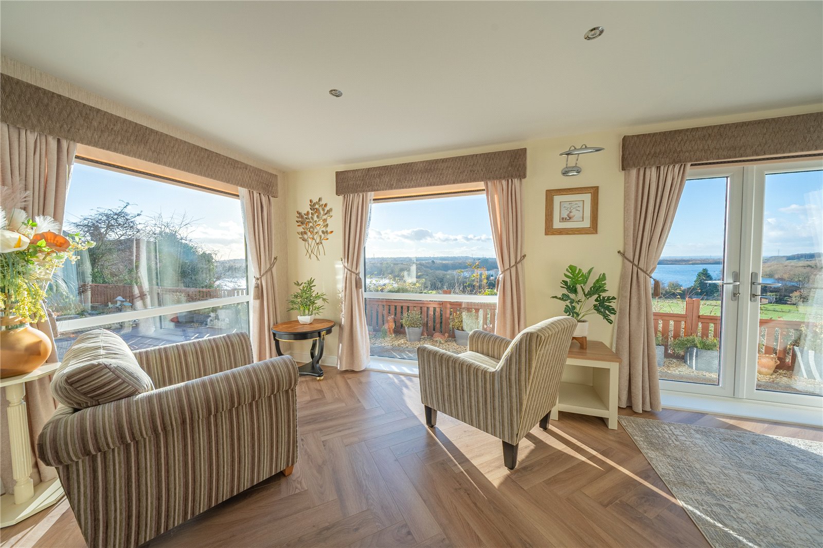Externally, the property is designed with ease of maintenance and enjoyment in mind. To the front, a secure enclosed garden provides peace of mind, while to the rear, a beautifully arranged outdoor space capitalizes on the stunning lakeside views.