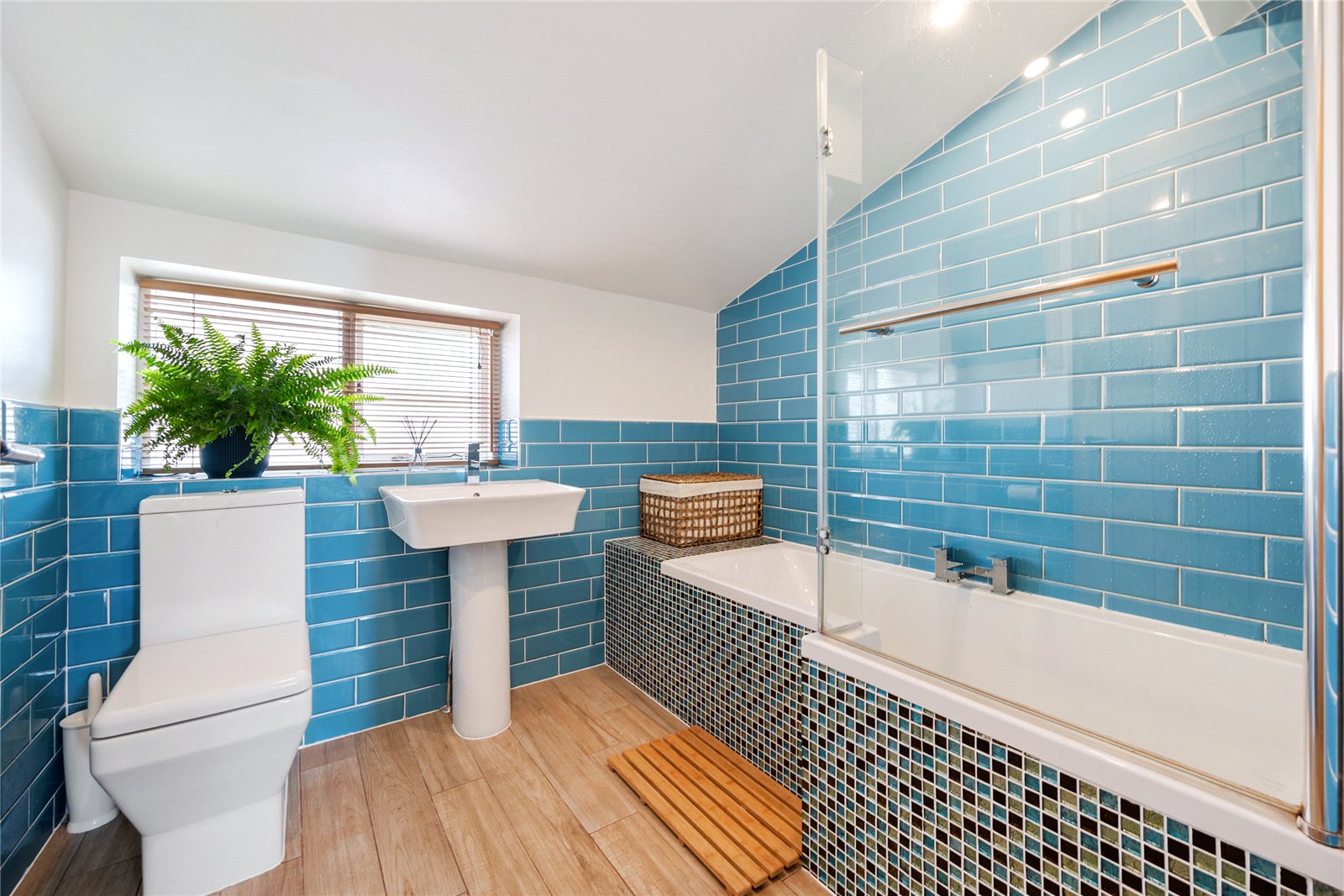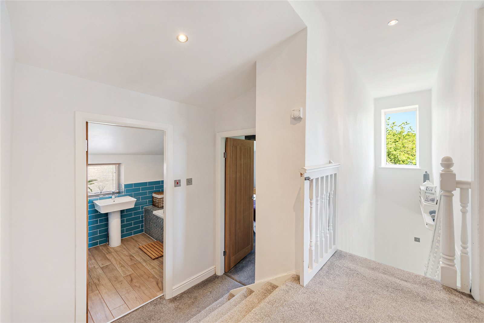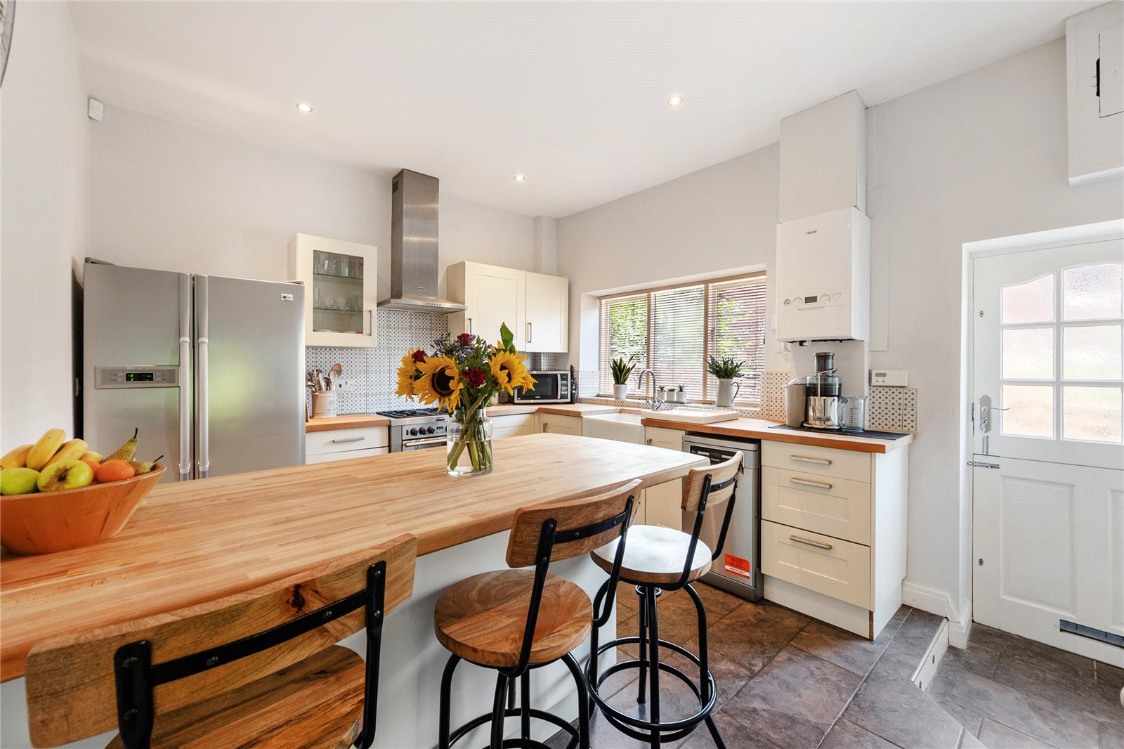 Adjacent to the kitchen on a split level is a separate dining room differentiating the space from the lounge and kitchen, ideal for hosting dinner parties or family gatherings. The dining room's generous proportions and charming décor make it a wonderful space with the focal point of the room the wood burning stove. For added convenience, the ground floor also features a separate utility and downstairs WC, enhancing the practicality for family and guests alike.