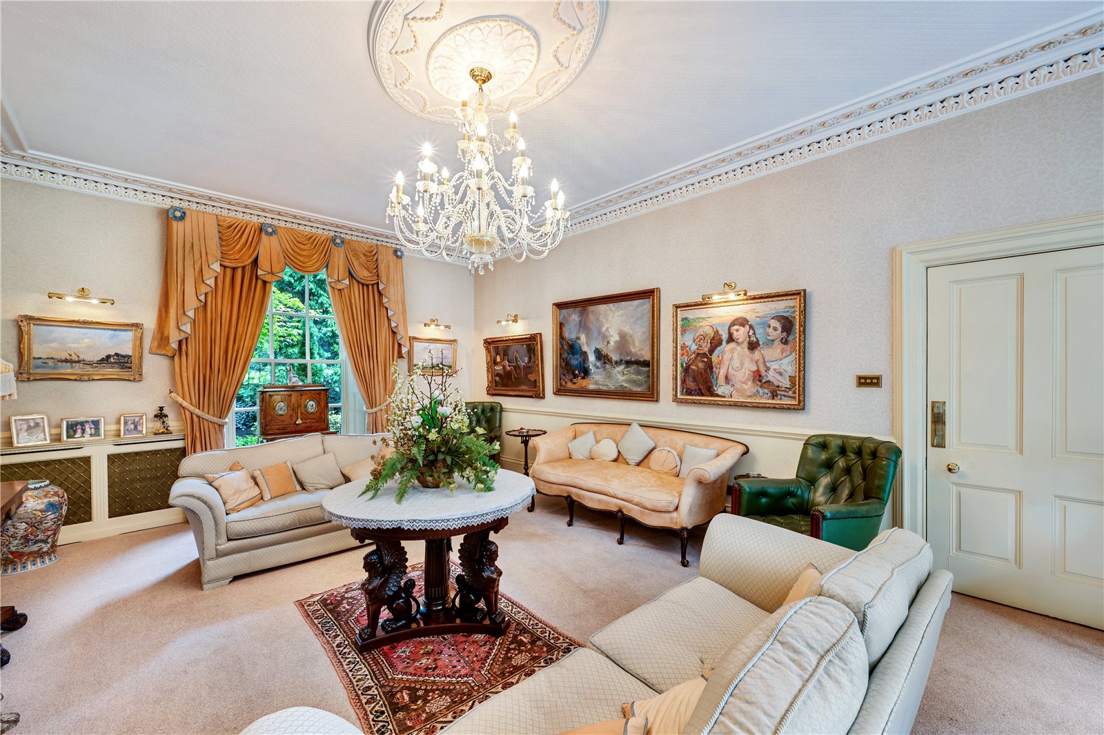 The reception hall, with its soaring ceilings and rear-facing windows, sets an impressive tone. Every detail — from the picture-lit corridors to the heritage-inspired finishes — has been thoughtfully curated. The formal living room enjoys dual-aspect garden views through a spectacular bay window, while the study offers a peaceful space for work or retreat.