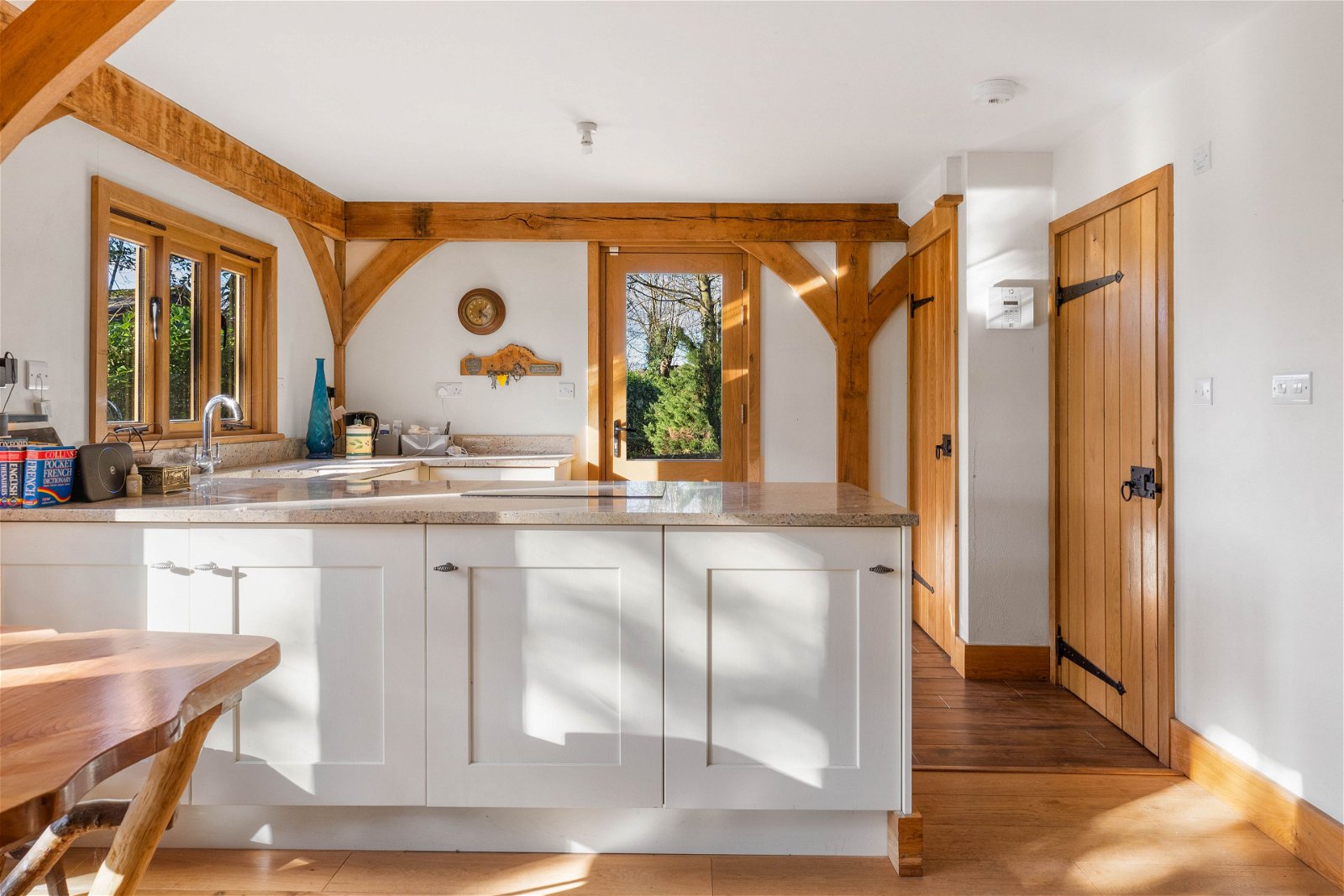 Stepping inside, there is an excellent open plan kitchen area with quartz topped work surfaces and a sizable lounge with oak beams and timbers on display with plenty of doors and windows to enjoy the 360' view of this wonderful plot. Moving upstairs, there is a spacious bedroom with en-suite shower room and velux windows allowing plenty of natural light to enter.