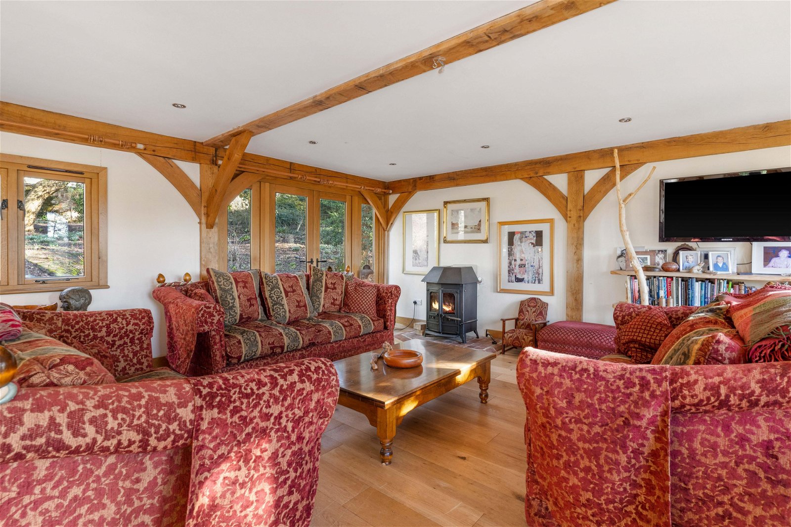 Stepping outside, the grounds are excellent for the outdoor type of person. In front of the Pavilion are level formal gardens which were once the tennis courts to the original house, there are 2 outbuildings which lend them self perfectly for storage or as a small study/work shop. Moving past the Pavilion, the rest of the plot is more rugged and rough with an abundance of trees and wild flowers, ideal for pets or to grow vegetables. A hardstanding path provides access to the dwellings from the formal gardens.