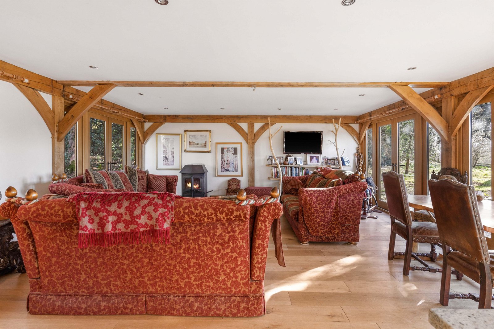 Rarely is there an opportunity to purchase a property and setting quite like ‘The Pavilion’, it is truly, one of a kind. Positioned privately in an elevated position surrounded by wild shrubs, plants and mature trees is this beautiful oak frame detached lodge along with the original scoring hut for when tennis was played in the grounds back in the Victorian times.
