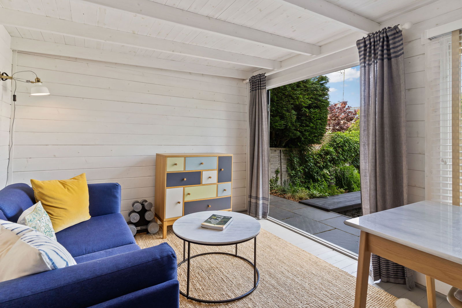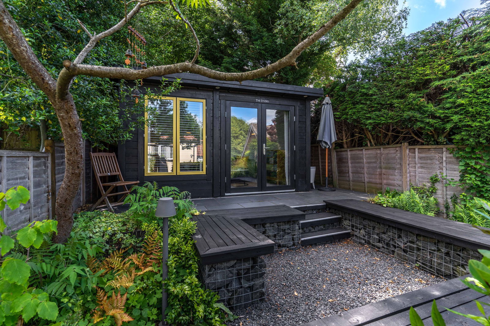 The rear garden has been thoughtfully designed, landscaped and planted. To the very rear of the house is a patio and a herb/kitchen garden with steps that lead up to the lawned area of the garden. The lawn is bordered by flower beds and shrubs and leads to the top of the garden where one finds an area that is wonderful for entertaining. Attractively, gabions filled with natural rock and topped with timber seats have been placed around a gravel area that is ideal for a fire pit or for barbecuing. This area is bordered by ferns and planting and leads to a patio set in front of the studio room. With light and power connected the studio is an excellent addition to the cottage and is ideal for those that work from home or for entertaining. The owners have also used it a occasional accommodation for visitors. At the rear of the studio, hidden away is a useful garden shed.