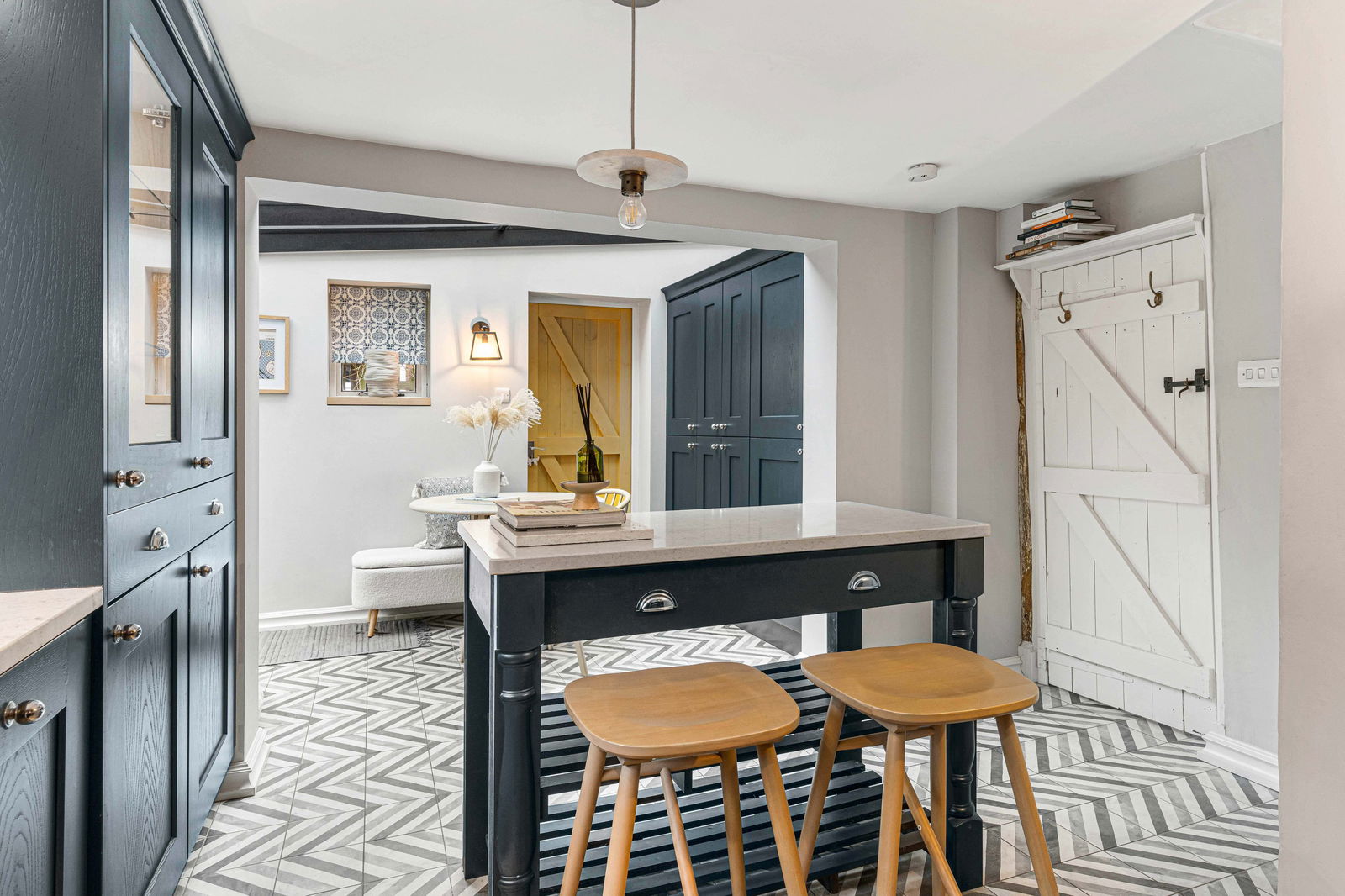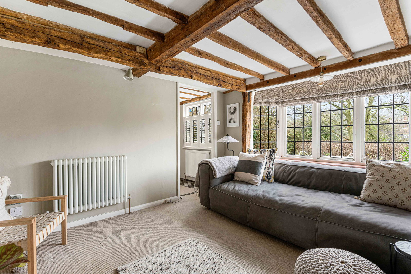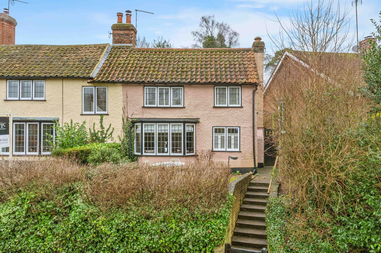 This semi detached, grade II listed cottage has been the subject of sympathetic and meticulous improvement in the last few years and cleverly combines the original features with contemporary design and fitments. The owners have a real flair for design which is found throughout the cottage but particularly in the wonderful refitted kitchen/dining room with its glazed roof over the dining area that floods this room with light. Both bedrooms are doubles with the principal one enjoying an en suite bath/dressing room. Exposed timbers and a red brick fireplace with wood burning stove really set off the living room.