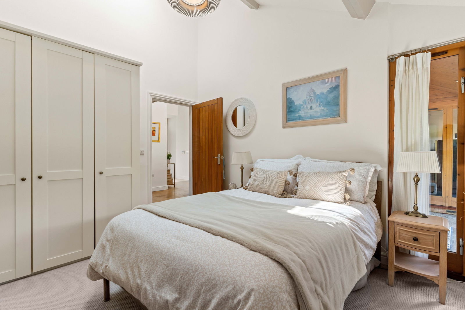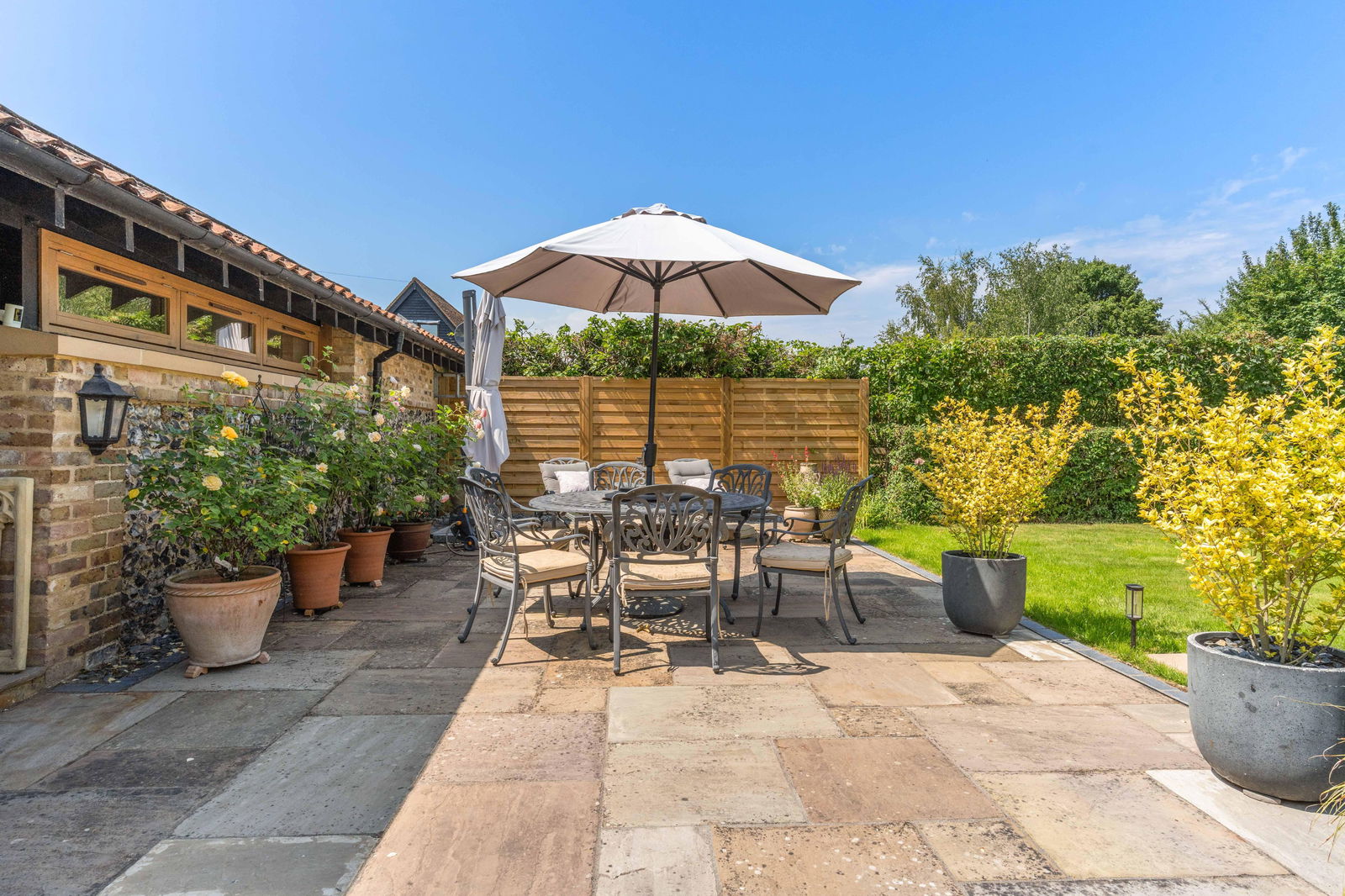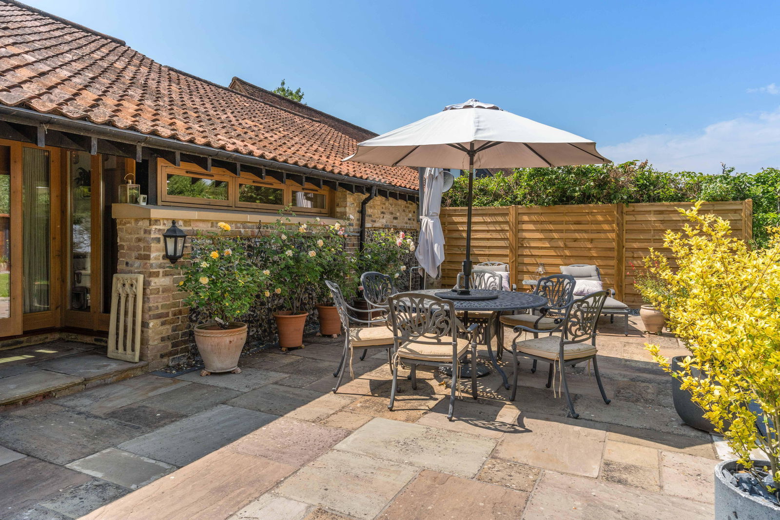 The rear garden is a lovely size with a large patio across the rear of the barn beyond which the lawn extends. There are well stocked flower beds and high mature hedges to all three boundaries provide excellent privacy. At the foot of the garden is a large new garden studio, ideal for those that work from home or as a gym. With air conditioning/heater unit, light and power together with French doors and double glazed windows opening onto the garden. Adjoining this is a useful garden store room.