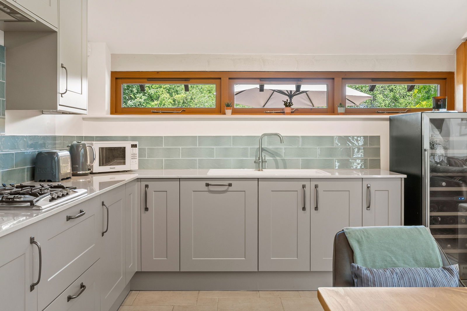 A lovely aspect of Flint Barn is the main living space being open plan and filled with light. Stepping into a welcoming reception area where you cannot help but be impressed by the space on offer. The high vaulted ceiling with roof lights really sets off the living and dining area with glazed windows and French doors opening out onto a recessed veranda and garden beyond. The living area enjoys engineered hard wood flooring and is open plan to the impressive kitchen/dining area. Newly refitted in an attractive contemporary style. There is a wonderful range of units with integrated appliance's, granite worktops and windows to two aspects. There are three good size bedrooms, the main one of which is found at the rear with door opening onto the gardens. The luxuriously appointed and newly refitted contemporary style bathroom benefits from both bath and separate shower cubicle.