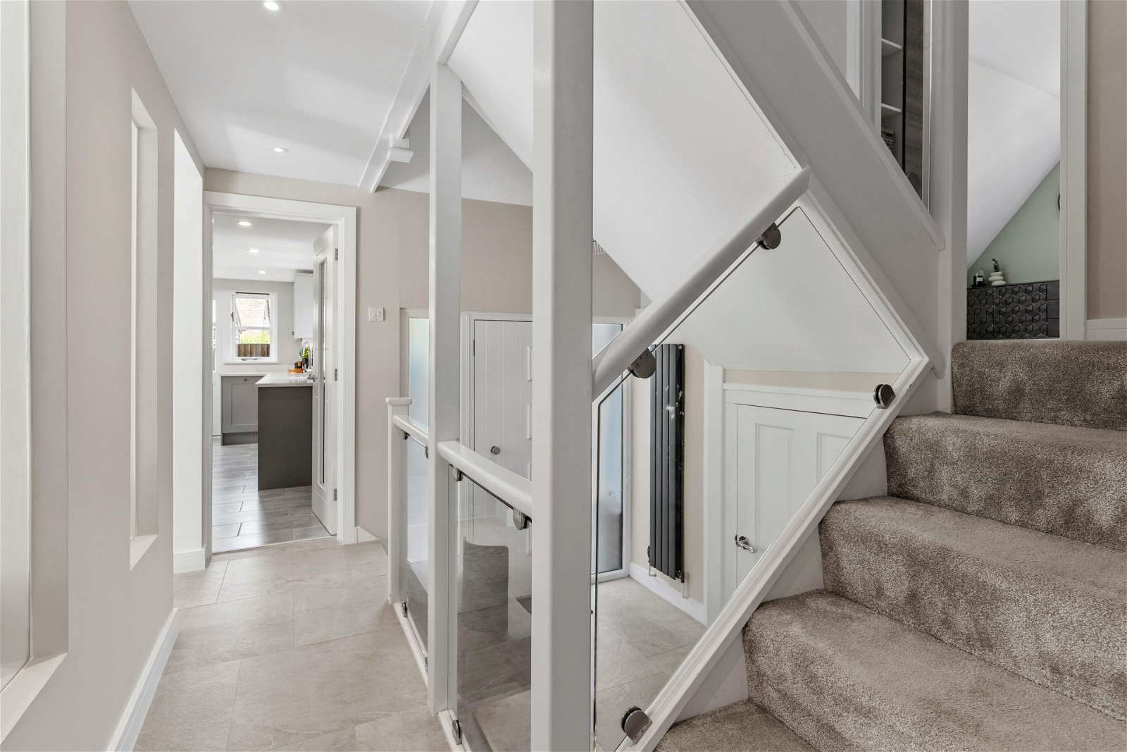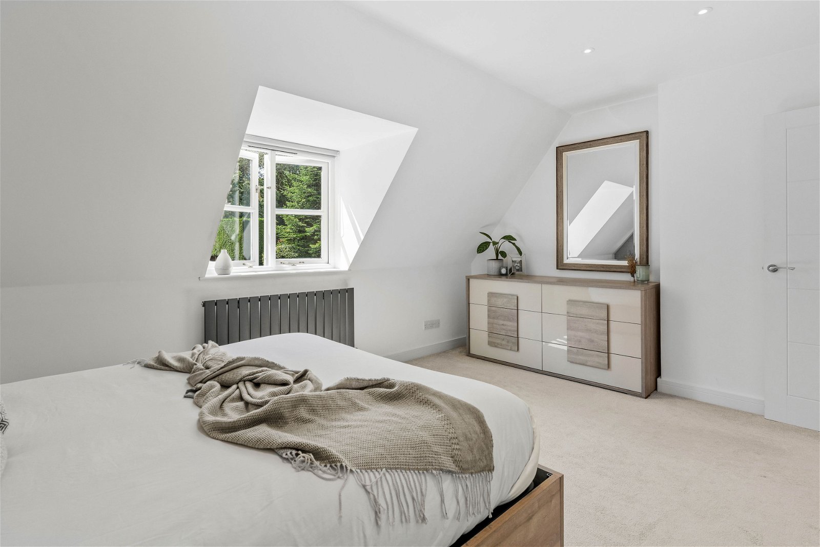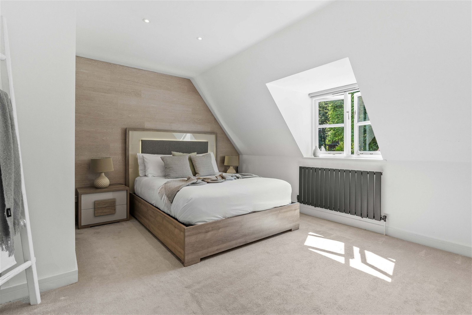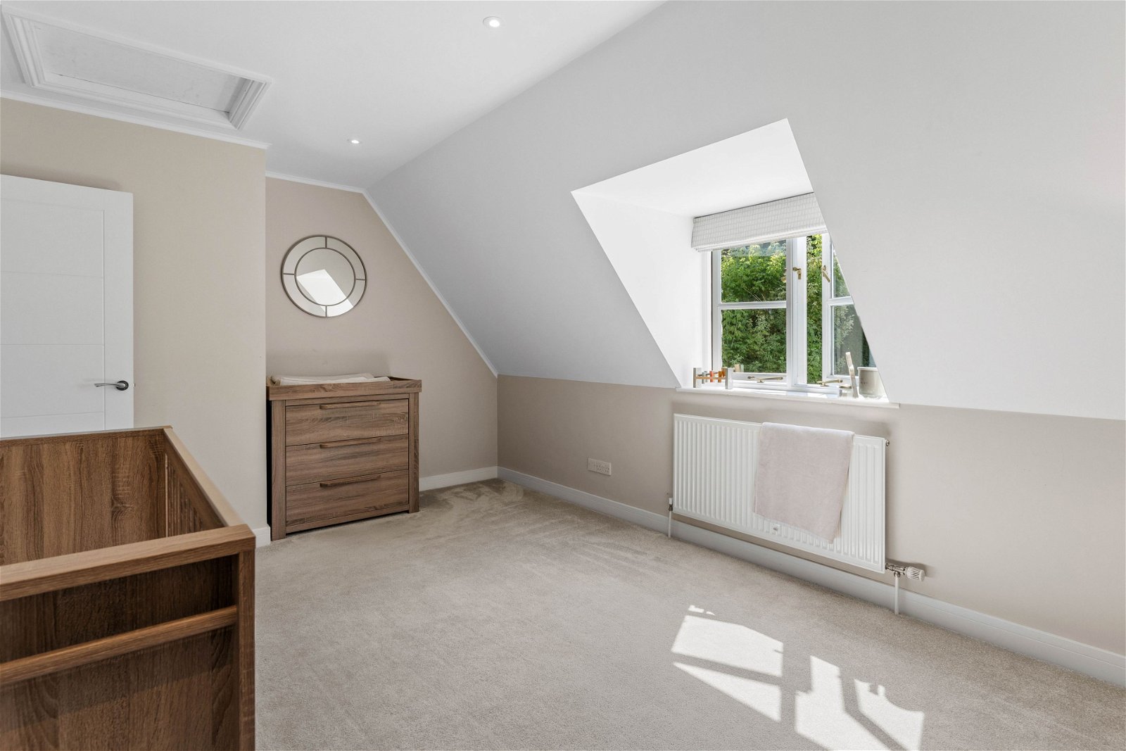 Stairs lead up to a half landing off which one finds an excellent large double bedroom with windows to two aspects, vaulted ceiling and fitted units. The stairs continue up to a further landing with built in cupboards. The main bedroom is a lovely double room with window to the rear overlooking the garden. There is a luxurious en suite shower room that has been beautifully refitted. The third bedroom is another double room with window to the rear and there is also a luxurious refitted family bathroom off the landing.