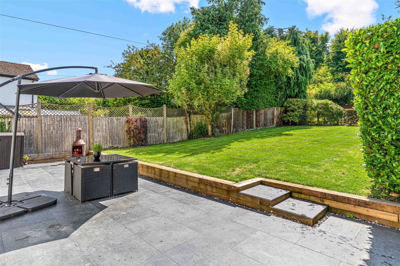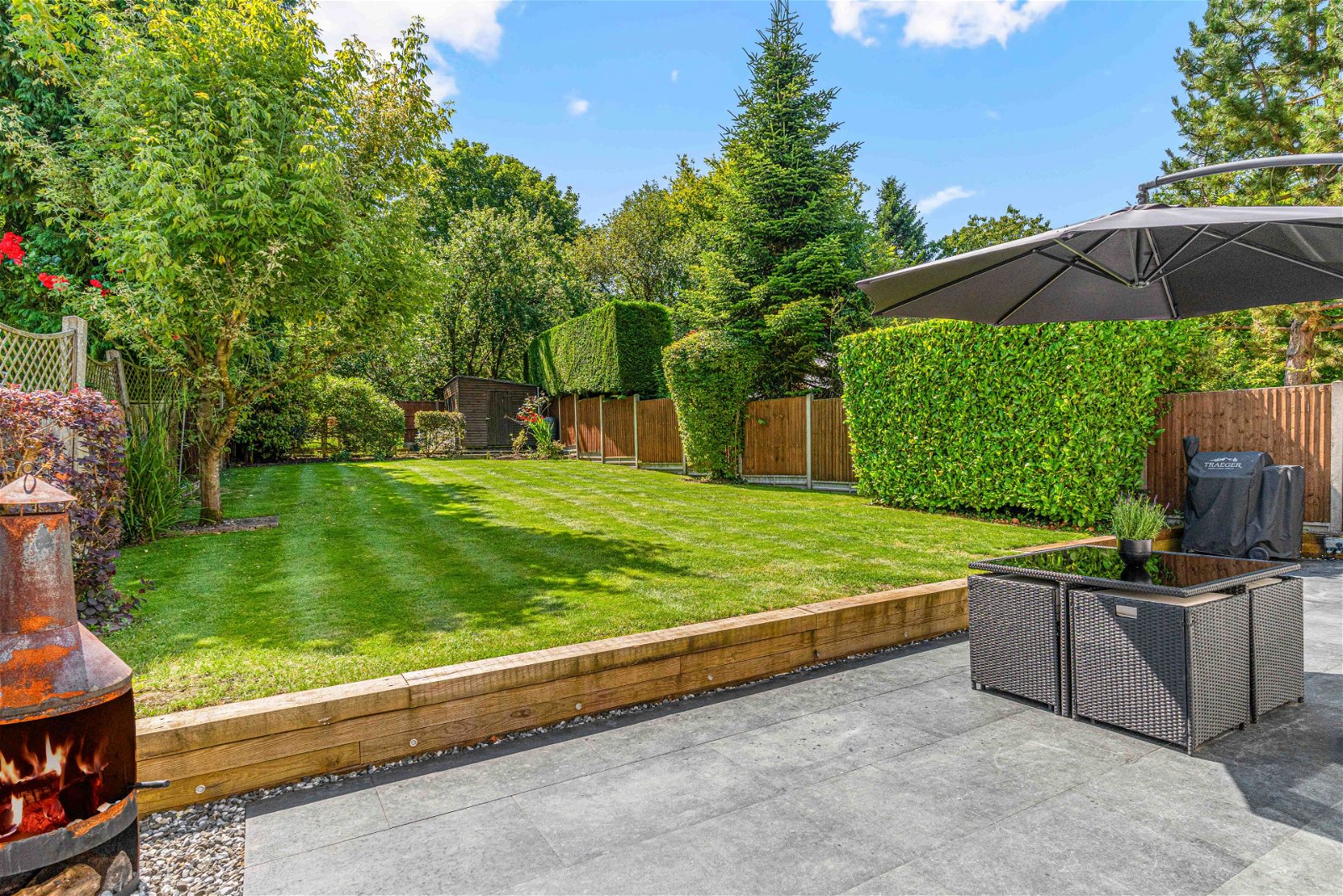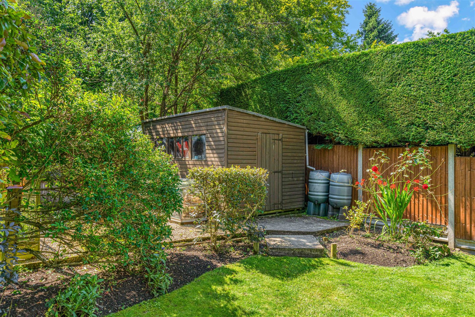 A gated sideway provides access to the good size south facing rear garden. There is a large patio across the back of the house providing a perfect place on which to entertain and beyond which the lawn extends. High hedges, mature trees and fencing provide a good degree of privacy and the lawn leads up to the foot of the garden where one finds a well screened area with garden shed, raised vegetable beds and log store.