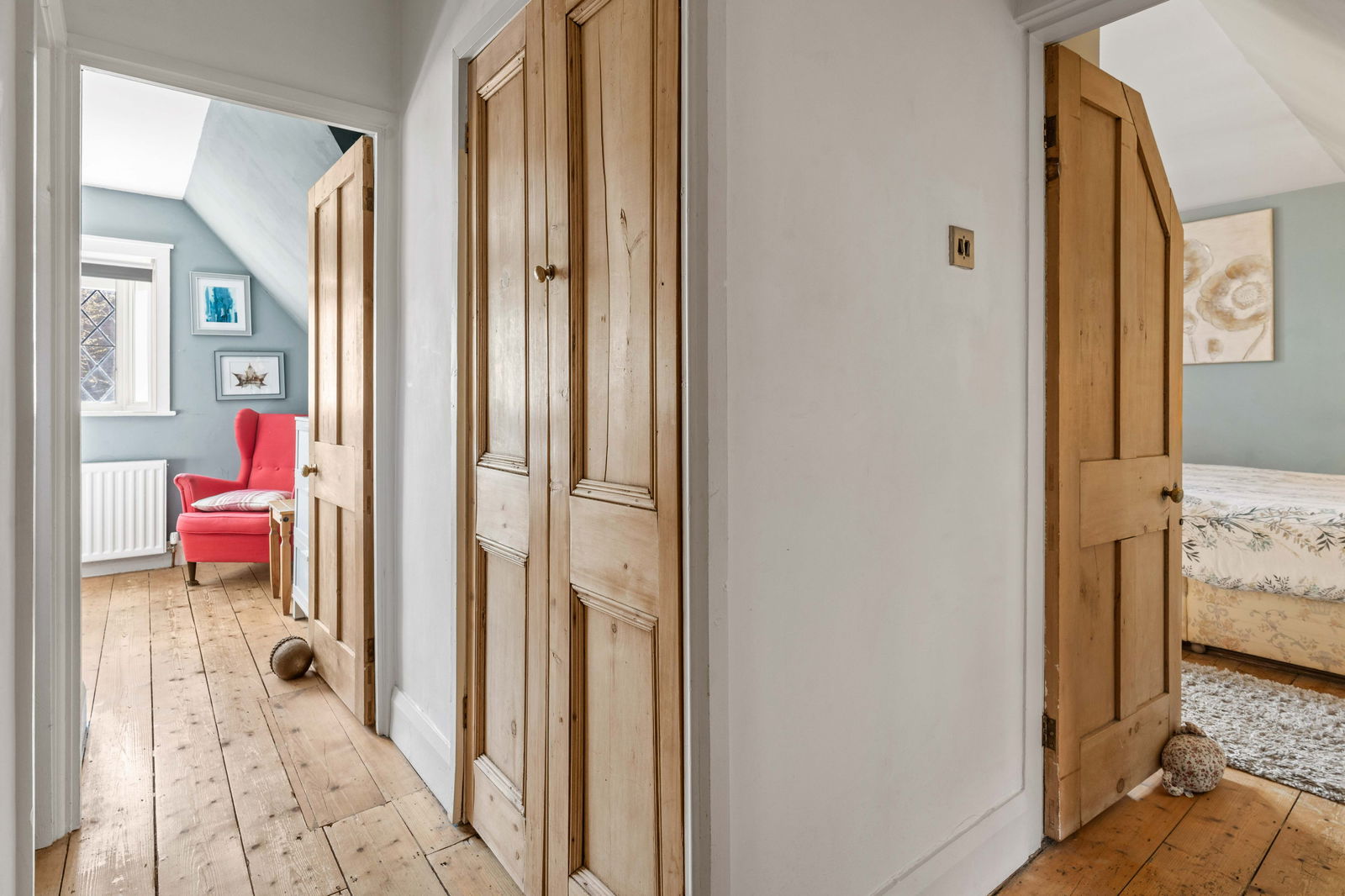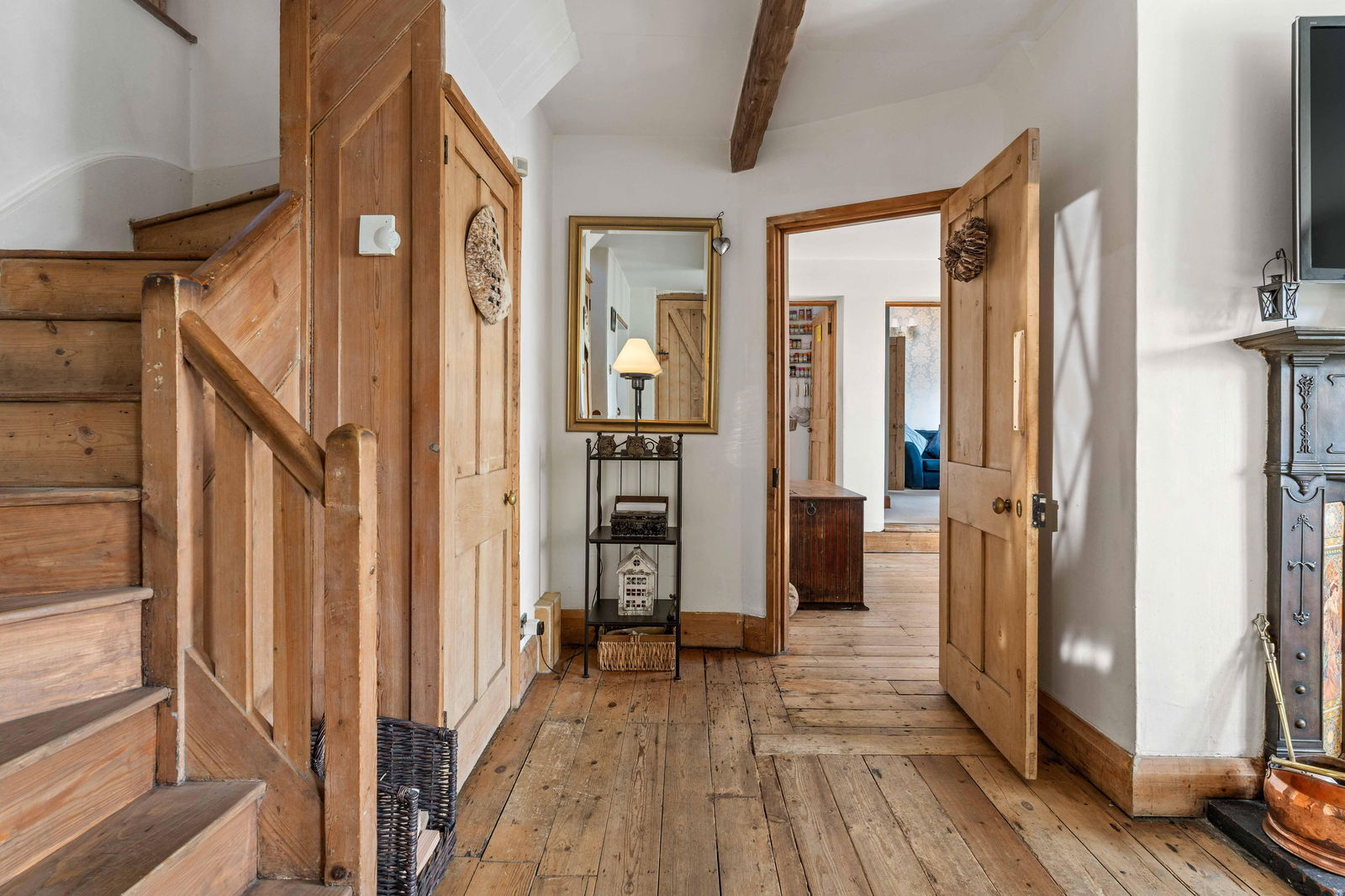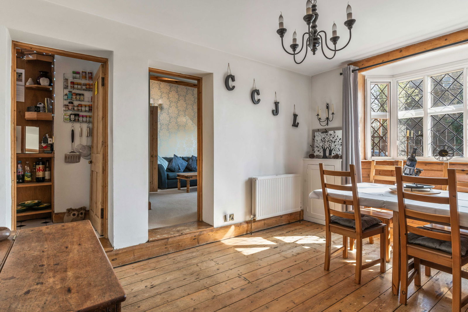 A warm and inviting welcome through the beautiful porch and solid wooden doorway leads you into this delightful character home full of charm, a few steps down take you into the living room which offers floods of natural light with feature leaded windows and ornated fireplace, stripped wooden flooring and original doors throughout. There is a wooden staircase leading up to the first floor. The dining room is a generous size and leads to the kitchen which is ideal for entertaining and compliments the living room with a leaded bay window and wooden flooring. The wooden fitted kitchen offers a central island and a great entertaining area with Velux windows and wooden exposed beams and French doors to the garden. There is a cloakroom and utility room just off the kitchen.The property has been extended to create a cosy sitting room or third bedroom with ensuite shower room. This is ideal for when guests visit or great for those working from home. On the first floor there are two generous bedrooms with high ceilings and built in wardrobes and a fourpiece bathroom with double shower and roll top bath fitting the Victorian period. There is also a study /