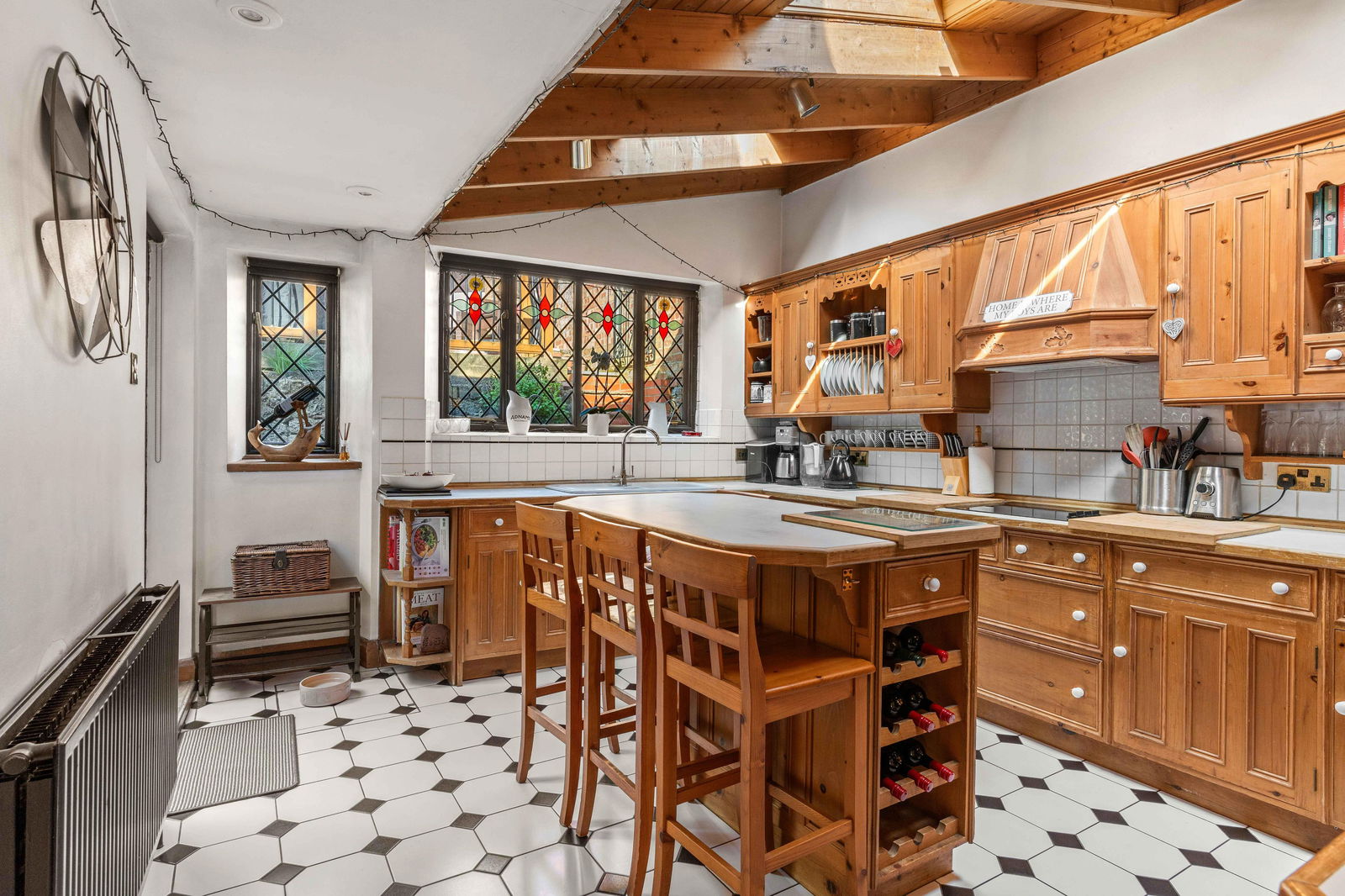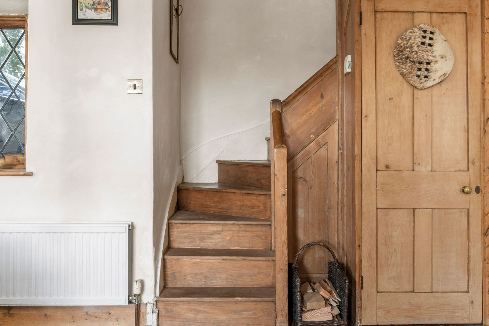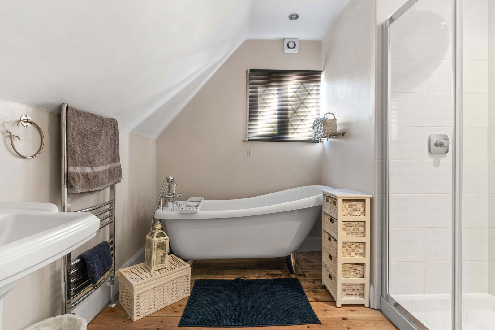 A warm and inviting welcome through the beautiful porch and solid wooden doorway leads you into this delightful character home full of charm, a few steps down take you into the living room which offers floods of natural light with feature leaded windows and ornated fireplace, stripped wooden flooring and original doors throughout. There is a wooden staircase leading up to the first floor. The dining room is a generous size and leads to the kitchen which is ideal for entertaining and compliments the living room with a leaded bay window and wooden flooring. The wooden fitted kitchen offers a central island and a great entertaining area with Velux windows and wooden exposed beams and French doors to the garden. There is a cloakroom and utility room just off the kitchen.The property has been extended to create a cosy sitting room or third bedroom with ensuite shower room. This is ideal for when guests visit or great for those working from home. On the first floor there are two generous bedrooms with high ceilings and built in wardrobes and a fourpiece bathroom with double shower and roll top bath fitting the Victorian period. There is also a study /