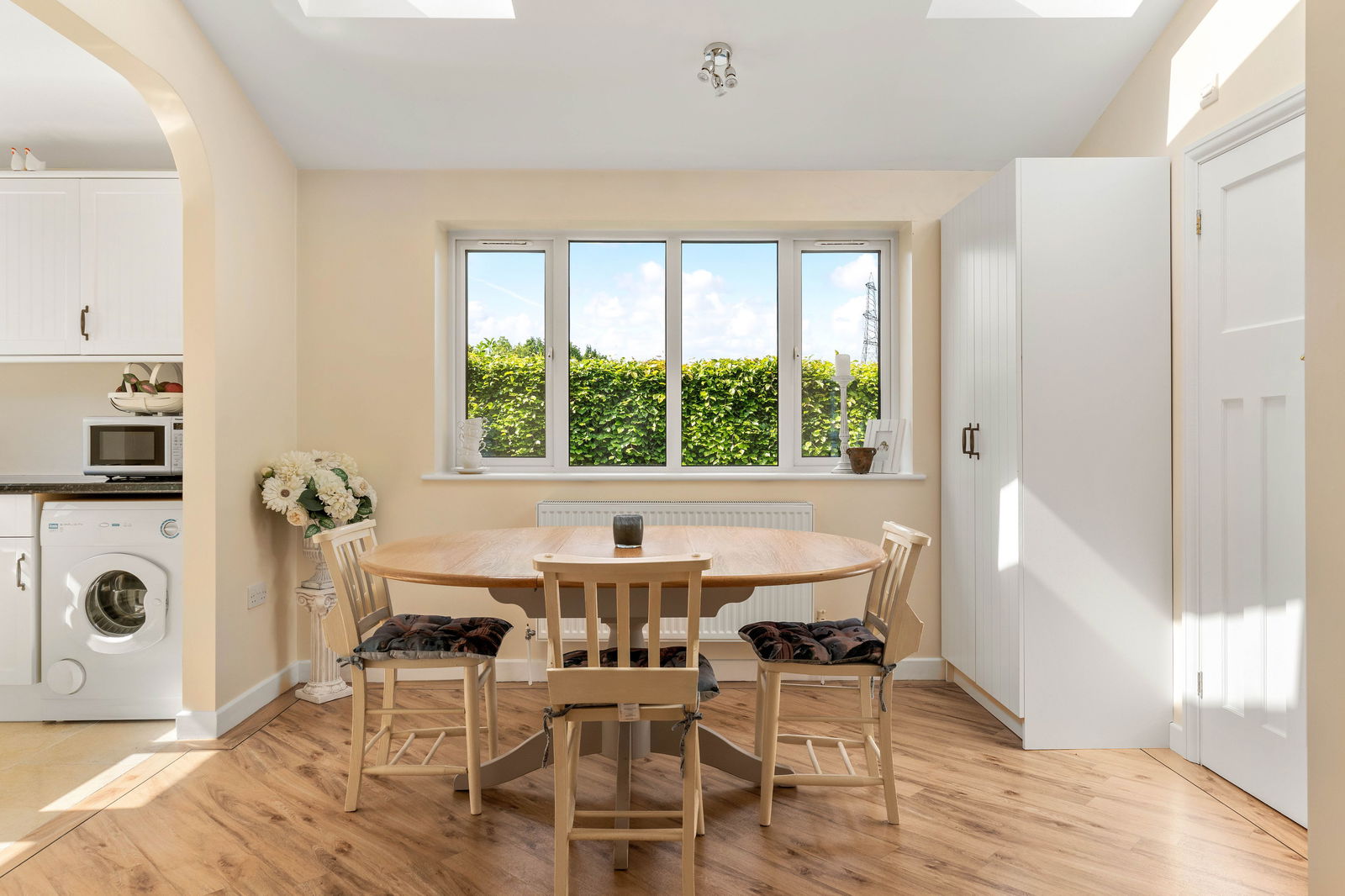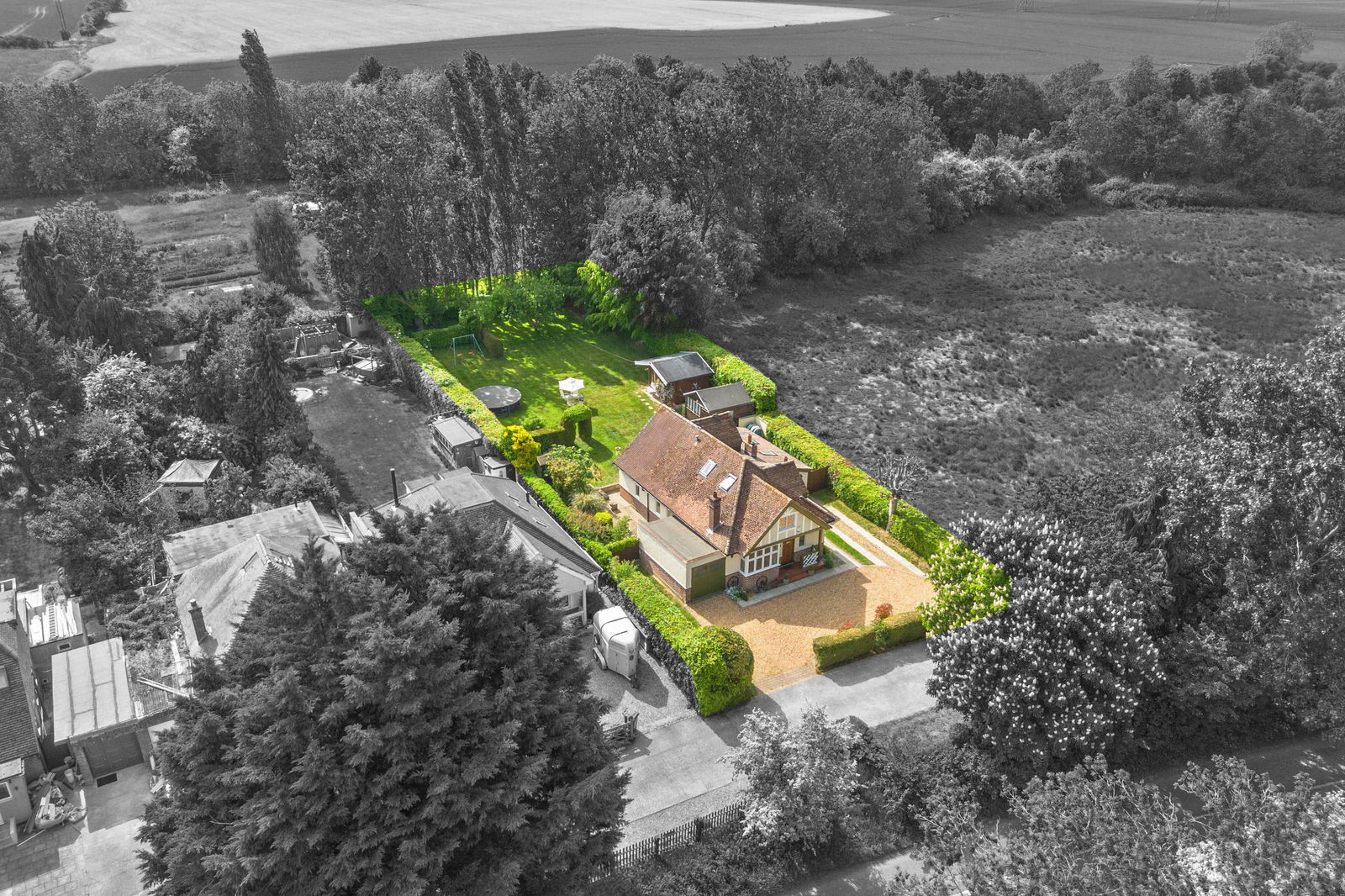 Approached off Parkside into a private driveway with parking for several cars and leading to the garage at the side of the house. The front garden is enclosed by mature hedges and shrubs. The rear garden is a particular feature of the property. It is a very good size and laid mainly to lawn and enclosed by mature hedges with shrubs and flower beds. Within the garden one finds a good size home office together with a garden shed/workshop. This is a garden that suits young growing families who are looking for space for the children to enjoy or for those that simply love a large garden that offers so much privacy.