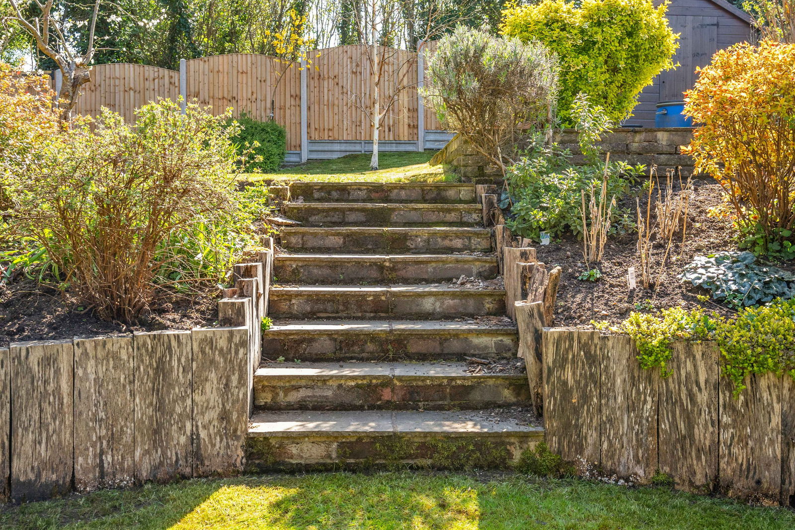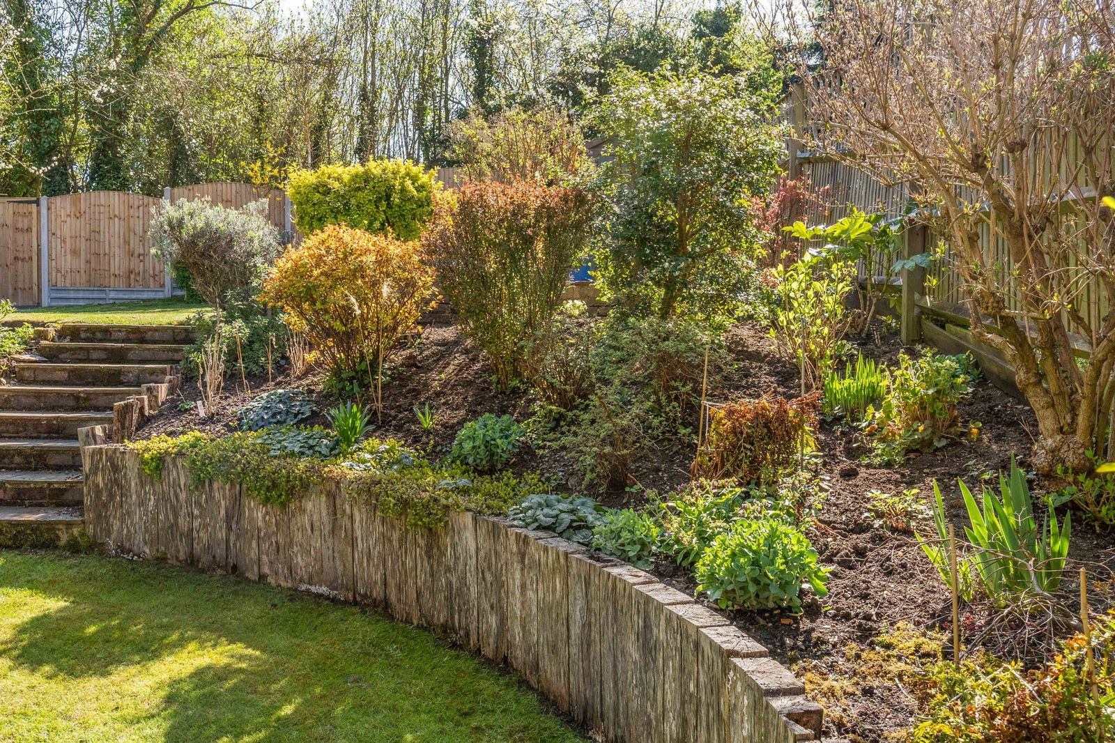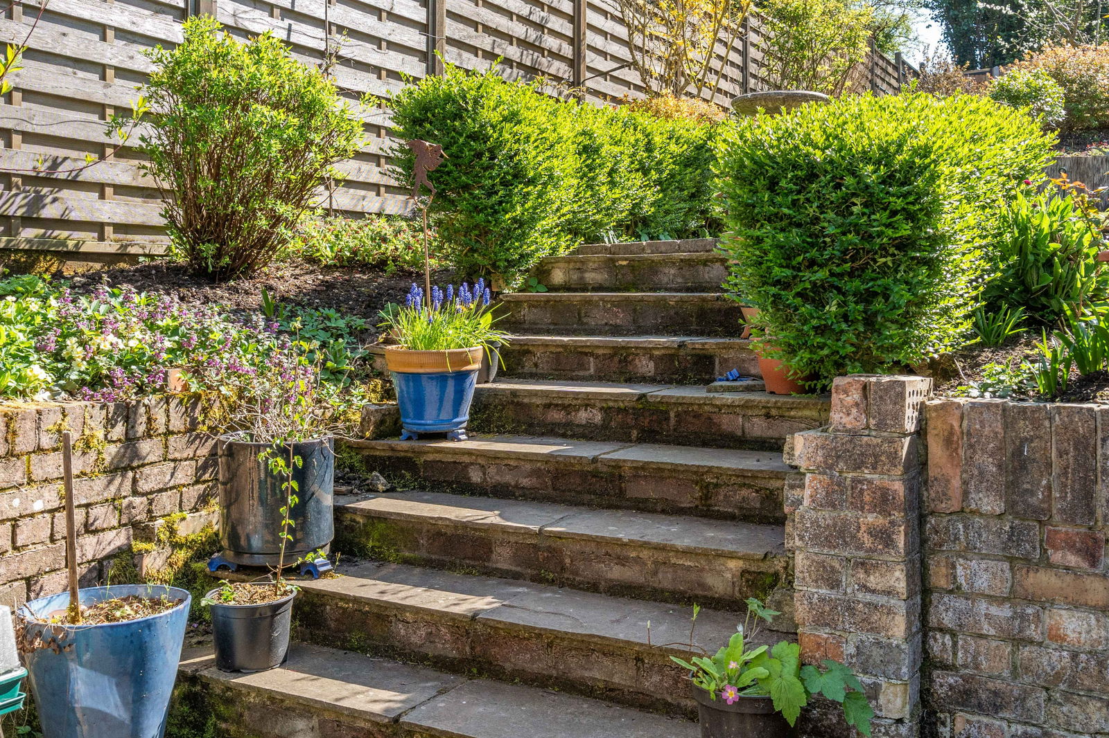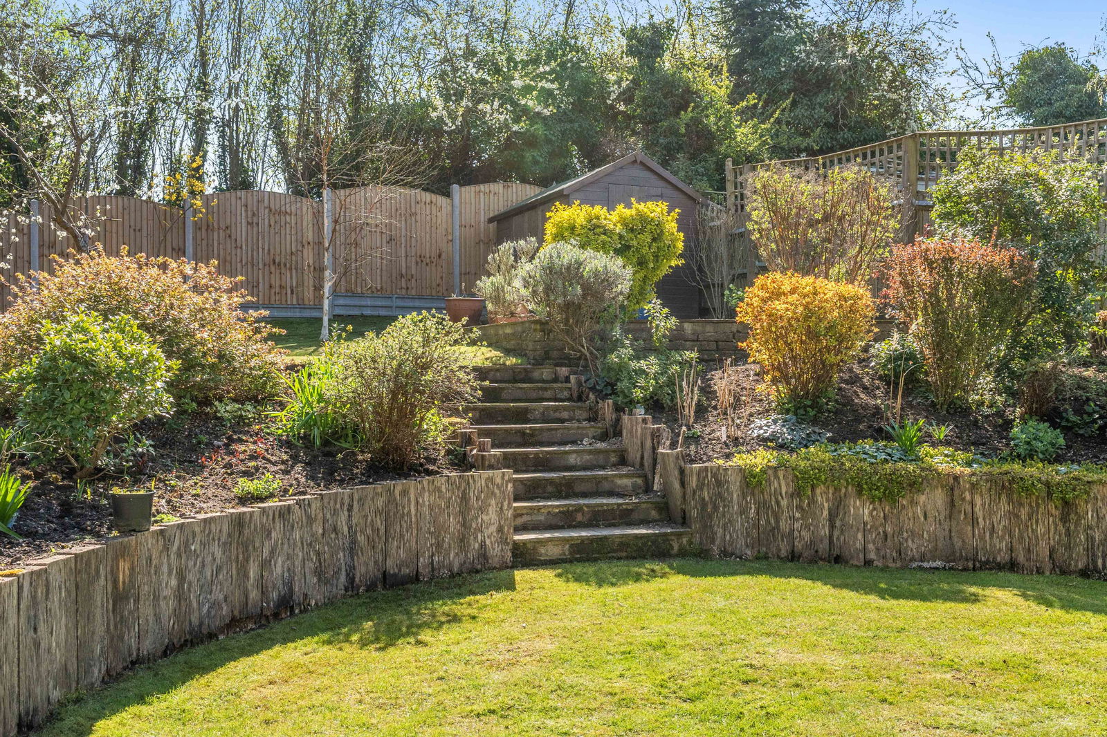 The garden has a side gate with access to a patio area with raised beds and steps leading up to a well landscaped garden set over various levels. The garden has been well maintained and offers many beautiful flowers and shrubs with lawns and steps up to a sunny patio area to the rear.