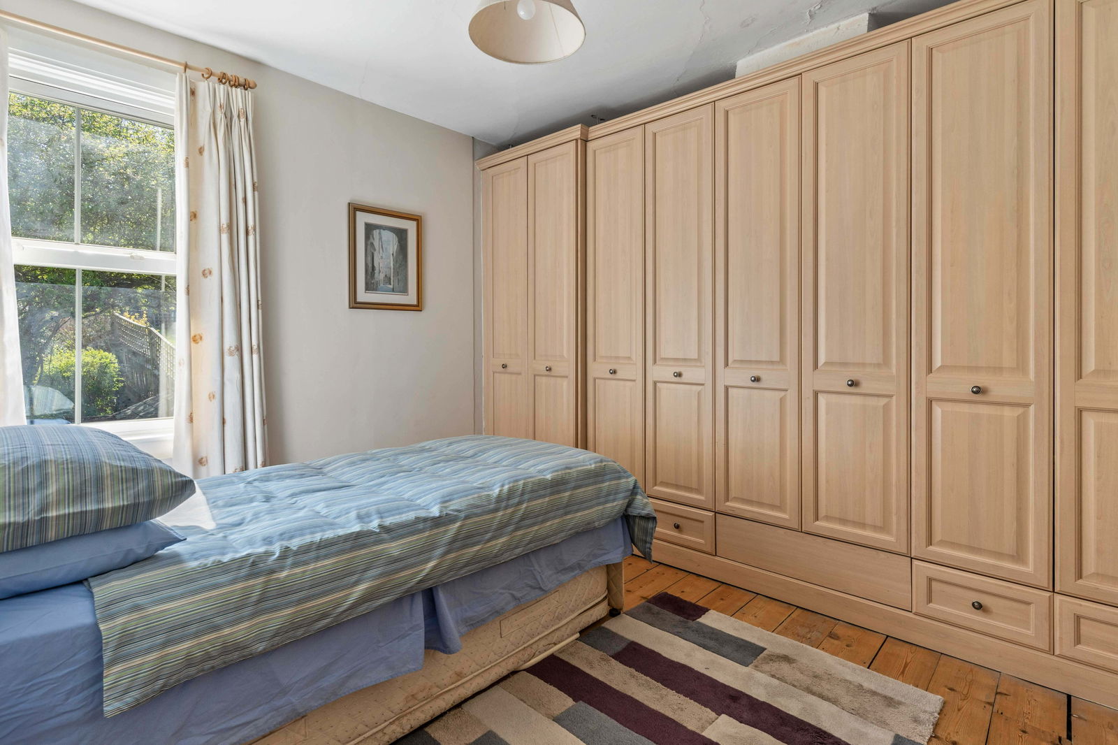 shower room, now being used as a utility and cloakroom with doorway to the garden. There is a study and garage just off the breakfast room, a great space to work from home or perhaps convert to a ground floor bedroom with ensuite, the garage is not currently used for a car and steps have been added to the front but could be easily removed if needed to have full function of the garage. On the first floor the master bedroom offers an ornate cast Iron fireplace and fourpiece ensuite bathroom. There is a double bedroom and single bedroom overlooking the rear garden and a family bathroom.