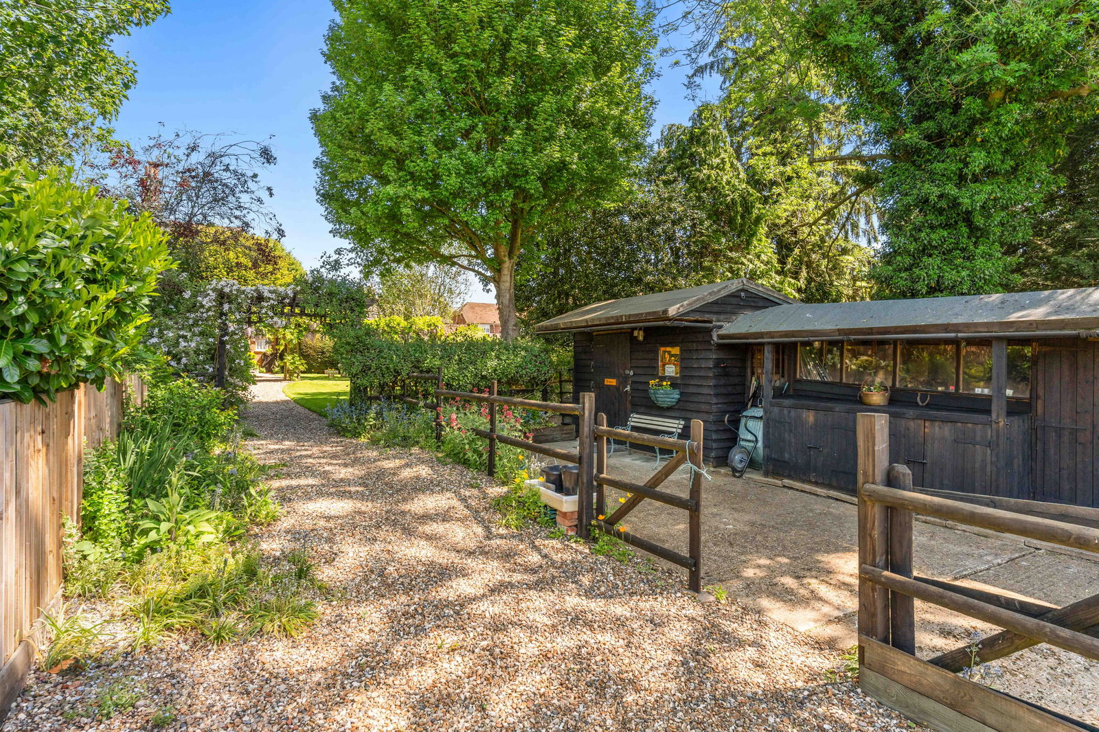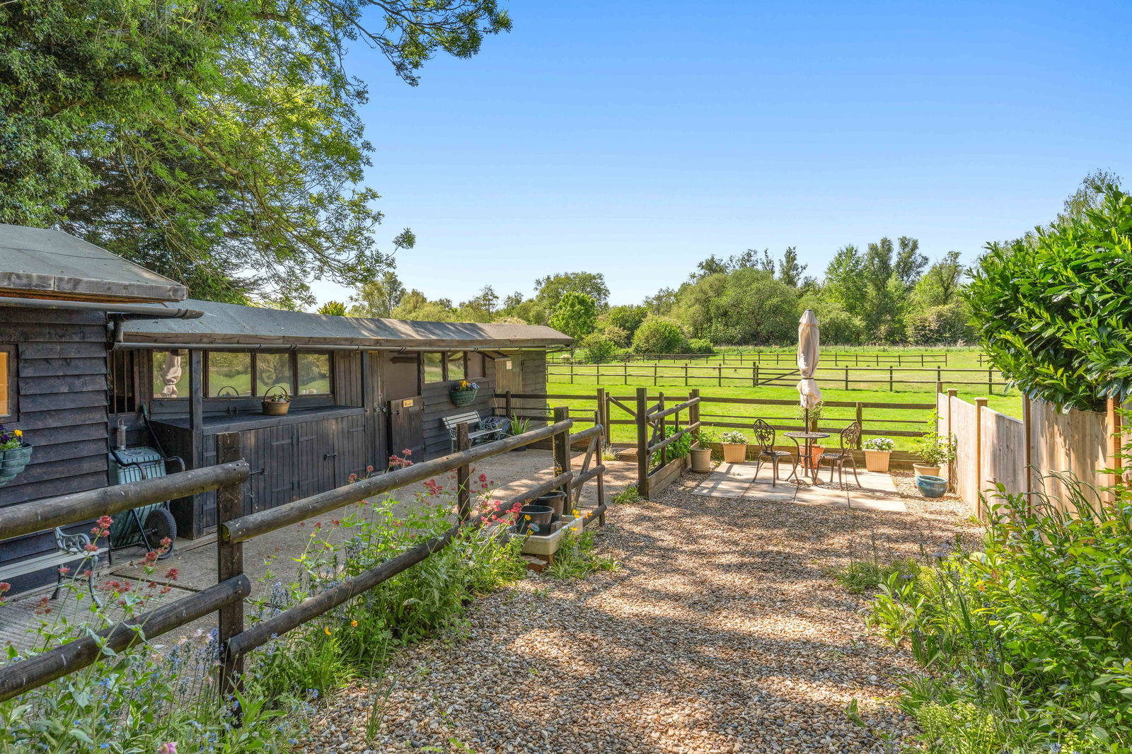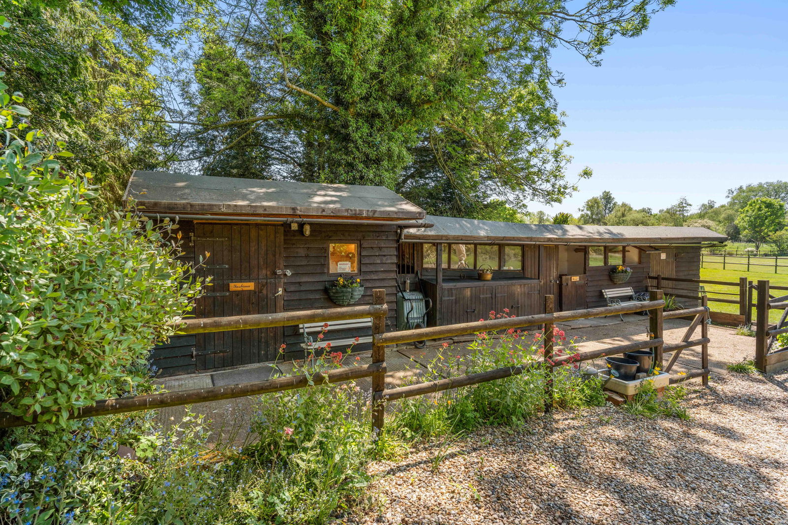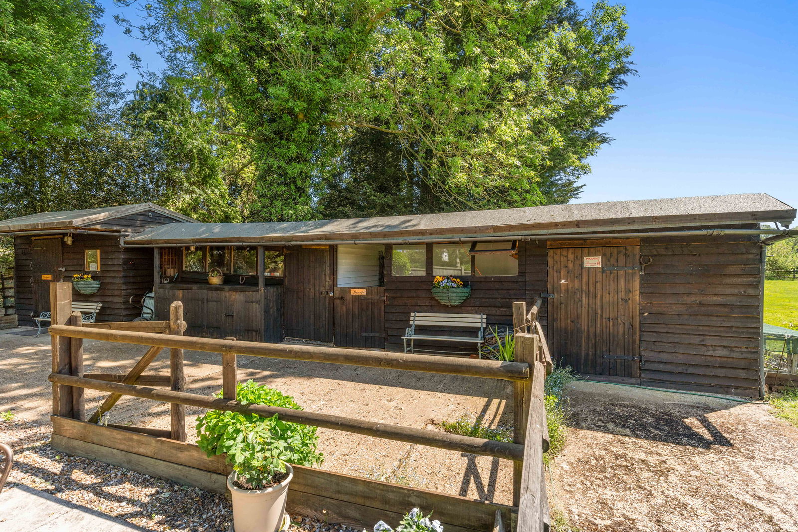 The owners once had horses and ponies so purchased the land to the rear of the property which is just over an acre of paddock and set within post and rail fencing. There are a range of timber outbuildings and stables, with two loose boxes, tack room and hay store/field shelter. These days the outbuildings are used for storage purposes and a workshop. The Stables offer direct access to the paddocks for turnout and access through the garden and up the driveway you will find a quick and easy access to the bridleway where you can ride horses and ponies safely off the main roads for miles.