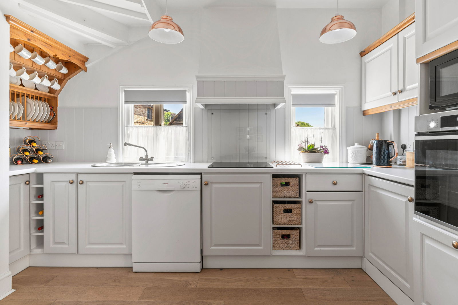 A warm and inviting welcome through the solid wooden front door into this delightful cottage, a staircase in the lobby area and doorway into the living room. The living room features a cast iron fireplace with wood surround and wooden flooring which flows through to the dining room through French doors. This really is a fabulous entertaining space as the dining room is light and airy with floods of light coming in from the garden, a beautiful place for a morning coffee to start the day. There is a feature cast iron fireplace in the dining room, with dado and picture rail and lovely wooden door leading out to the boot room and utility/ cloak room. The kitchen is well placed just off the dining room and designed to allow as much storage space as possible with a feel of being open plan, light and airy.