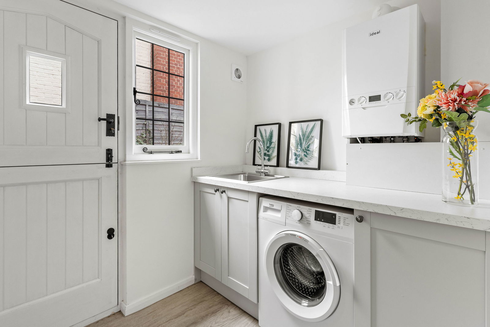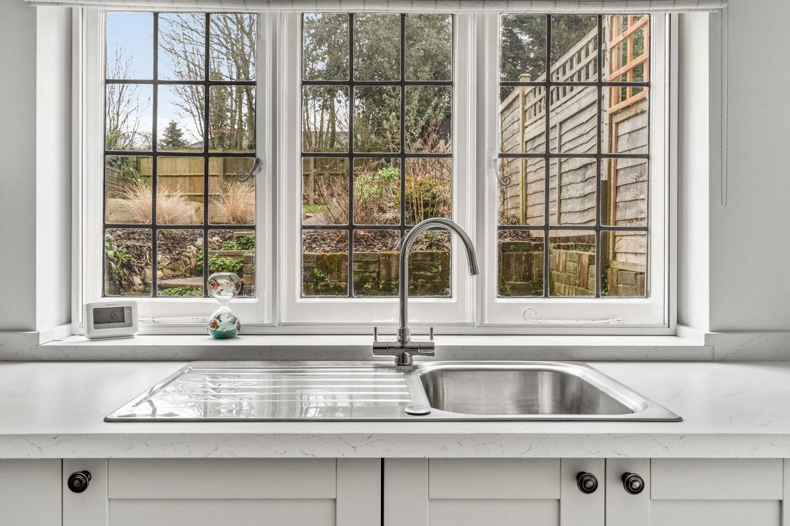Approached from the lane with steps leading up and into the pretty front garden which is paved and well screened by a mature hedge this really is a lovely part of the garden to sit and while away the day. The rear garden has been thoughtfully designed, landscaped and planted and is a fantastic size to accommodate plenty of people . The lawn is bordered by flower beds and shrubs with the added benefit of a well thought out patio area, perfect for entertaining on