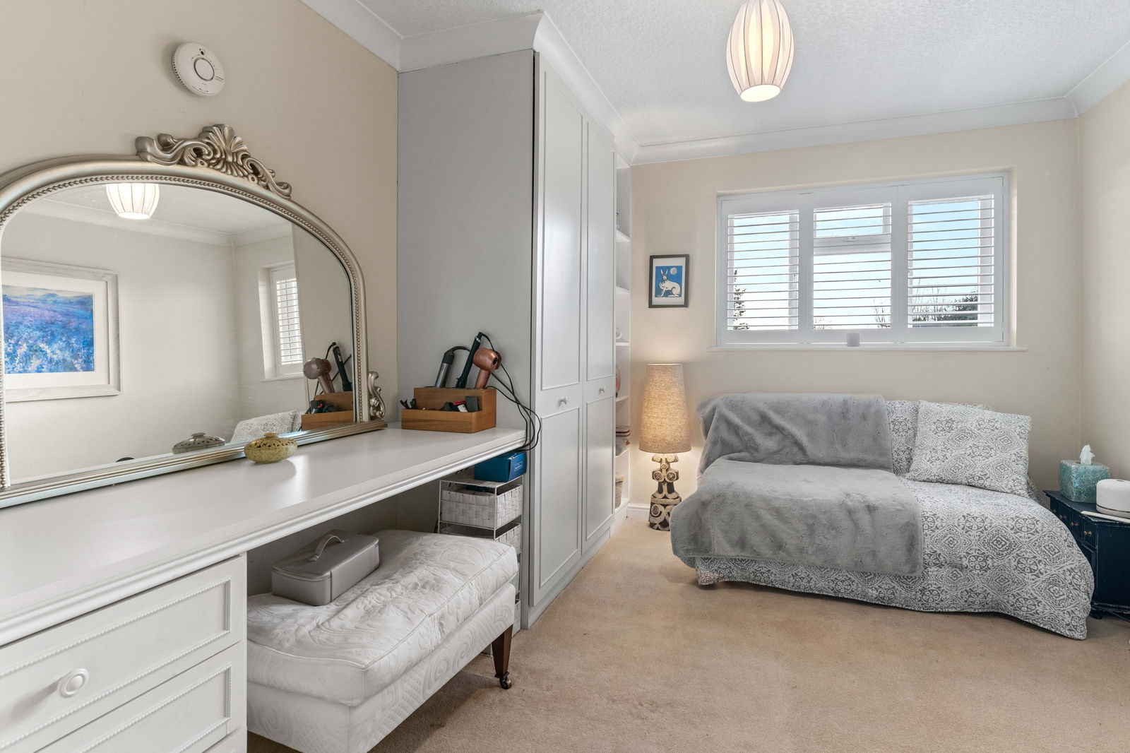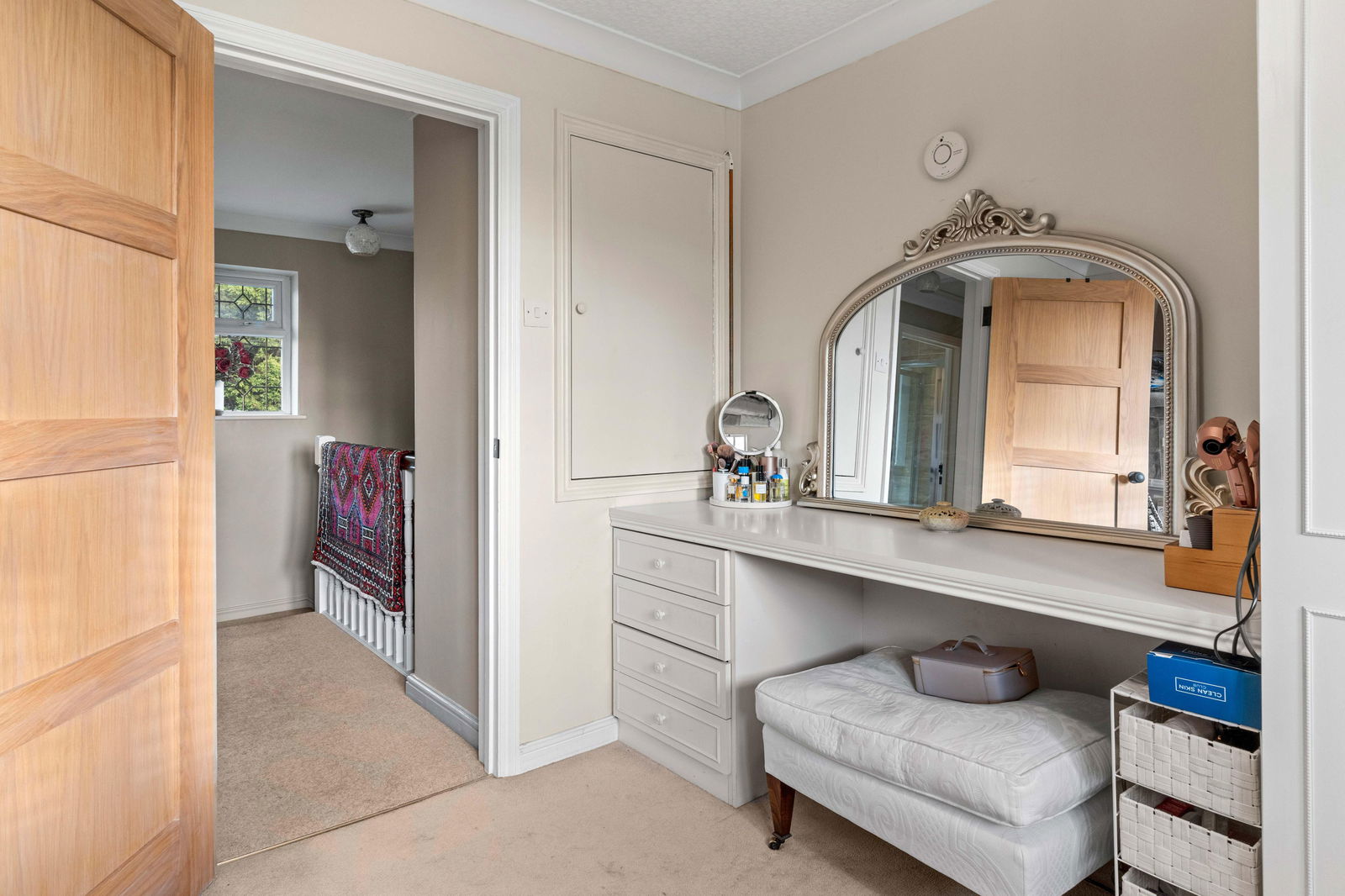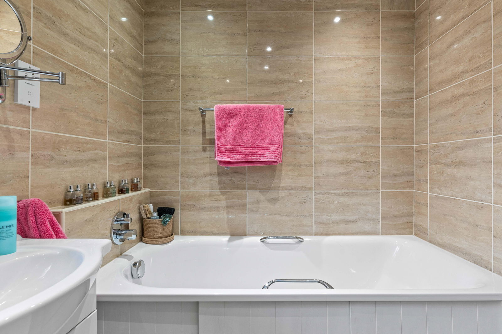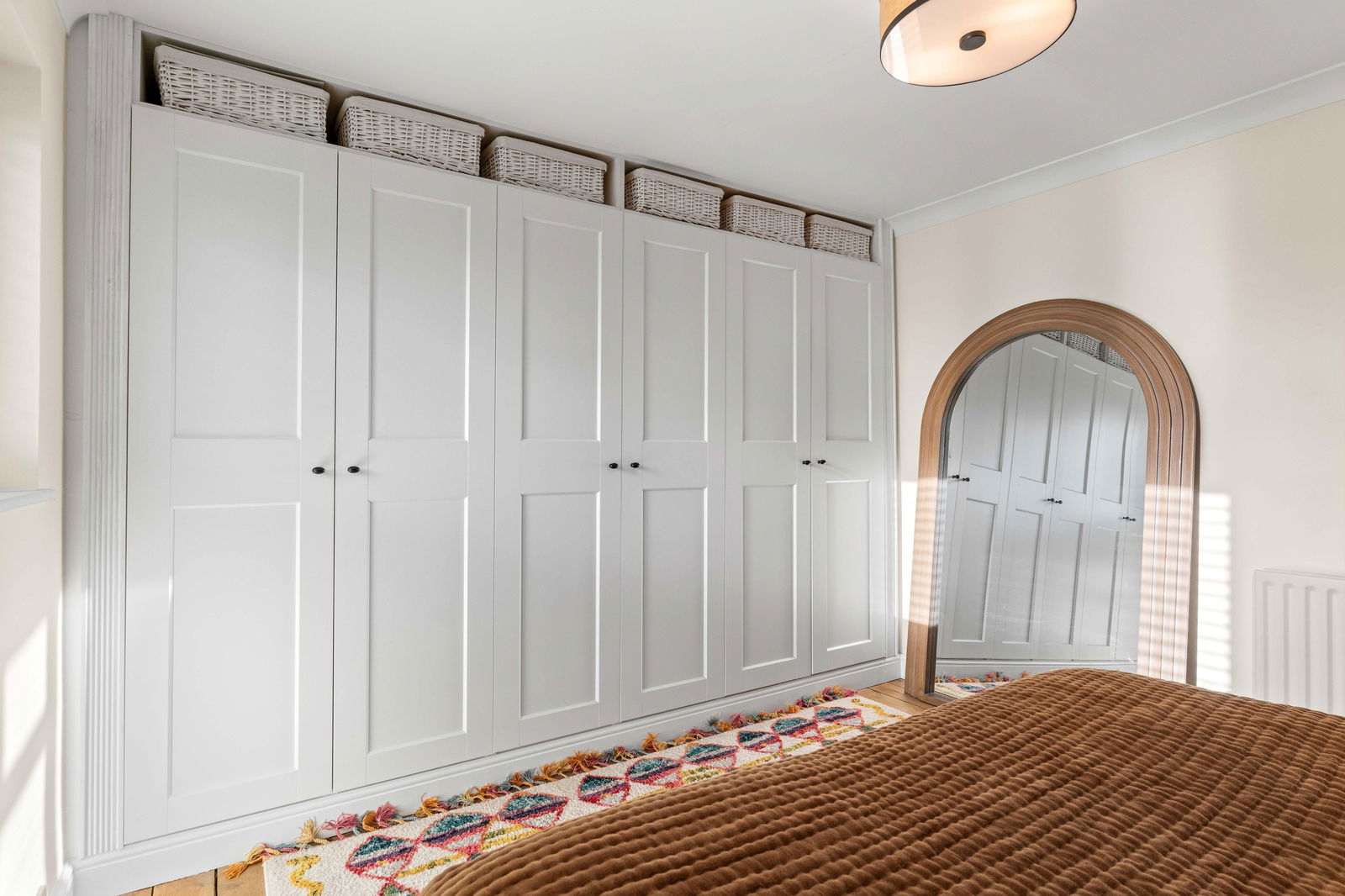 Moving upstairs, the first bedroom is carpeted, has a fitted dressing table and wardrobe with shelving and room for a double bed. The master bedroom also has bespoke fitted wardrobes giving you all the storage you need and, with the treated wooden floorboards, this room feels spacious and uncluttered. The third bedroom has been converted into a study with a beautiful bespoke shelving unit covering one wall. This room could still be reverted into a single bedroom with plenty of storage! The family bathroom sits perfectly between all three bedrooms, and offers a bath and separate shower. Outside on the landing there is access to the loft via a traditional hatch and loft ladder. This room has been boarded, carpeted, has electricity, lighting and heating so could easily be used as a den, or additional workspace. With the addition of dormer windows to give head height, this space also has the potential to be a fourth bedroom (subject to planning consent). All of the bedrooms at the rear of the property share views of distant London and, at night, the landscape is lit with the city lights, most prominent being The Shard.