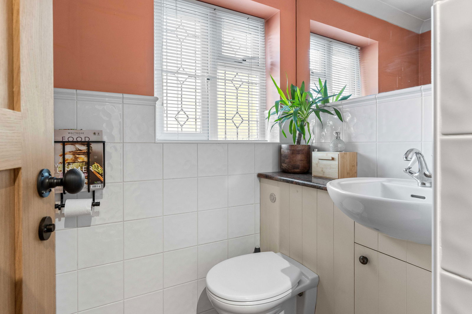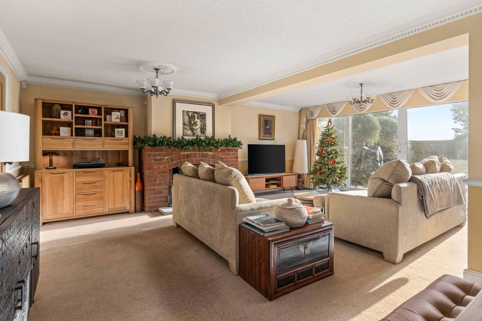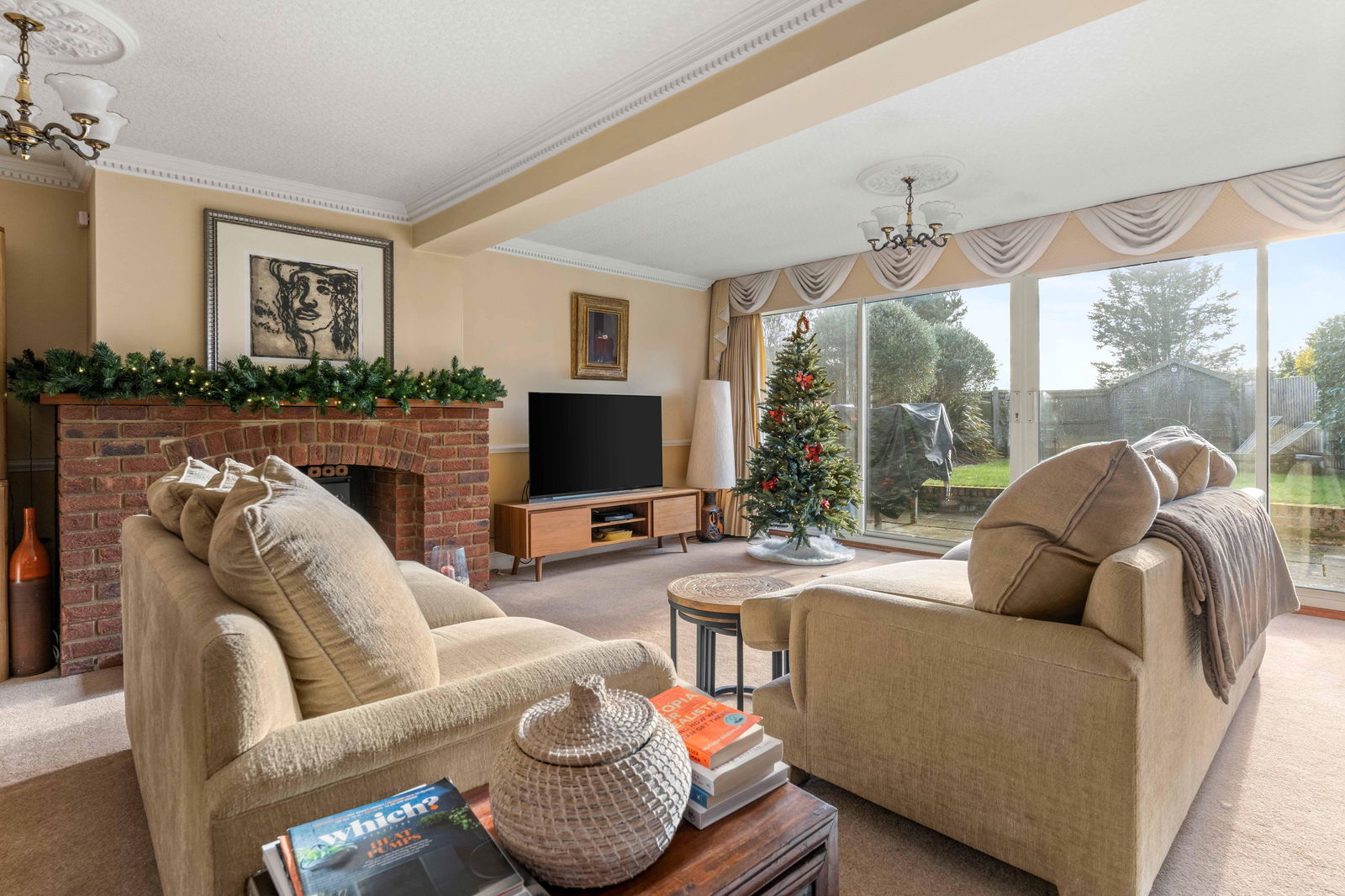You are welcomed into a spacious hallway with room to hang coats and store shoes. The stained glass in the front door allows light to flood in. Moving through you find the kitchen on your right which looks out onto the driveway. This kitchen has everything you need and more! A full height larder cupboard, a drawer that stores a fold away ironing board and a double bin cupboard, it also offers display cabinets and under counter storage making the most of every inch! There is a fitted oven and grill, with gas hob as well as space for a dishwasher and full height fridge. On the back wall of the kitchen there is a breakfast bar which gives you handy day to day seating and a wall of fitted cupboards, which are a mix of open shelves and glass fronted display cabinets. Leading off from the kitchen you will find a utility room that has space for a full height freezer, a washing machine, tumble dryer and more storage. There is a downstairs cloakroom here too, and the backdoor gives access to the side of the house.