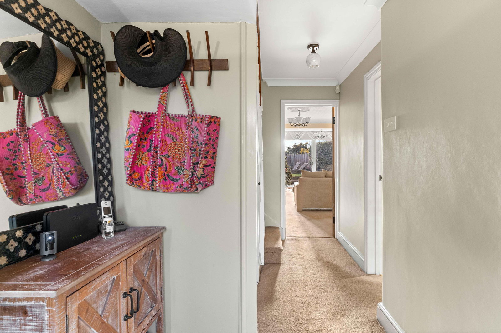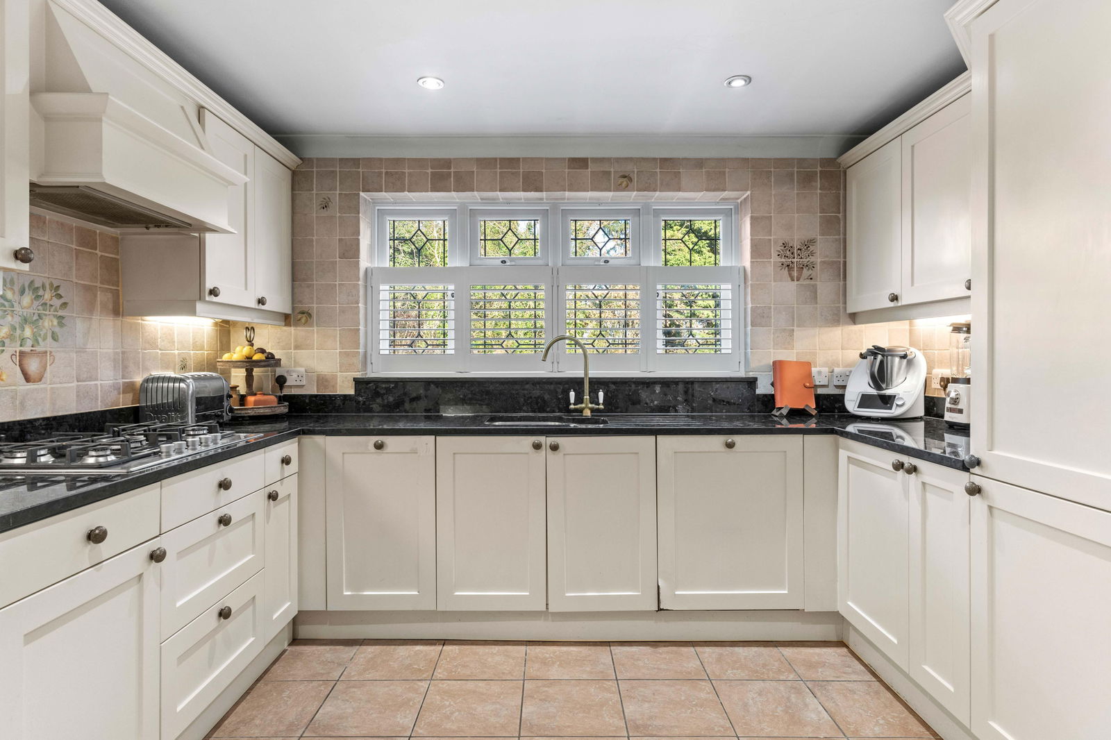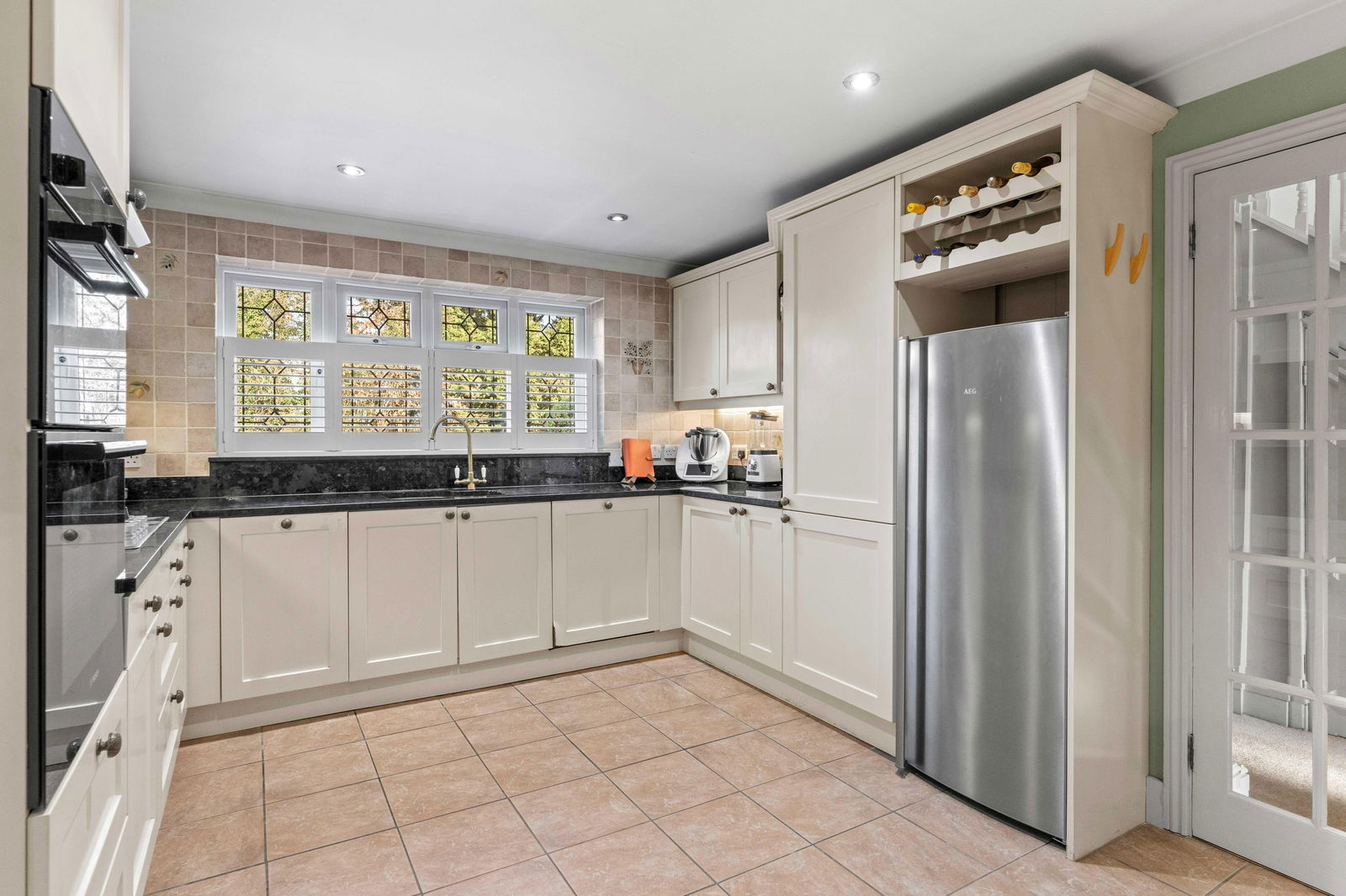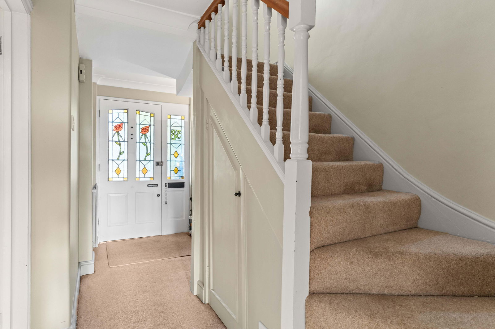 You are welcomed into a spacious hallway with room to hang coats and store shoes. The stained glass in the front door allows light to flood in. Moving through you find the kitchen on your right which looks out onto the driveway. This kitchen has everything you need and more! A full height larder cupboard, a drawer that stores a fold away ironing board and a double bin cupboard, it also offers display cabinets and under counter storage making the most of every inch! There is a fitted oven and grill, with gas hob as well as space for a dishwasher and full height fridge. On the back wall of the kitchen there is a breakfast bar which gives you handy day to day seating and a wall of fitted cupboards, which are a mix of open shelves and glass fronted display cabinets. Leading off from the kitchen you will find a utility room that has space for a full height freezer, a washing machine, tumble dryer and more storage. There is a downstairs cloakroom here too, and the backdoor gives access to the side of the house.