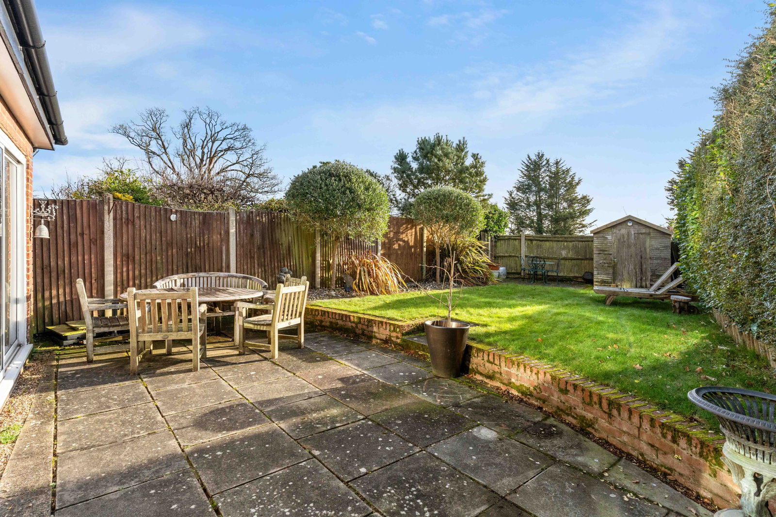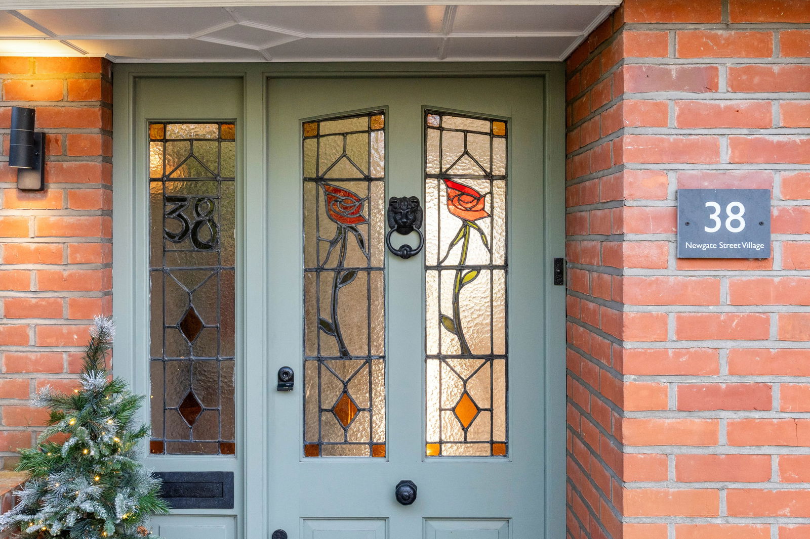 The front of this house has a smart and modern feel, with the kitchen extension also making room for a porch by the front door. The driveway for No.38 has space for at least 3 cars and has low maintenance planting at the side, and some privacy hedging at the front. There are solar lights embedded at the front and to the side of the house. There is a neat 'lean to' for undercover bin and log storage by the back door as well as hot and cold outside water taps. This area also leads to the back garden where you will find a good sized patio area and lawn. There is a garden shed, and small seating area to the rear. This is a low maintenance garden which would be considered an extra room when the large patio doors are open in the summer!