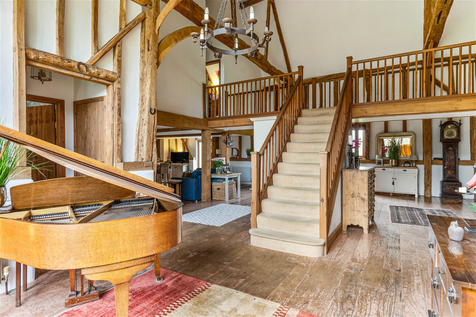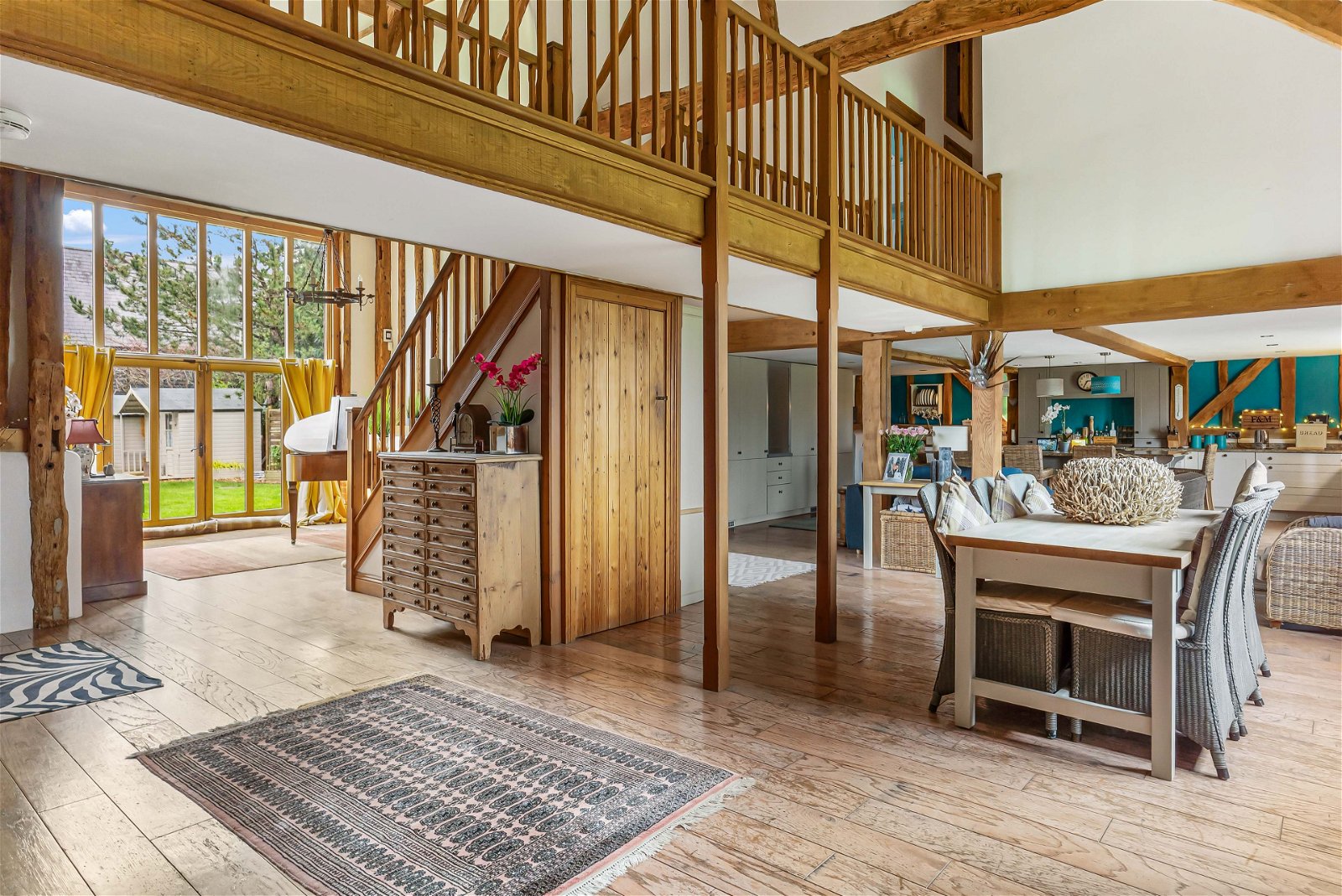 The property has been converted in an imaginative way utilising the building to its full potential with the ground floor being mainly open plan incorporating a vast living space extending to approximately 63'6 x 22'6 widening in parts to 35'0 which also incorporates the reception hall which is vaulted ceiling to the apex of the roof and includes a galleried landing. This area, whilst open plan still has clearly defined and cosy areas with a sitting room with inglenook fireplace and wood burning stove, a dining room, a separate family area and a most stylish kitchen/family room with utility room off. There is also a Study/Snug and downstairs cloakroom. To the first floor there is a long galleried landing off which are the four generous bedrooms, two of which have an en suites, and a separate family bathroom. The principal bedroom of these enjoys an en suite bathroom and the present owners have the fourth bedroom as a large dressing room as it presently adjoins this main bedroom. It can easily be separated as a fourth bedroom again if one desired.