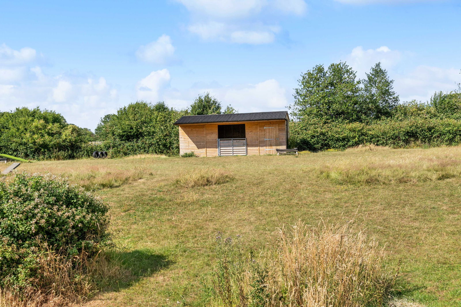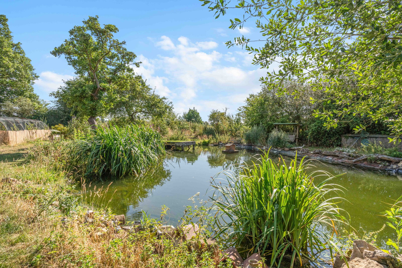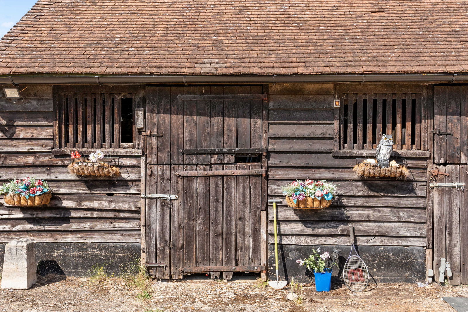 The approach to the farmhouse from the road is down a farm track shared by the farm and livery stables. Following the road around to the right, you approach Old Ramridge and are immediately struck by the traditional farmyard set up with a barn conversion and a stable conversion both making up the small community here. The gravel driveway offers plenty of space for vehicles, and there is a central stable block with one stable and storage room. The large outbuilding offers garage and workshop space and there is another brick storage shed which leads to a back gate into the garden. There is access through a five bar gate into the largest paddock, where you find a new field shelter and a small storage barn. To the left of this paddock is a wildlife pond, and a short path takes you to the lawned area at the side of the house. This generous space has been used in the past for running boot camps and there is a home gym set up in the corner laid with an astro turf workout space. Moving through to a fenced livestock paddock, there is a large natural swimming pond which is home to Koi Carp. Going back towards the rear of the property this is where you find the private, walled garden, lawn and patio which is the house’s outside entertaining space. This whole plot has potential to meet the needs for a variety of buyers. With so many potential streams of income, there is the opportunity here to become self-sufficient, running this space as a small holding and living off the land with prospects for diversification. On the other hand, this is a generous plot in a beautiful setting which could be enjoyed as a large garden with land to graze your own pony.