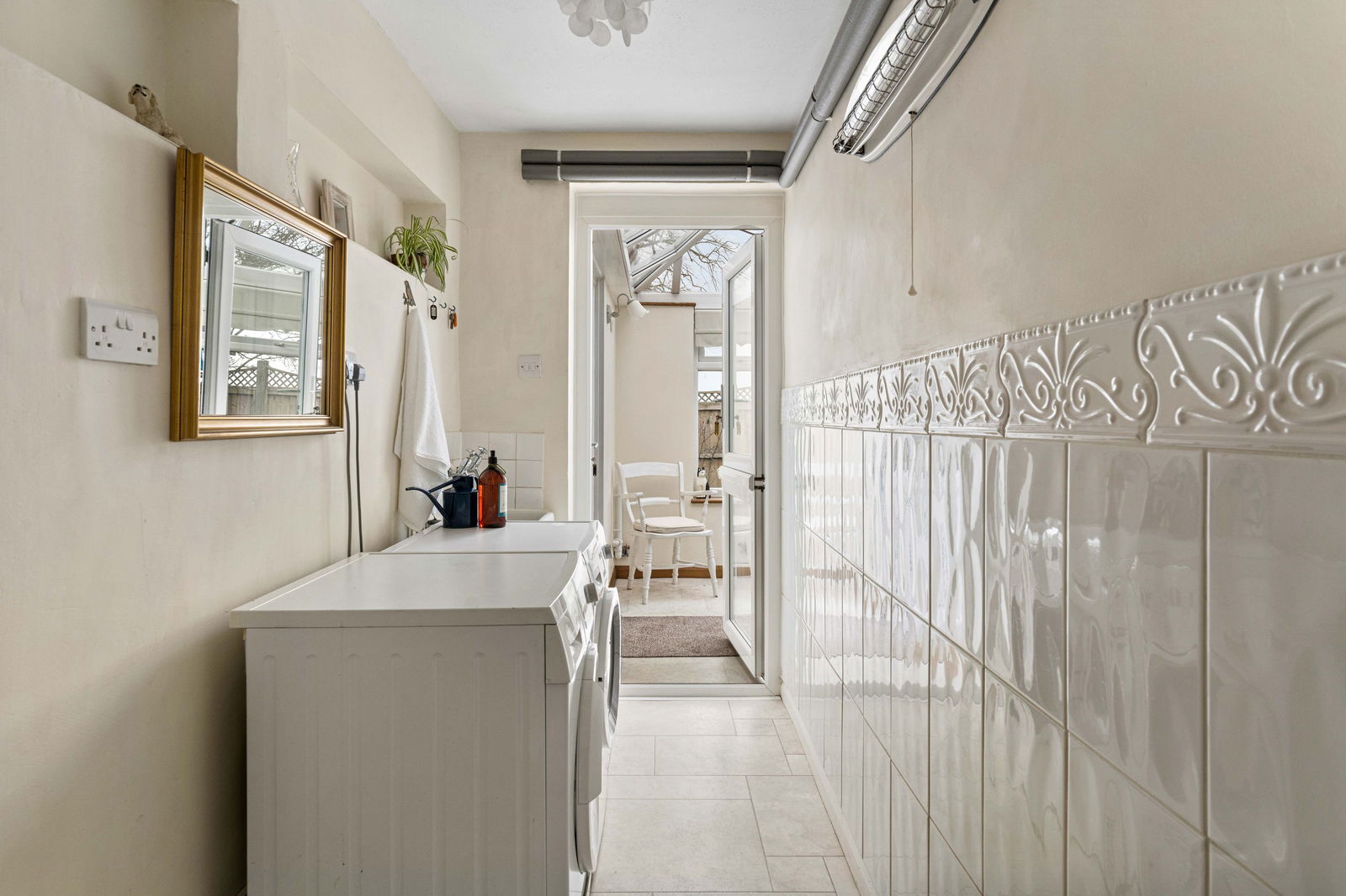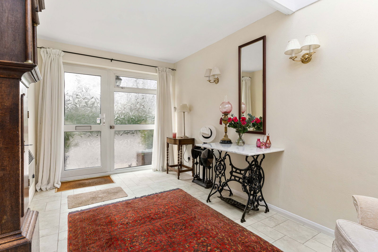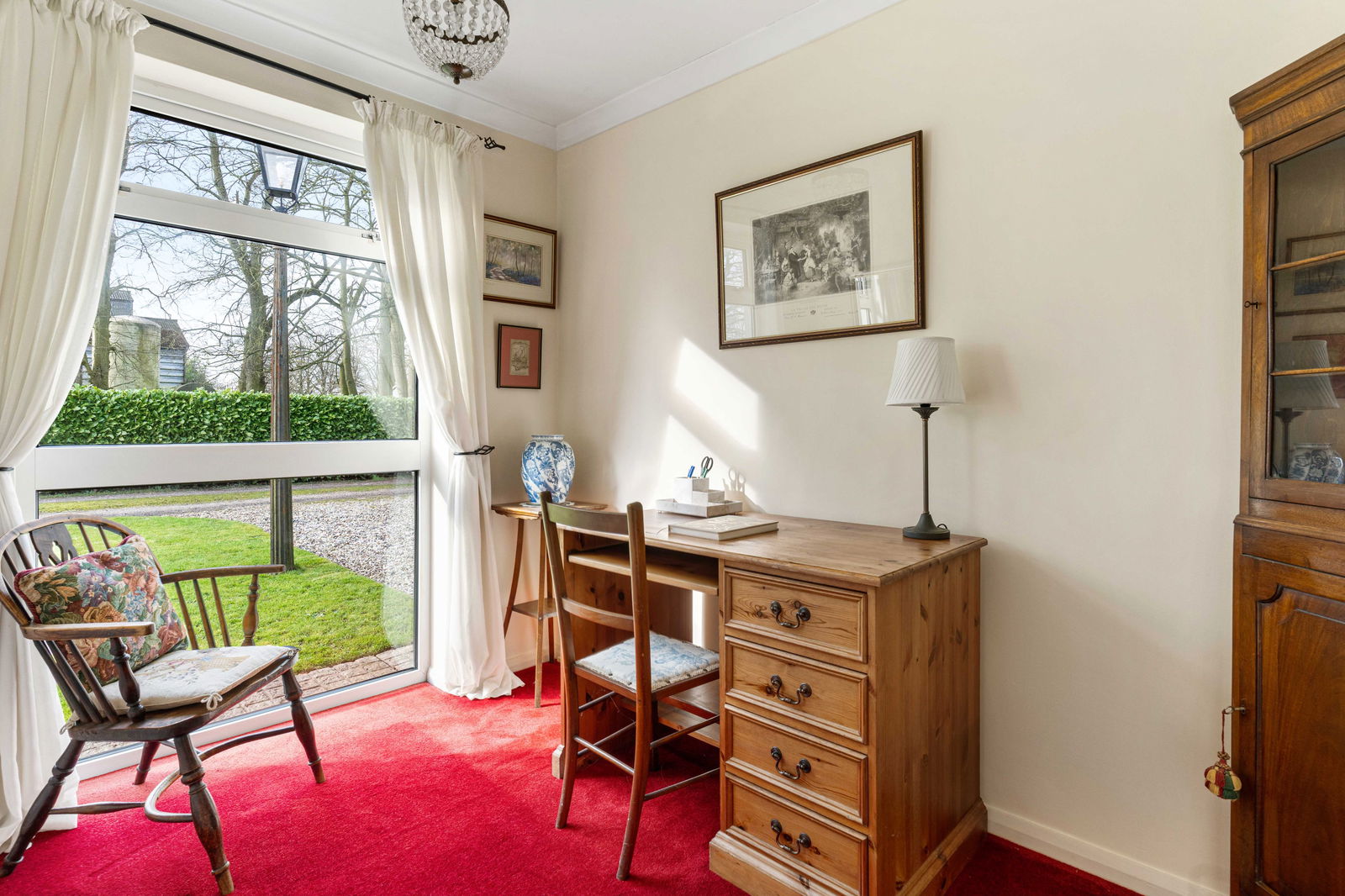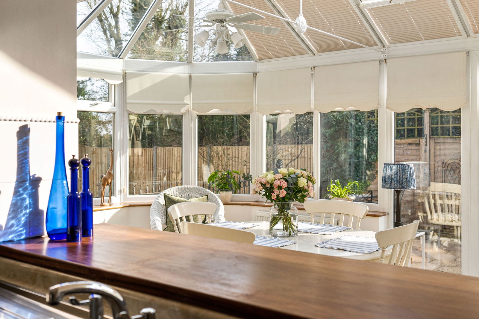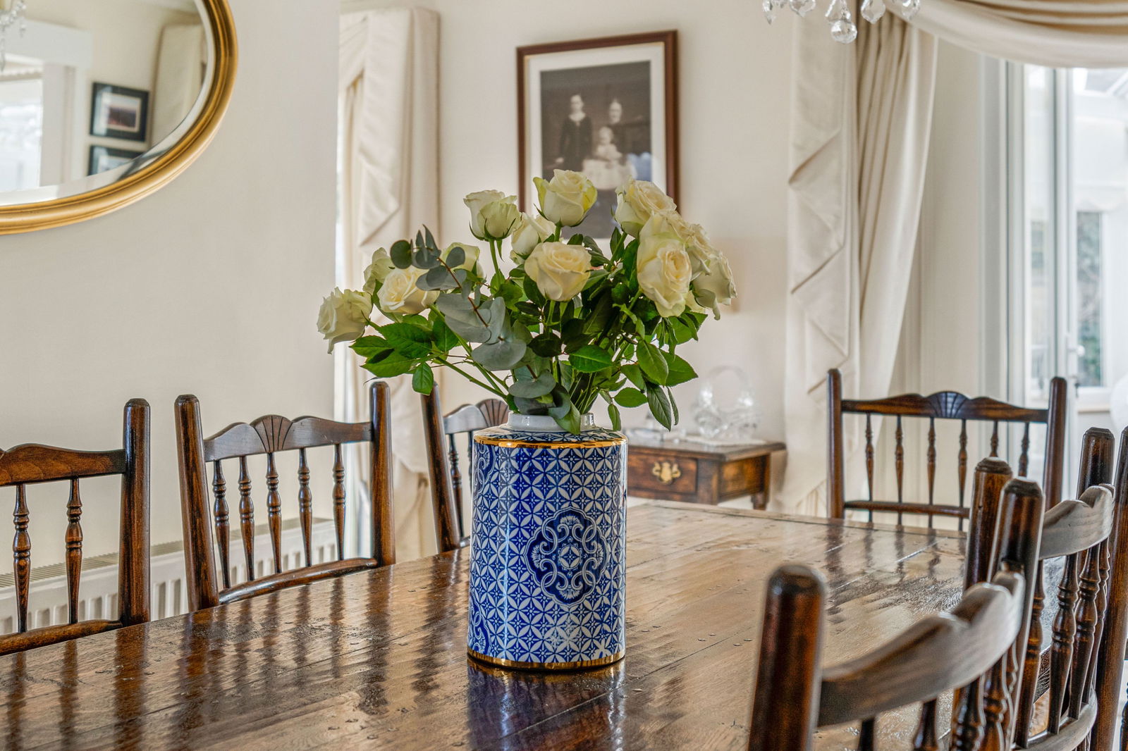 Hawthorns welcomes you with an incredibly light and spacious hallway; enough room to store everyone’s coats and shoes, the roof light is a super addition! This area leads off to the lounge, the kitchen and bedrooms. At the front of the house there are 3 rooms; a small study with a floor to ceiling window, a family bathroom with corner bath and the first of four bedrooms which is currently set up as a large study, all over-looking the front lawn and the beautiful trees opposite. The second downstairs double bedroom is at the rear of the house, with fitted wardrobes and views of the back garden, it’s a lovely sunny space. The utility area with sink, washing machine and tumble dryer leads to the back porch which has plenty of room for outdoor coats and boots. The double glazed door opens to the single garage where you find the boiler, lots of shelving for storage and space for a car. Back into the centre of the house to the the hub of the home; the kitchen. It has plenty of wall and under counter units, a built in double oven with hob and offers many possibilities to reconfigure. It has been enhanced by opening up the window to the large conservatory which is used as a dining area with comfortable seating. This conservatory is heated and very much feels part of the house, offering a fantastically versatile space to use throughout the year. It has double doors and a single door leading out to the patio and garden. Moving back into the main house, there is a formal dining area, making the most of the open plan layout, and 3 steps down takes you into the generous lounge. This large, light filled room is a natural entertaining space, with a fantastic set of patio doors overlooking the garden and views of the fields beyond. From the dining area, the open staircase leads you up onto a small landing. Overlooking the front garden, there is a double bedroom with built in wardrobes. The large family bathroom offers more views over the open fields towards Royston, and has a separate shower and bath. The largest bedroom is at the back of the house, with large windows offering views of the garden and farmland beyond.