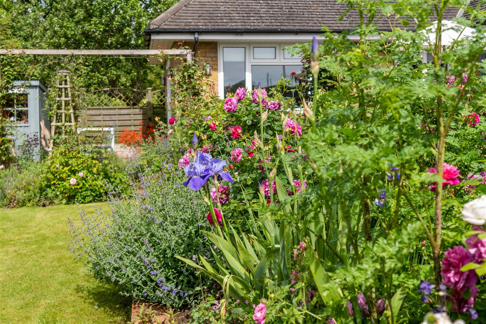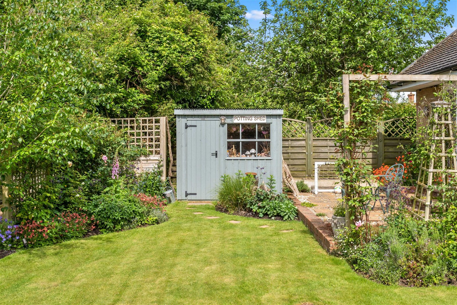 A gravelled driveway with parking for many cars, various flower beds with picket fencing a gate to side leading to rear. There is a garage with power and light and various outside lighting. The rear garden has been beautifully designed with patio area, various flower and shrub boarders and laid lawn. A wooden built out building / potting shed with power and light, lighting, and water tap.