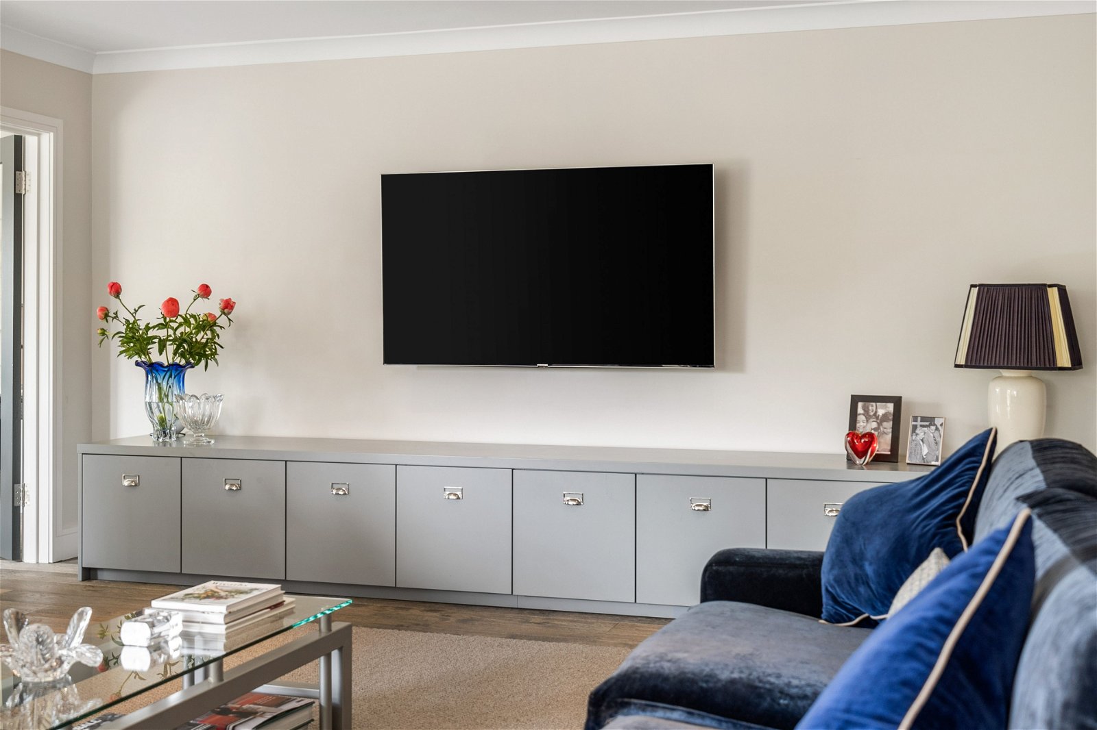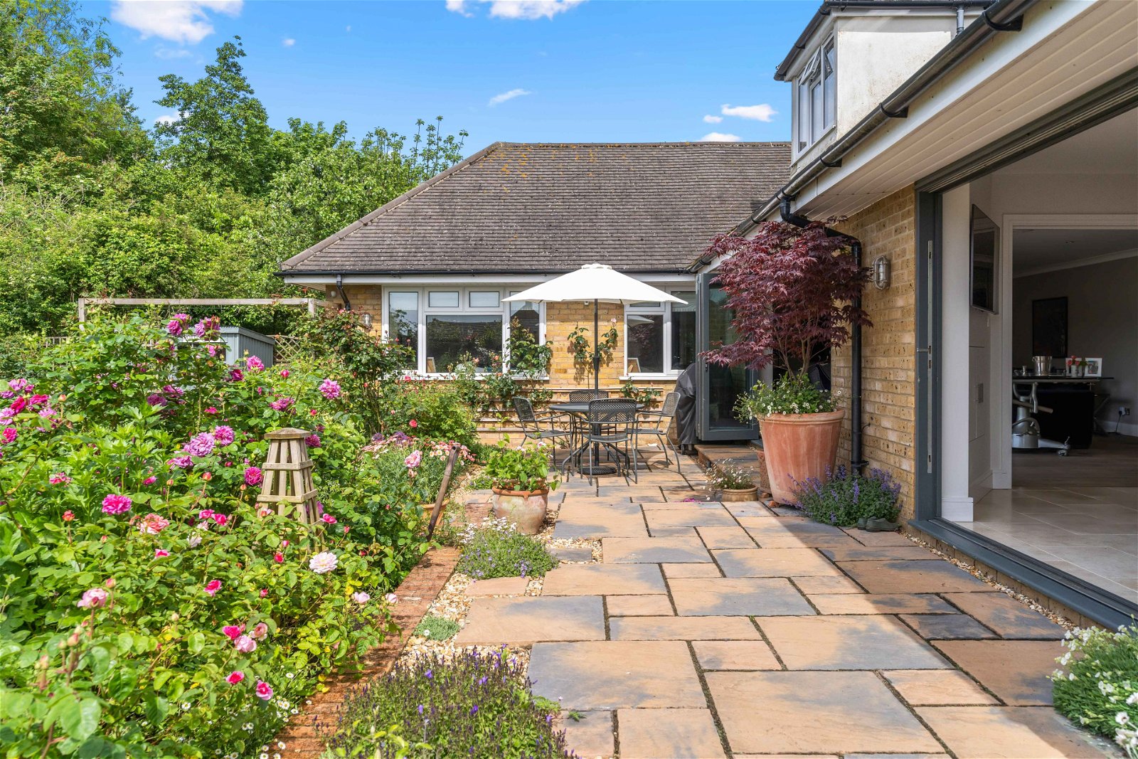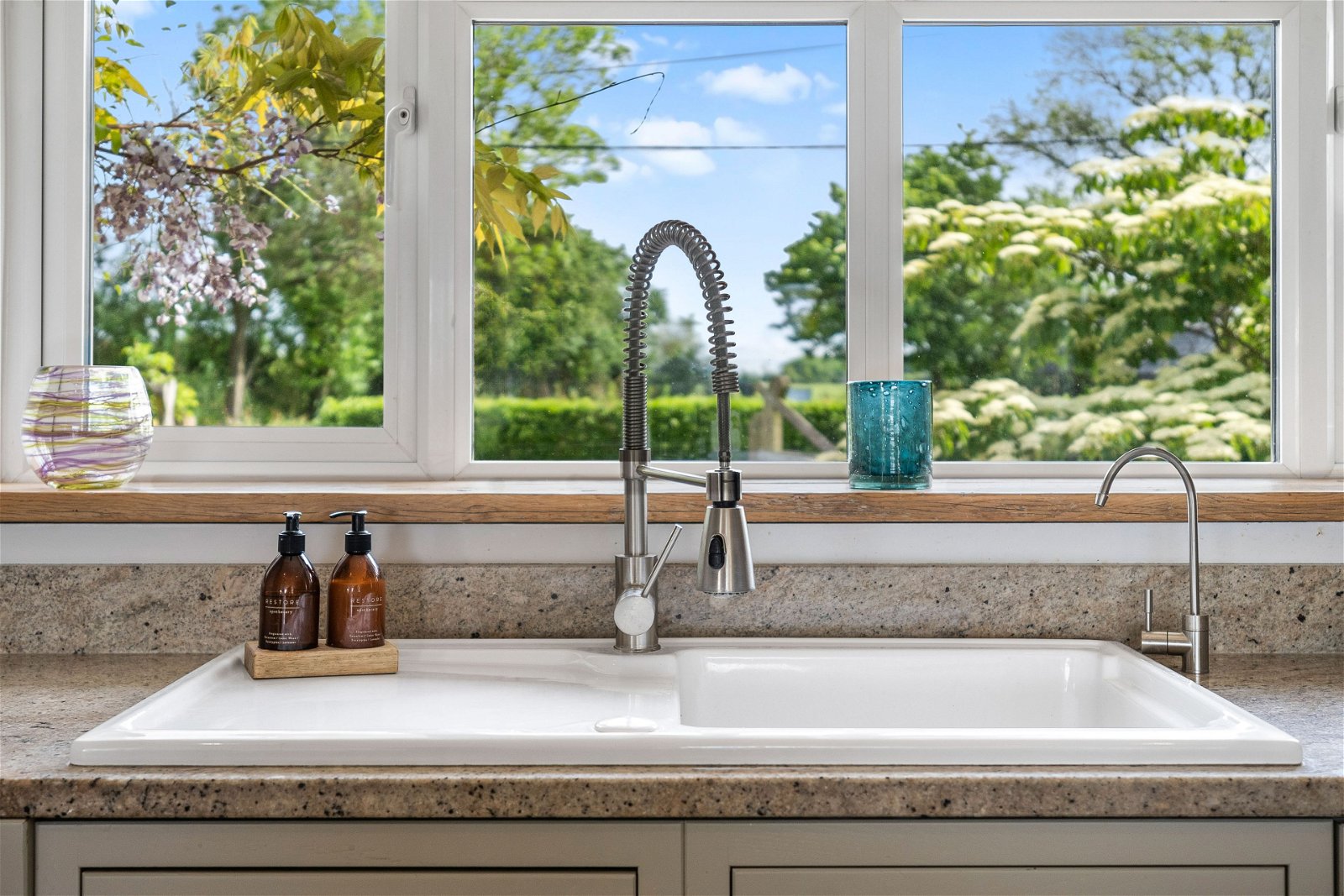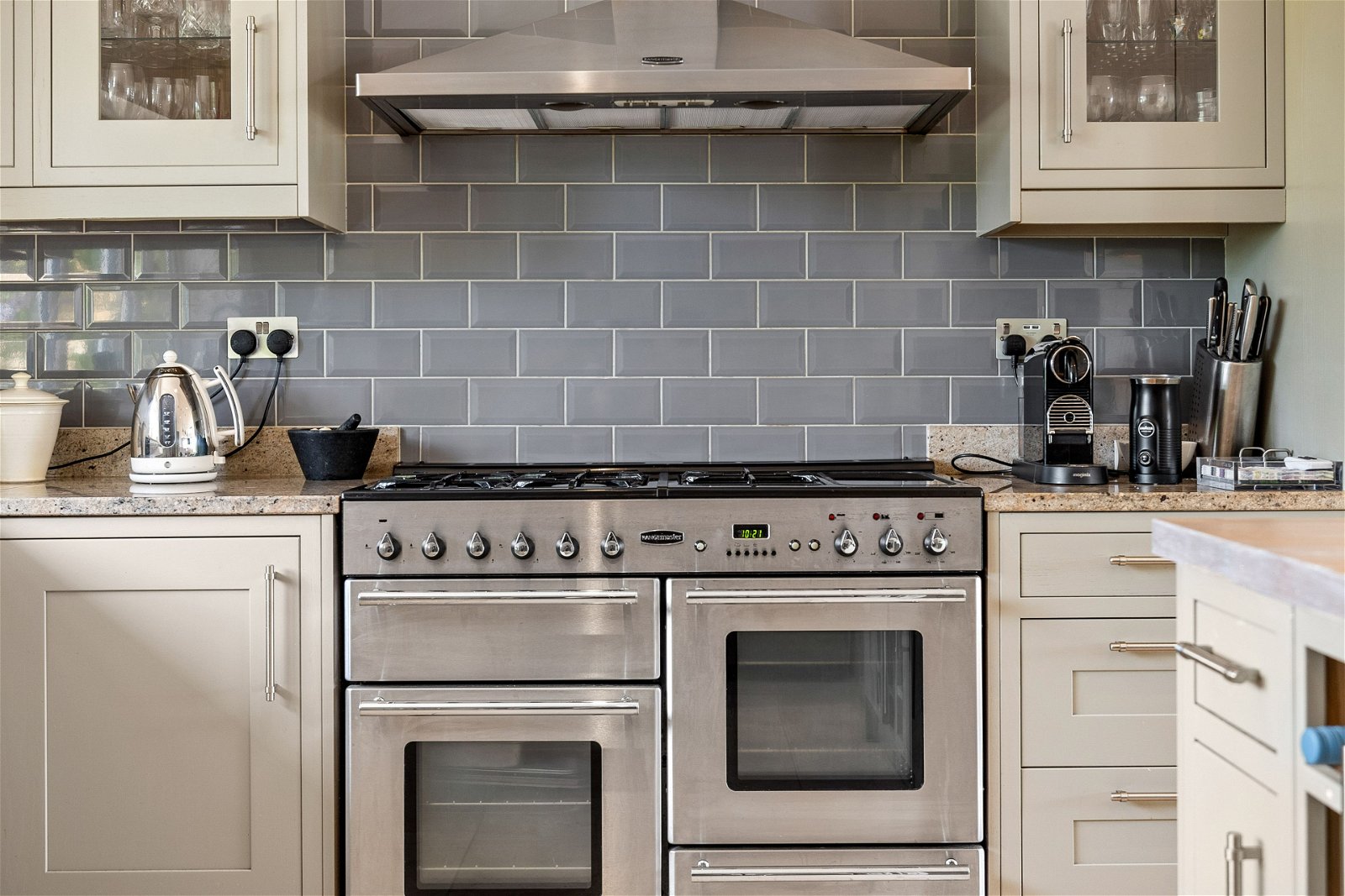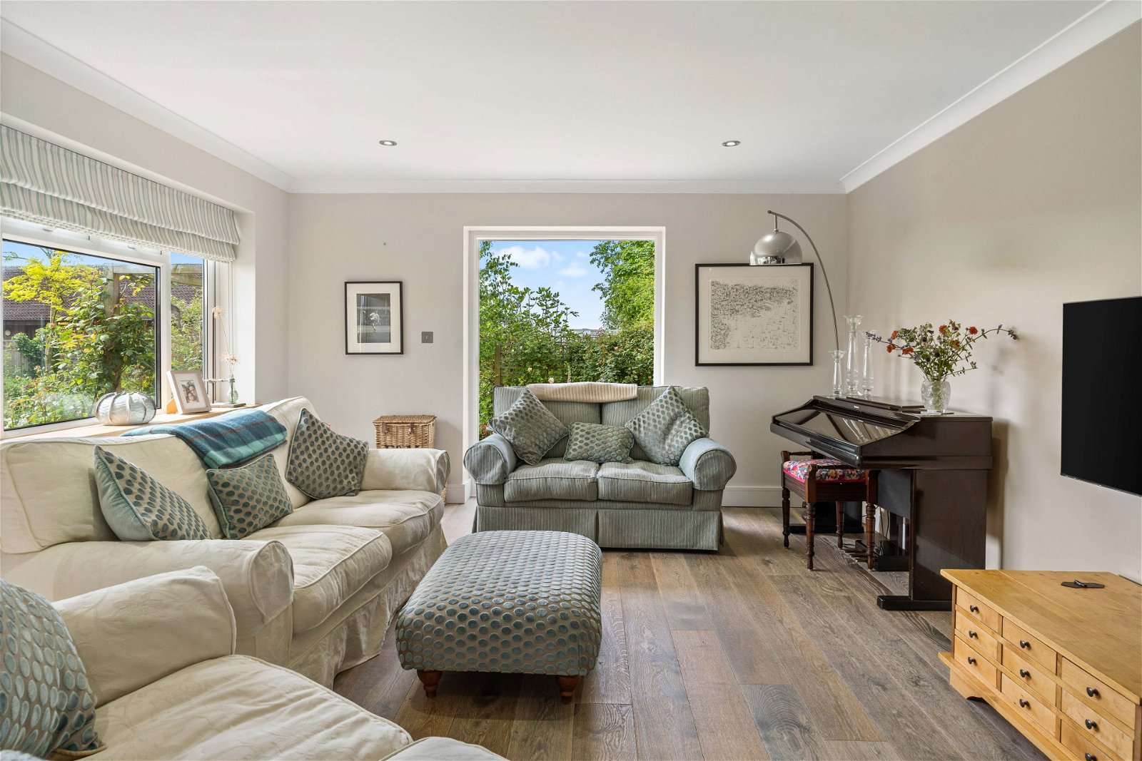 heart of the home. The bespoke kitchen is beautifully fitted with range master and Aga, and various built-in appliances. Under floor heating beneath the Limestone tiled floor, various modern radiators and surround sound fitted within the kitchen and living area. There are bi folding doors separating the kitchen diner to the living room a French door into the sitting area. The sitting room is a relaxing place to take in the wonderful garden or read a book with French doors straight out to the garden. This home accommodates for multi-generational living and offers a bedroom with ensuite on the ground floor, separate utility room and cloakroom.