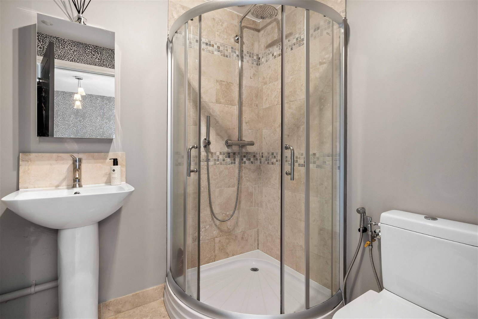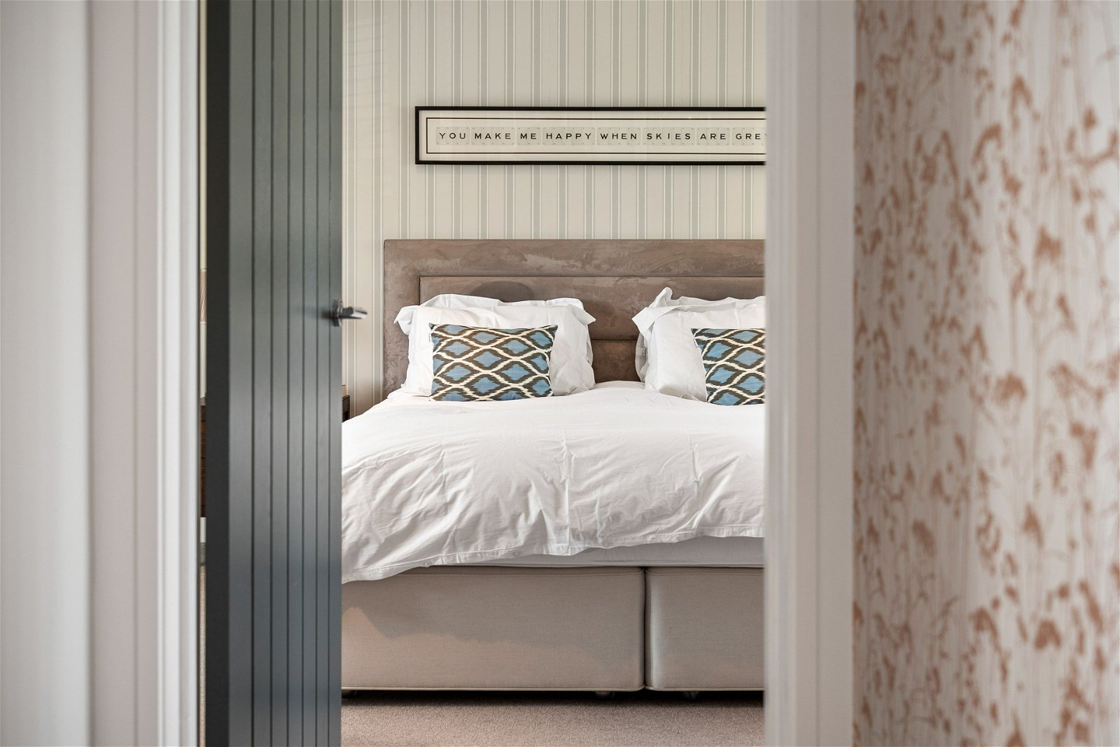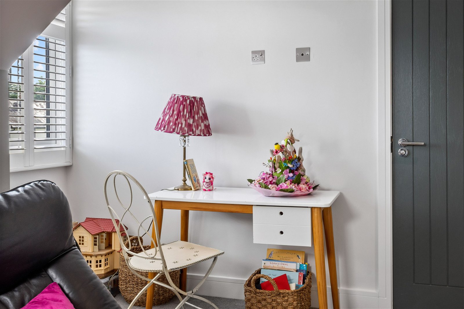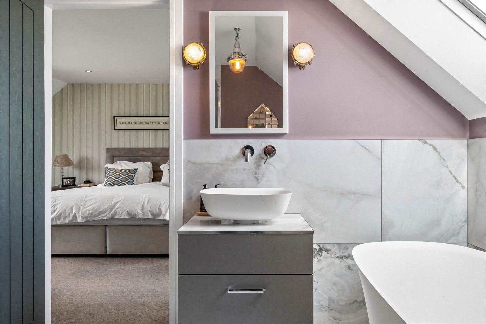 On the first floor a stunning master bedroom with dual aspect windows and shutters, walk in wardrobe and ensuite bathroom. Two further bedrooms with shutters and ensuite shower rooms. The property is in fantastic condition and finished to a high standard throughout.
