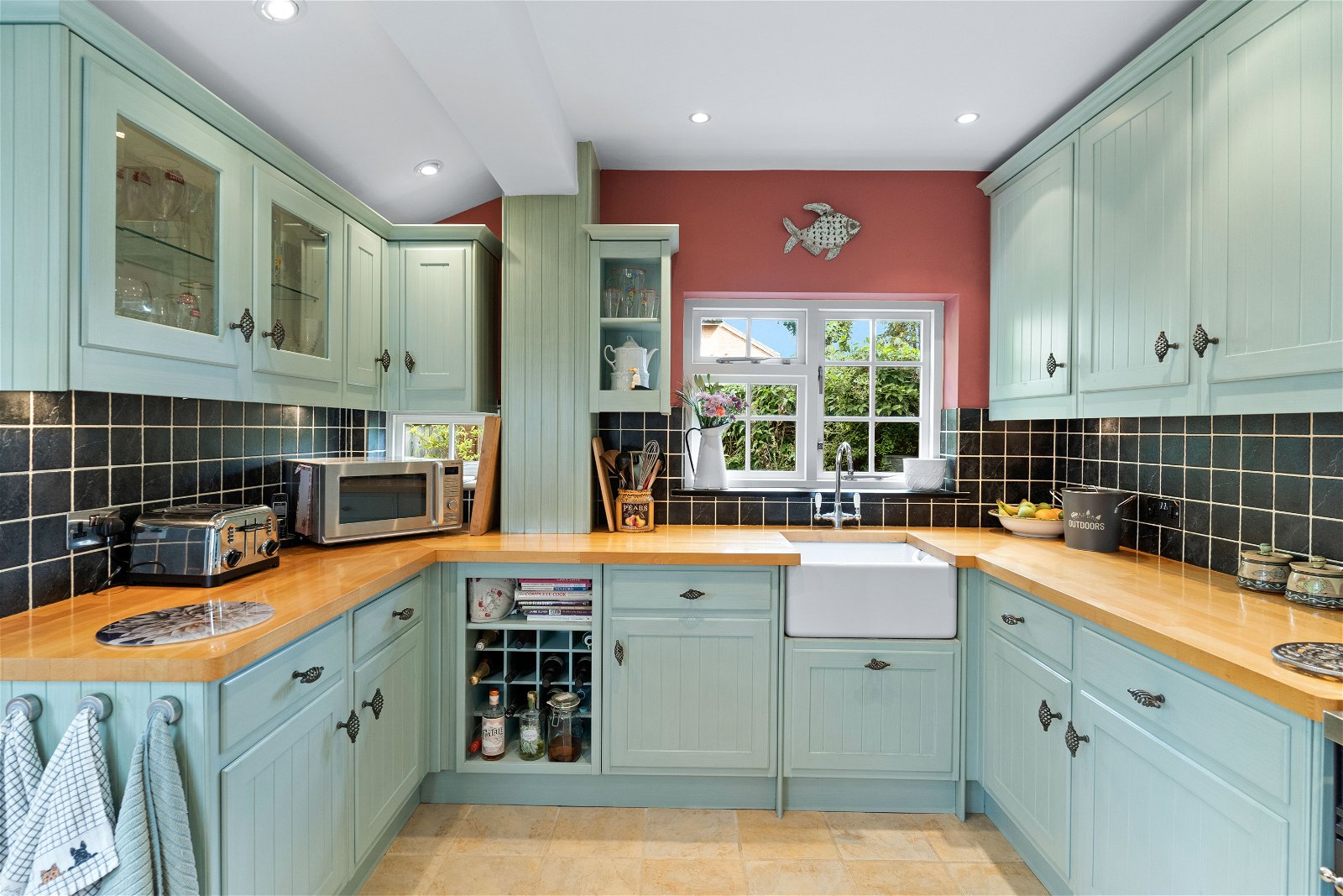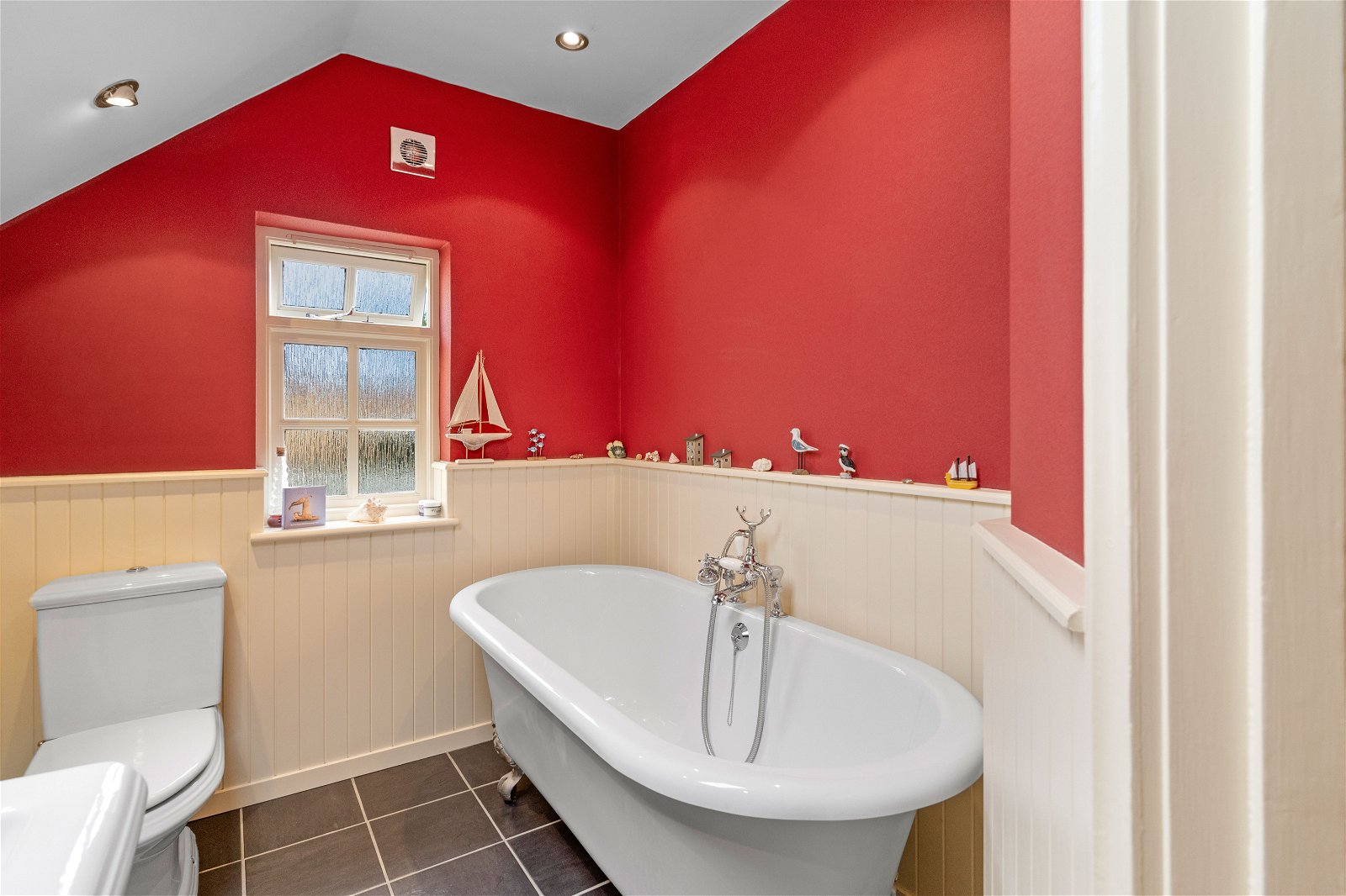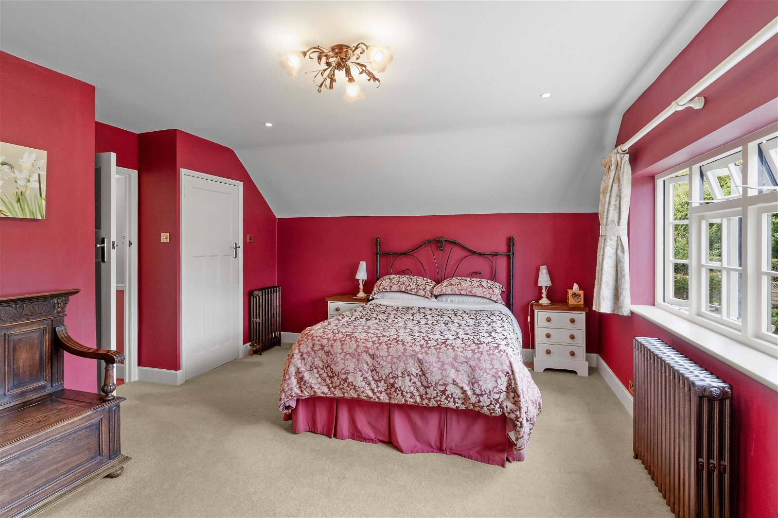 Moving upstairs there are four generous bedrooms and the main family bathroom. The master bedroom faces the rear of the property with fantastic views of the main orchard of St Mary's Church. A really good size room with plenty of room for wardrobes and off which is the en suite shower room. The en-suite is spacious and faces the side of the property, its fully tiled with a walk in screened shower cubicle with wall mounted shower attachment and deluge shower fitting, wall mounted heated towel rail, low flush wc and pedestal hand wash basin. Bedrooms two, three and four all face the front of the house and the landing gives plenty of storage with useful built in cupboards. The family bathroom faces the rear of the property, it has a frosted window to the side, part tongue and grooved panelled walls, freestanding roll top bath, low flush wc, pedestal hand wash basin and tiled floor.
