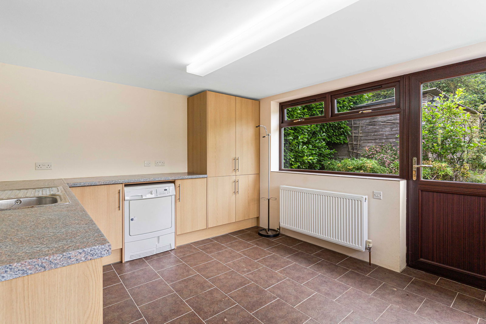 The kitchen has been beautifully decorated in duck egg colours and boasts an abundance of wall and base storage units, space and plumbing for a dishwasher, and integrated kitchen appliances, including an oven, hob, extractor fan and fridge/freezer. This is a very attractive room with a large window to a side aspect, pretty green floor tiles, strategically placed spotlights and another window looking out into the utility area. The utility room is particularly large and benefits from extensive storage units, cupboards and work surfaces, a separate sink and space for two washing machines and a tumble dryer. This is a bright useful room and opens onto the garden.