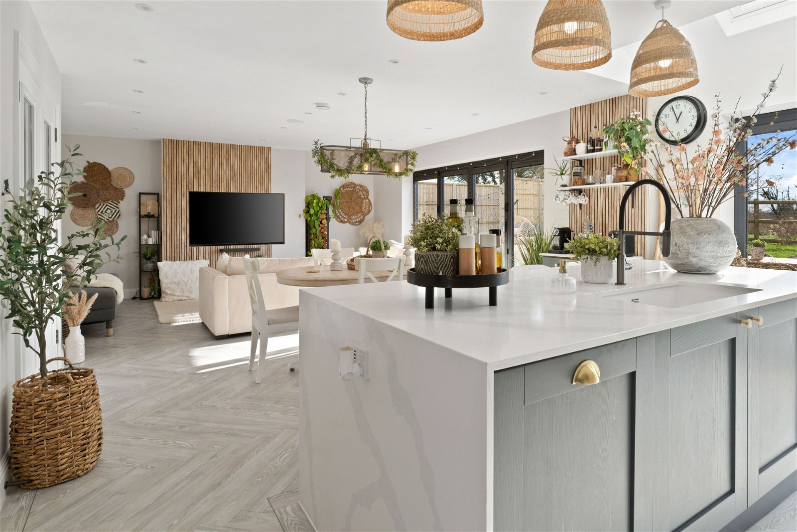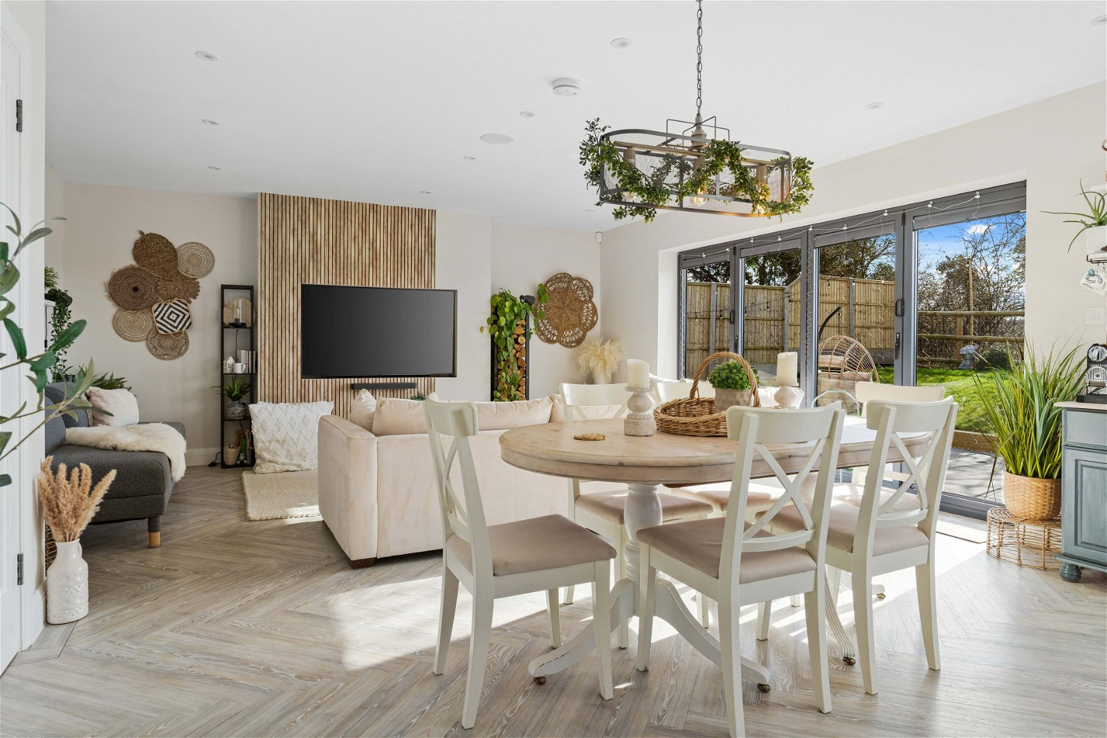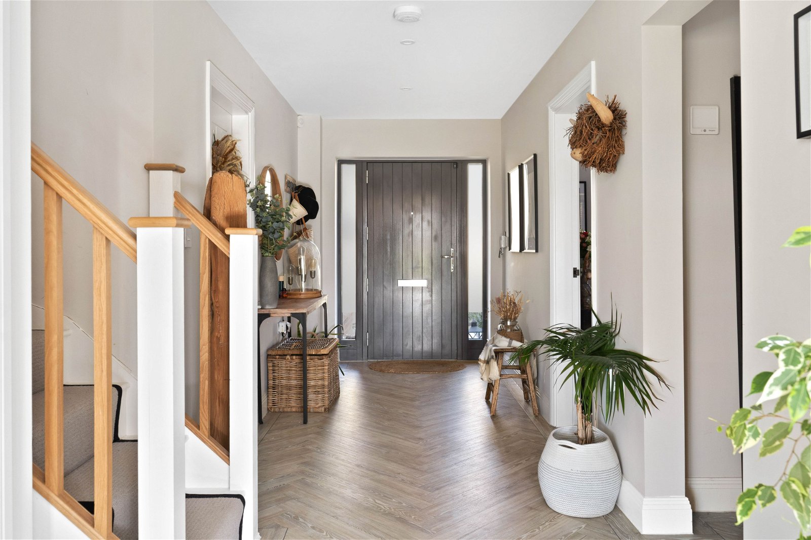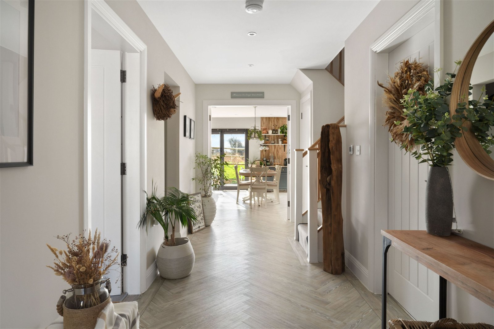 As you enter this modern, family home you instantly feel at home. There is a spacious hallway with Amtico herringbone style flooring flowing through to the kitchen and under floor heating throughout. A spacious living room, family room, cloakroom just off the hallway and a stunning kitchen with built in appliances and dining area with bi folding doors to the rear overlooking the garden and countryside. A handy utility room just off the kitchen with door taking you into the garage. The first floor offers a well-designed master bedroom with views over the countryside and a private dressing room and ensuite shower room. There are two further bedrooms, one with ensuite, fourth bedroom and a modern family bathroom.