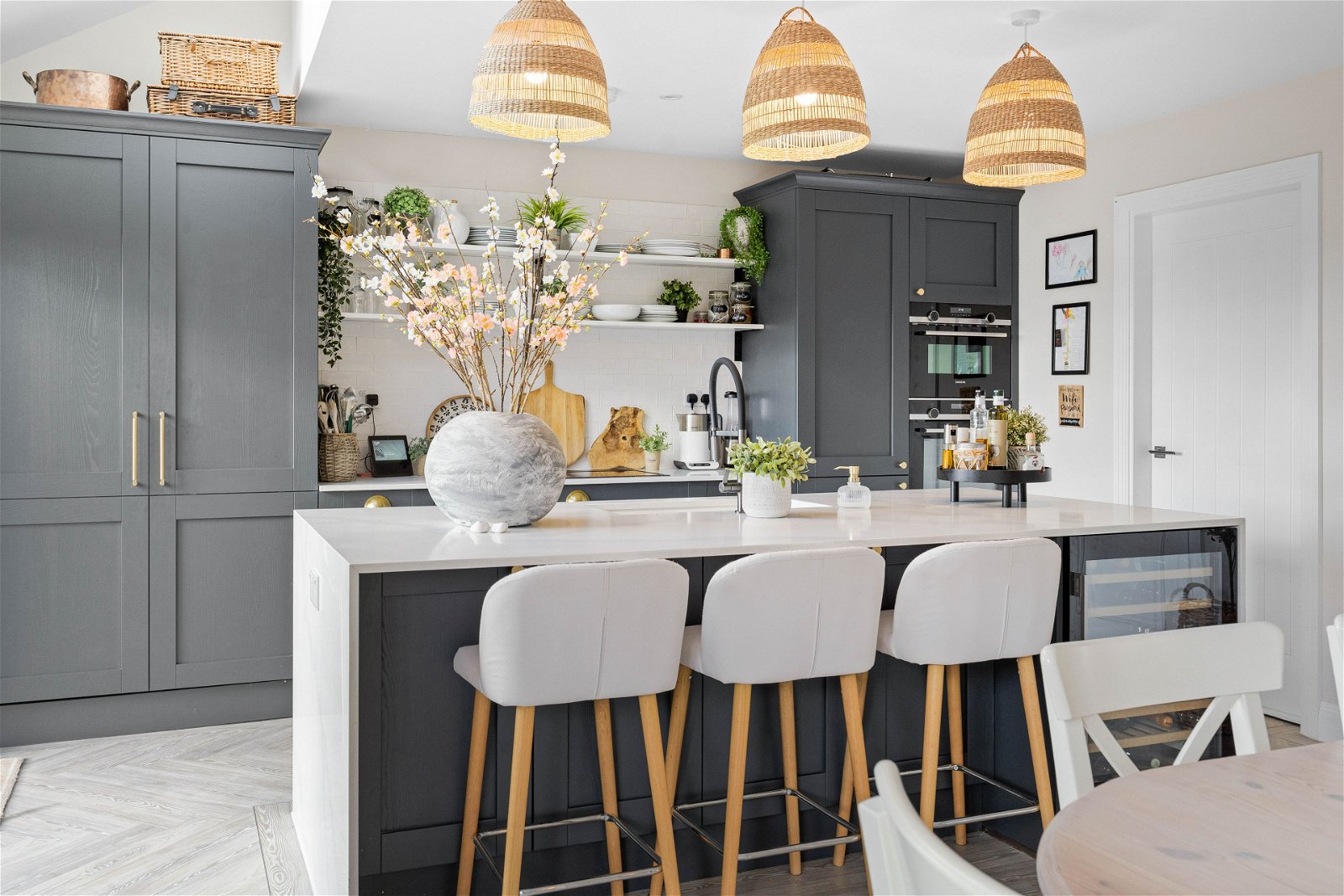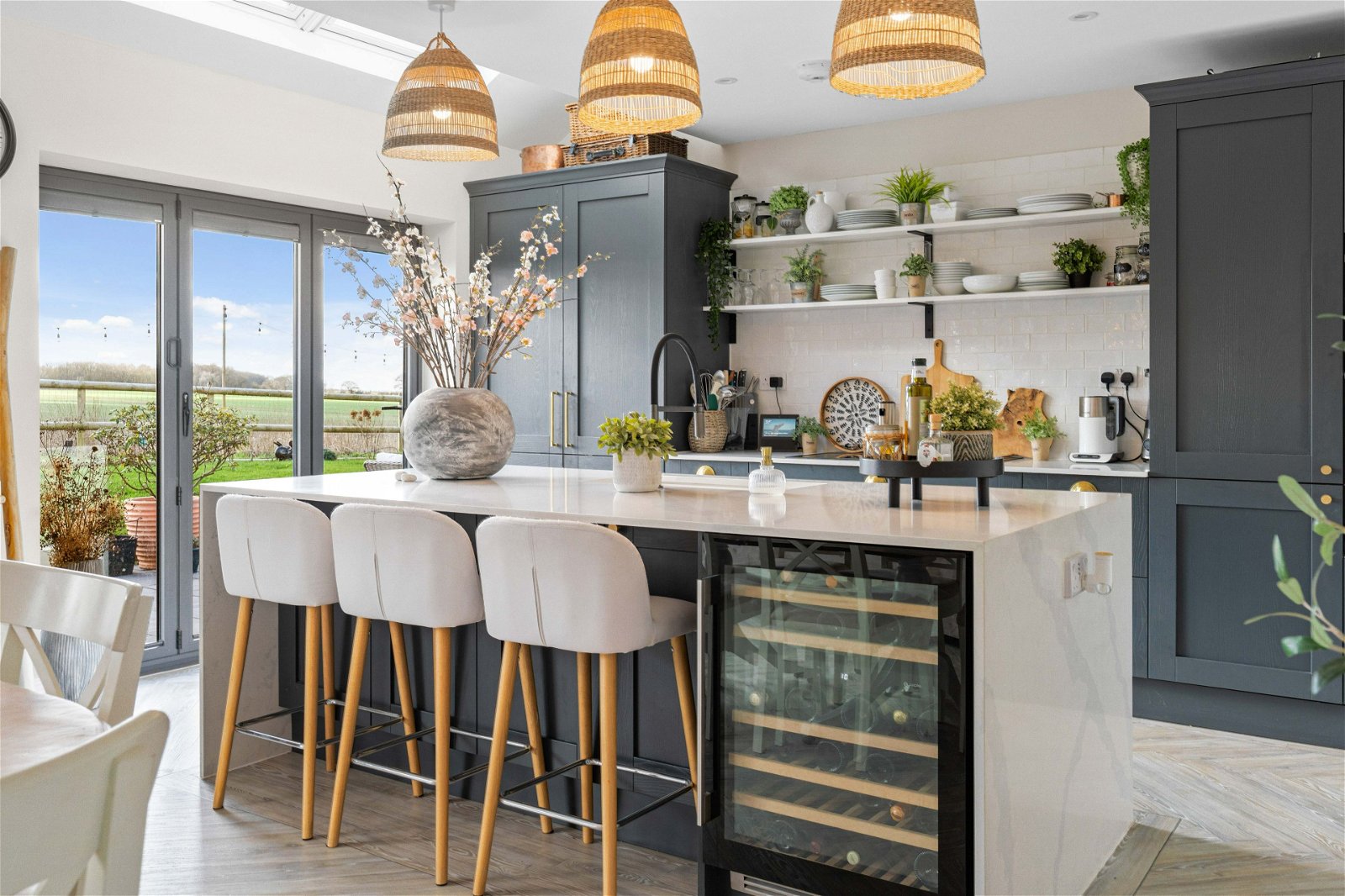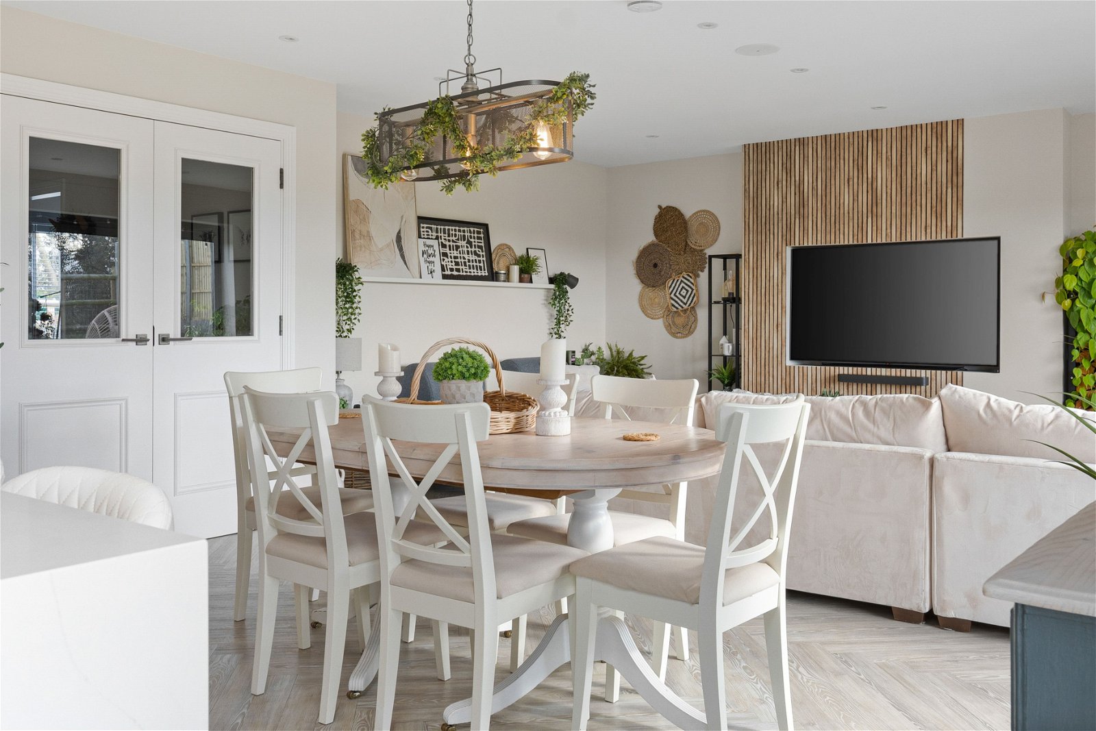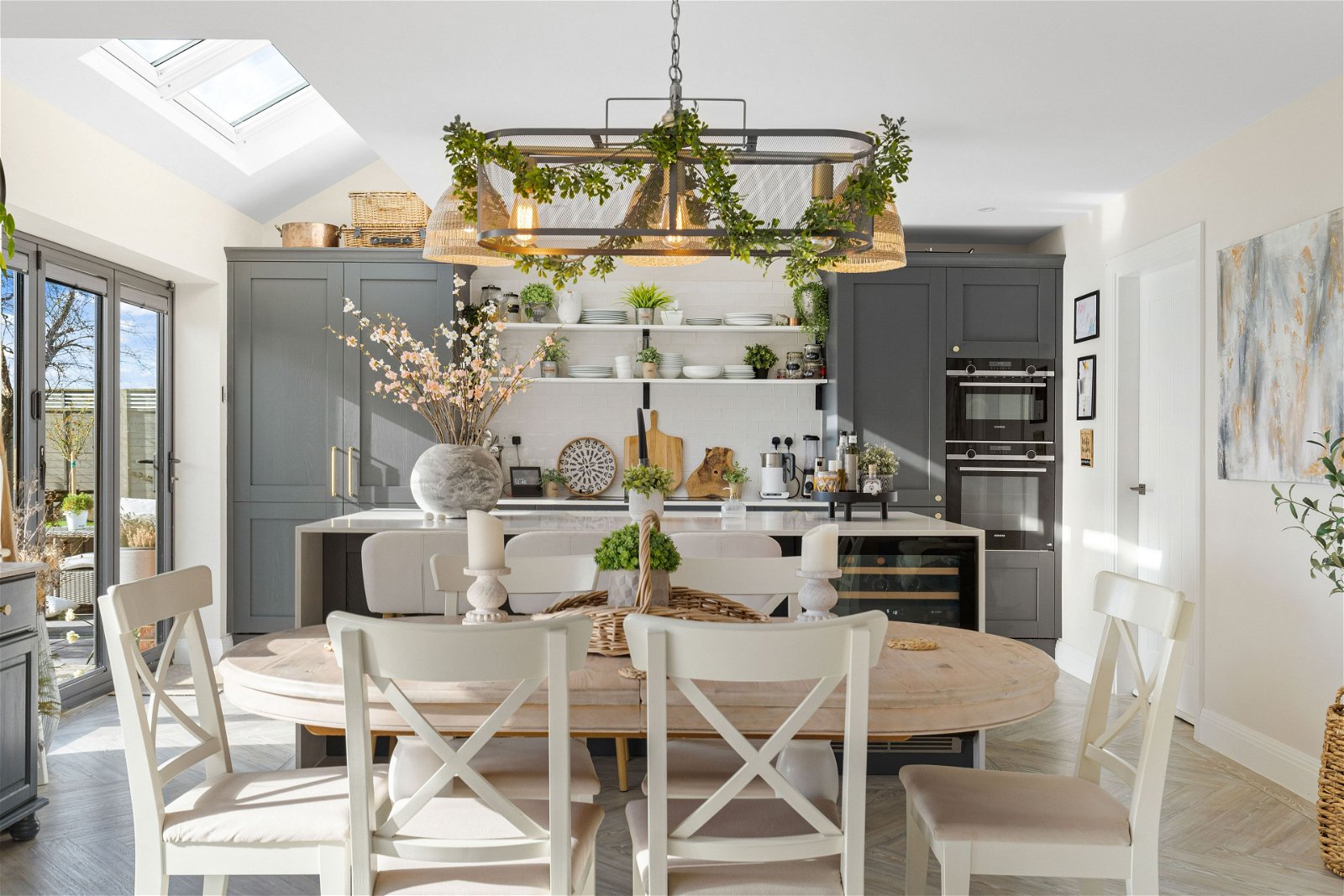 As you enter this modern, family home you instantly feel at home. There is a spacious hallway with Amtico herringbone style flooring flowing through to the kitchen and under floor heating throughout. A spacious living room, family room, cloakroom just off the hallway and a stunning kitchen with built in appliances and dining area with bi folding doors to the rear overlooking the garden and countryside. A handy utility room just off the kitchen with door taking you into the garage. The first floor offers a well-designed master bedroom with views over the countryside and a private dressing room and ensuite shower room. There are two further bedrooms, one with ensuite, fourth bedroom and a modern family bathroom.