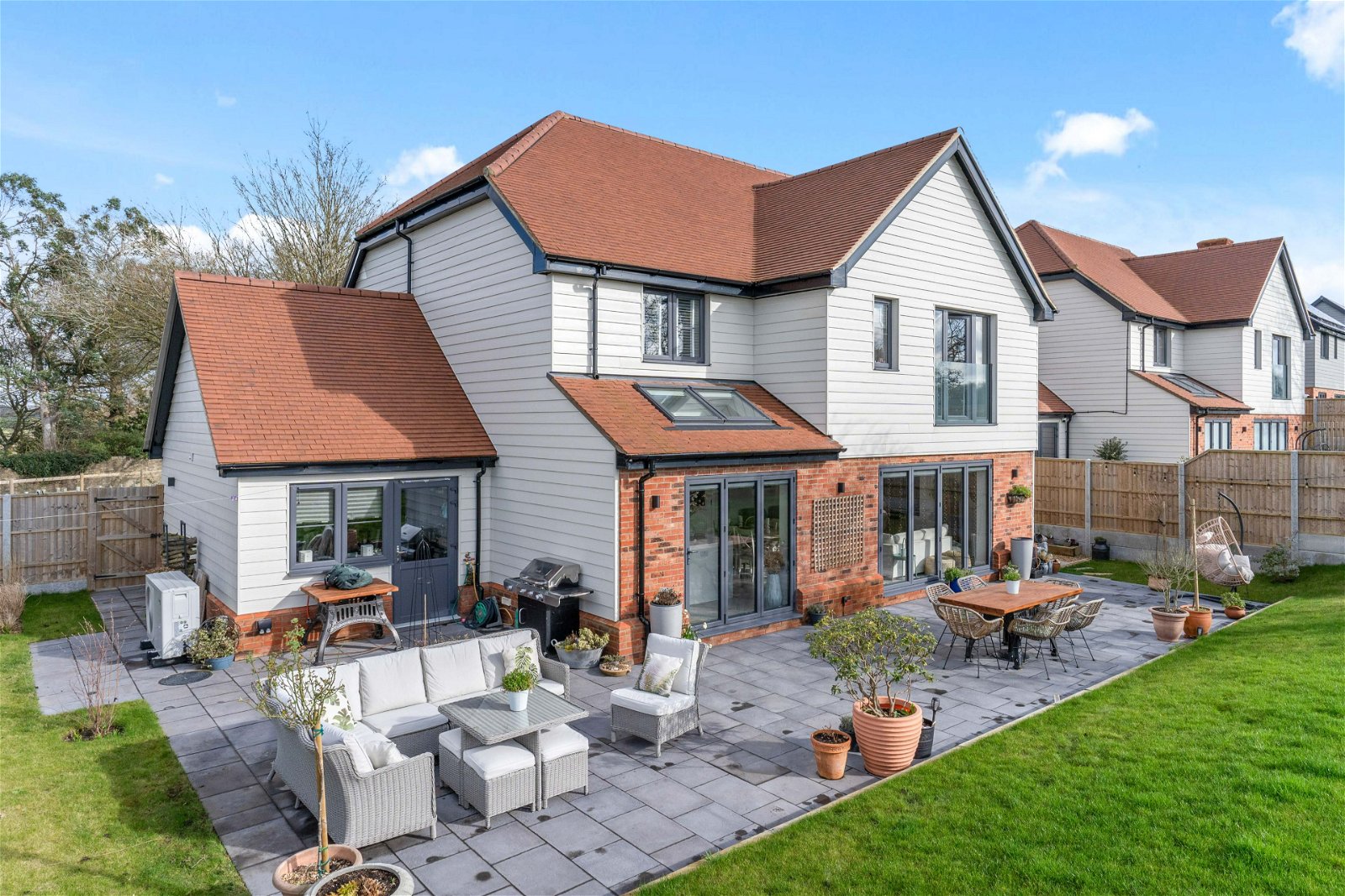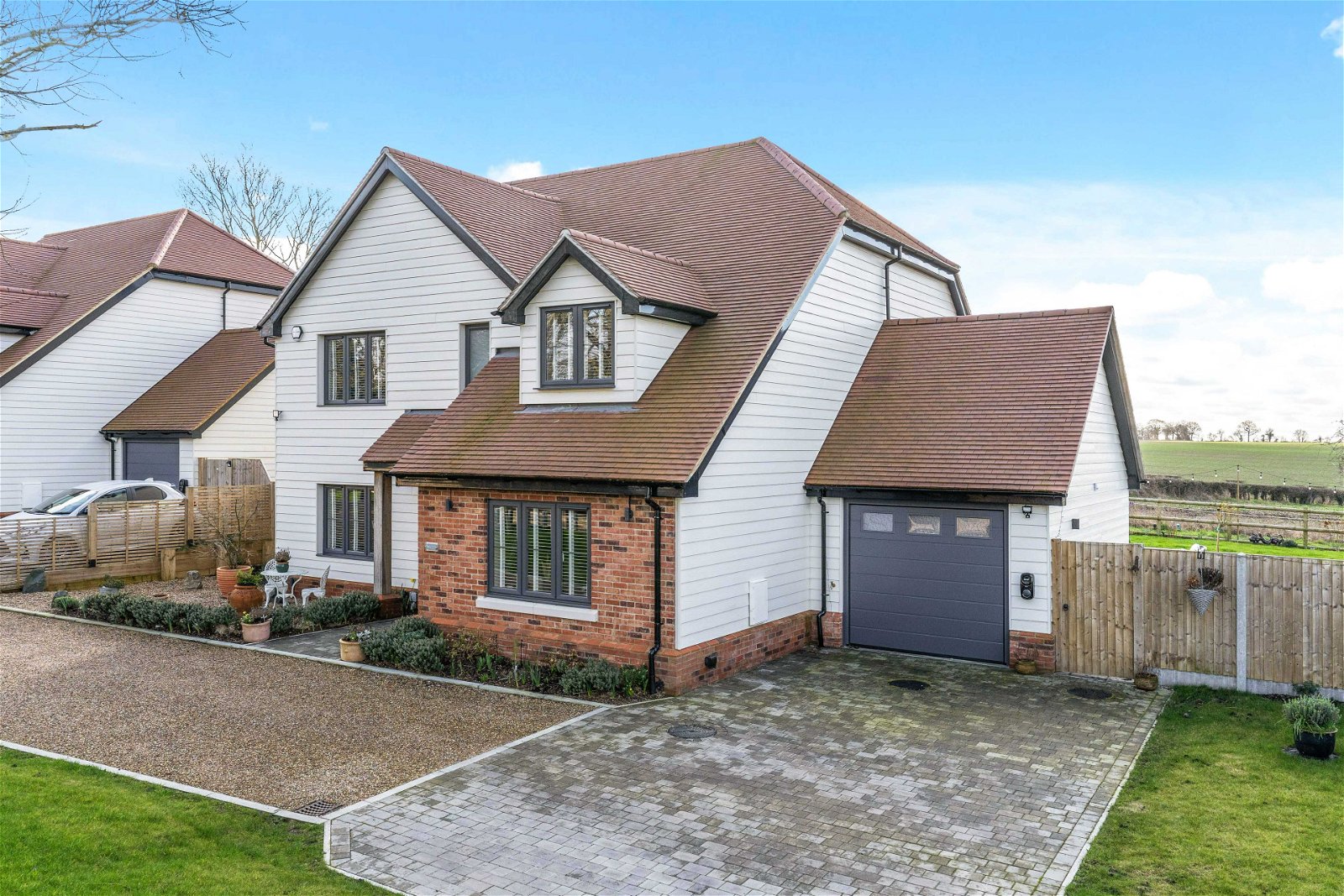 A Four bedroom detached family home built in 2022 and finished to a superb standard. The property is situated within a private secluded development with gravel driveway and well-maintained grounds and electric gate. There is a garage to the side if the house and off-street parking for four cars, the property offers 2317 sq. ft. of accommodation with a south facing rear garden. This is a fabulous family home backs on beautiful Countryside and just 4.2 miles to Ware Station. The heart of the home is the wonderful kitchen, living and dining room with stunning views. This home has been carefully designed and flows beautifully, a show home that is ready to move into. The property has underfloor heating and air source heat pump, built of standard construction, and has mains sewerage. EPC and B and council tax band G.
