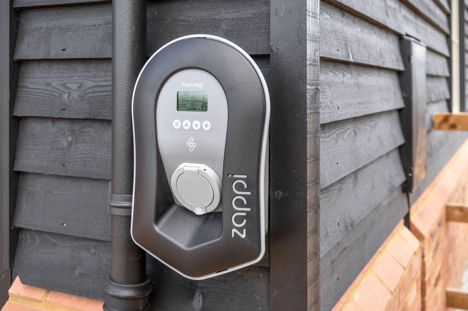 The main living spaces are all accessed from the hallway and you’ll find doors leading to a generous family room and dining room, while double doors open into a large, airy lounge. There’s a great sense of flow throughout — the lounge connects directly to the dining room via another set of double doors, and the dining area also links to the hallway and the open-plan kitchen beyond. Fuelled by an Air Source Heat Pump, there is underfloor heating throughout this home and the 150mm wall cavity insulation mean that all heat generated is retained for as long as possible in this energy saving space. Roof mounted solar panels with a 5.8kW hybrid inverter and battery provide the electricity required to run the house as well as the vital air source heat pump.