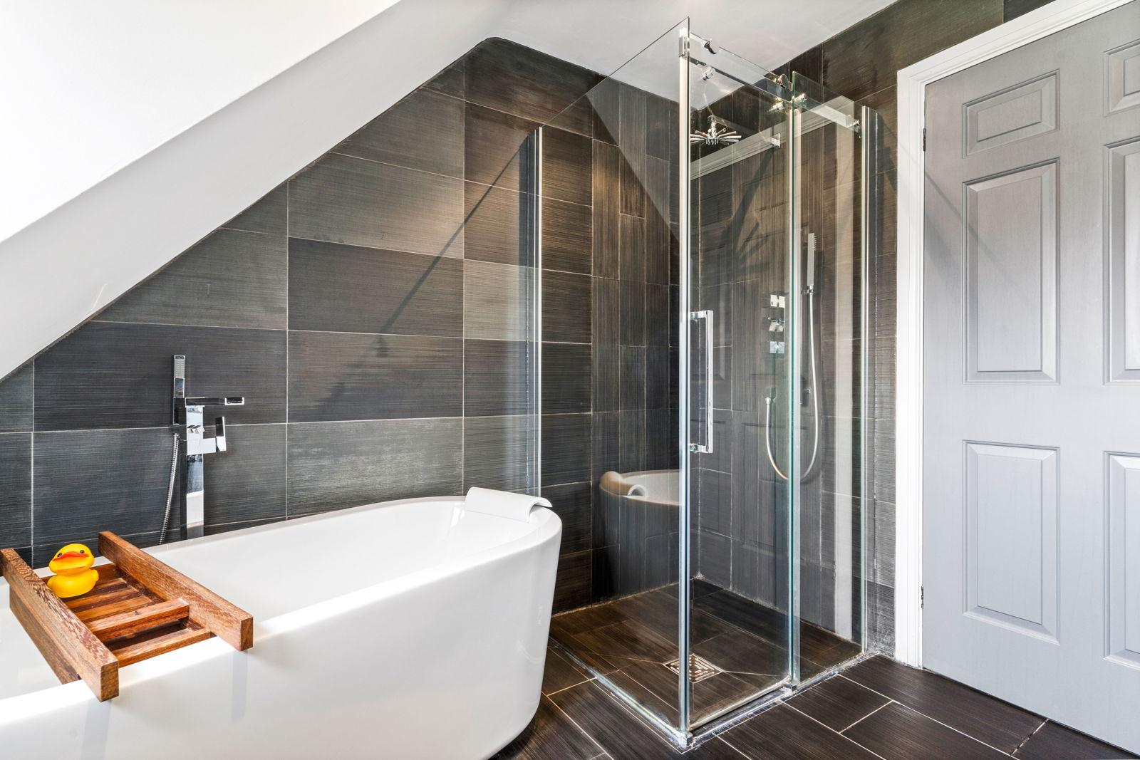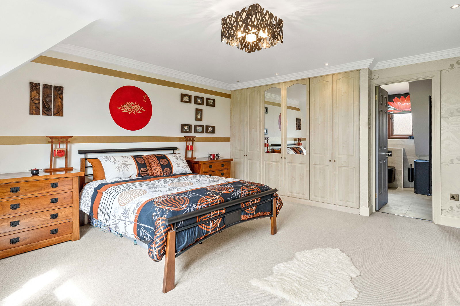 Upstairs is a large landing with window to the front, airing cupboard and access to the loft. The principal bedroom is a large double room that is fitted with a great range of his and hers wardrobes and enjoys fabulous views over fields to the rear. The luxurious en suite bathroom has been impressively refitted in a contemporary style with fully tiled walls and floor and a designer style suite. Each of the three further bedrooms are good size double bedrooms, two of which also benefit from fitted wardrobes and views to the rear over the surrounding countryside. The family bathroom has also recently been refitted in a contemporary style with freestanding bath and separate shower cubicle.