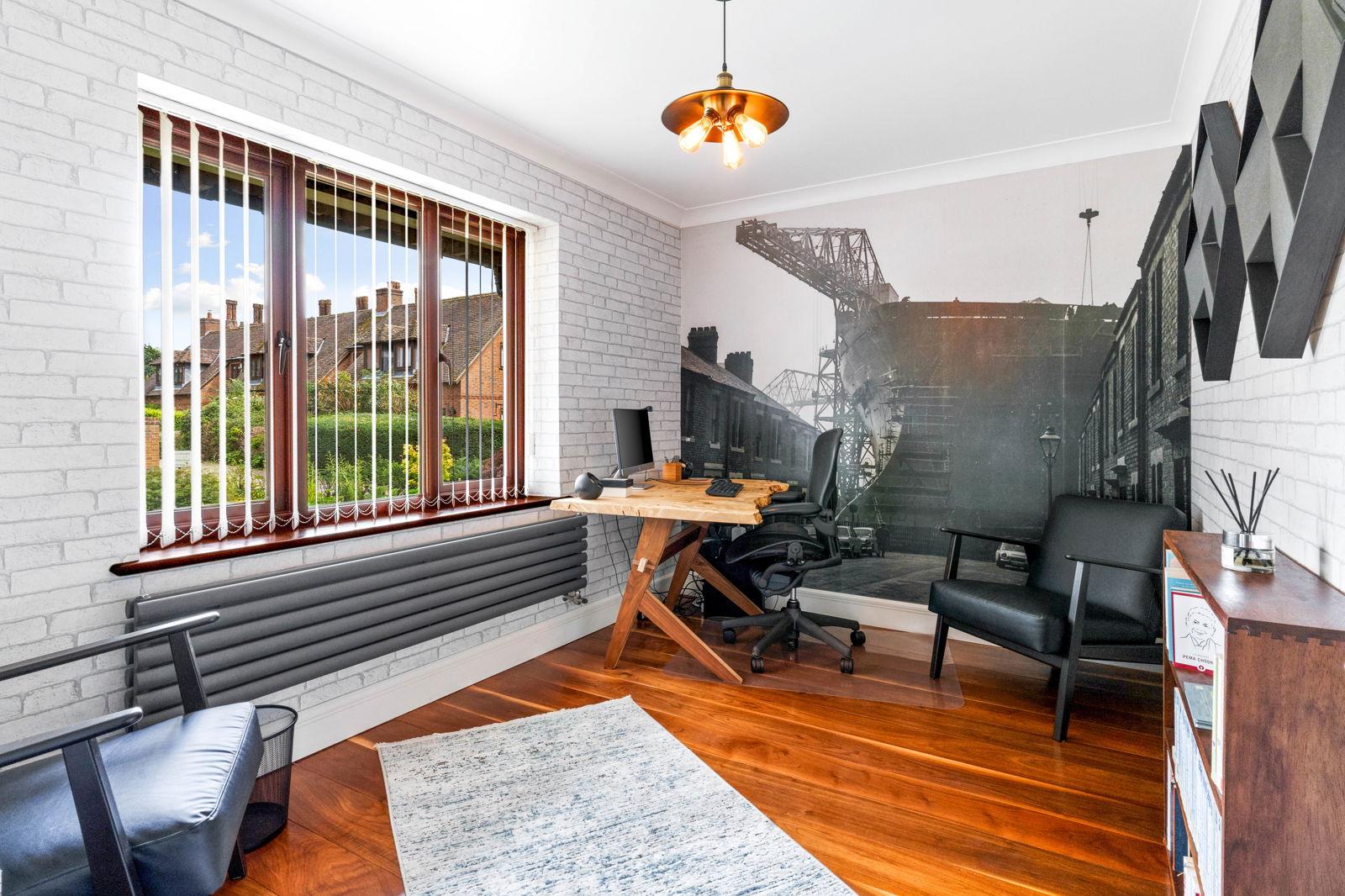 Approached at the front by its own driveway that provides parking for three or four vehicles and leads to the integral double garage.